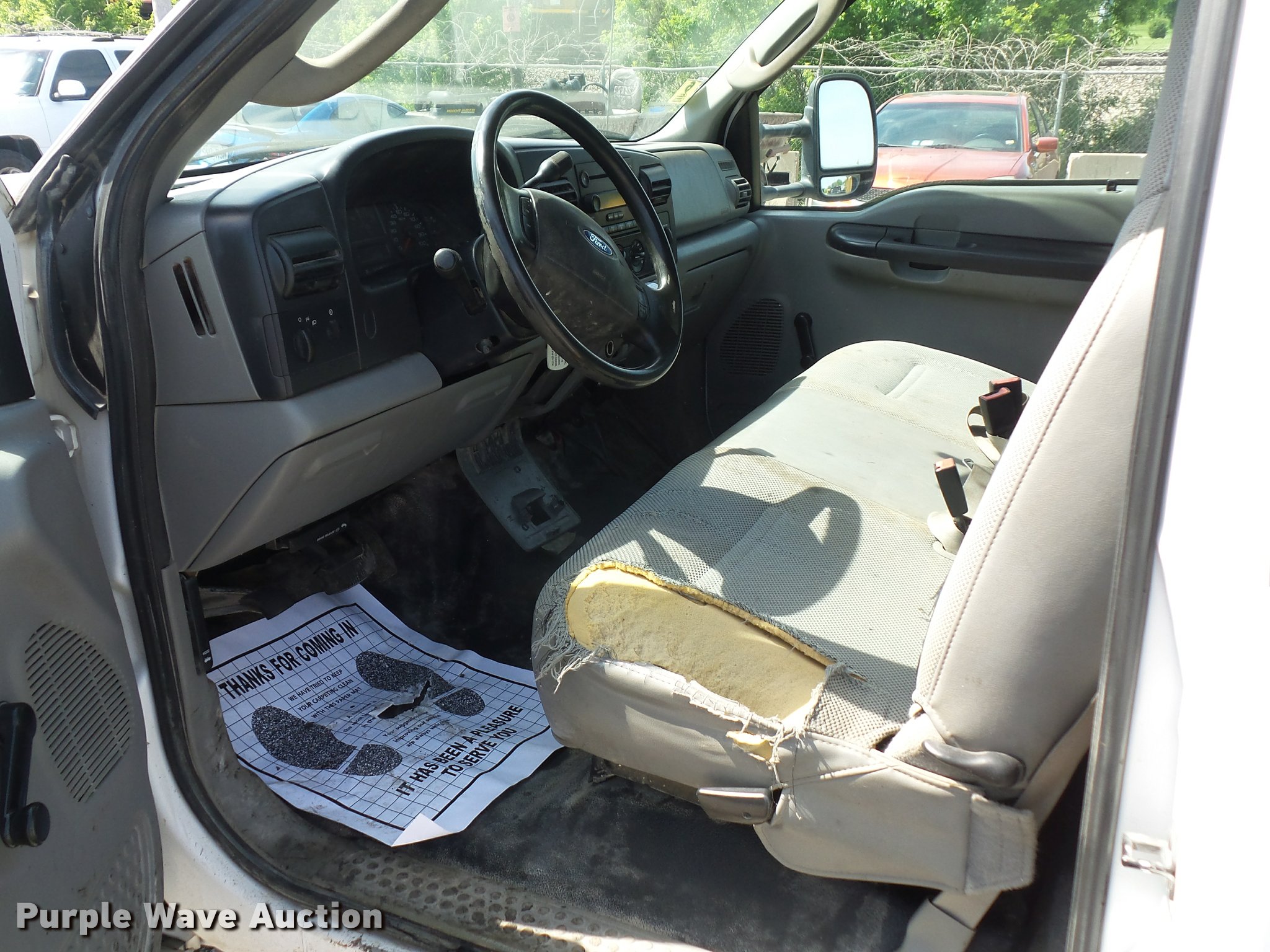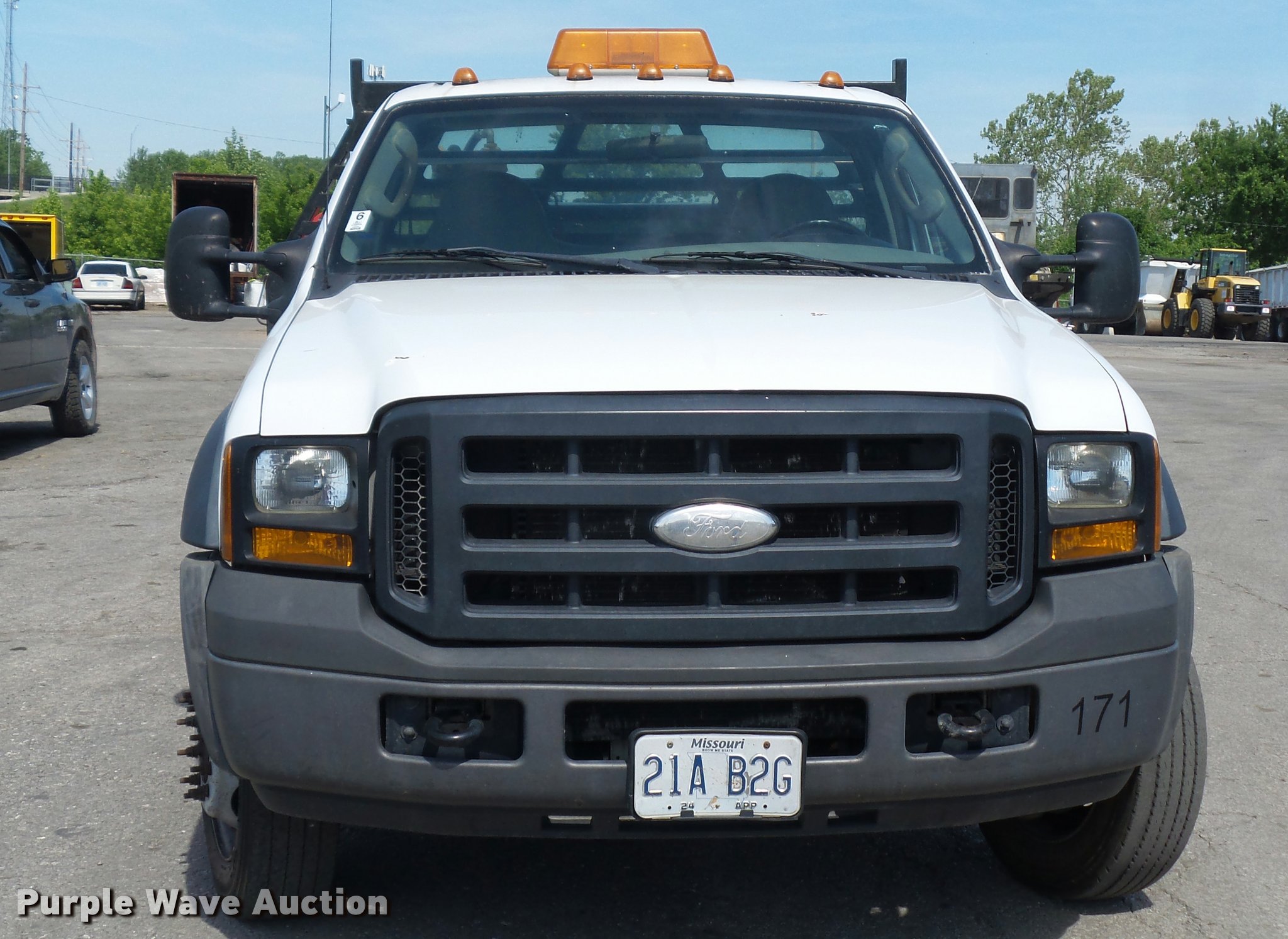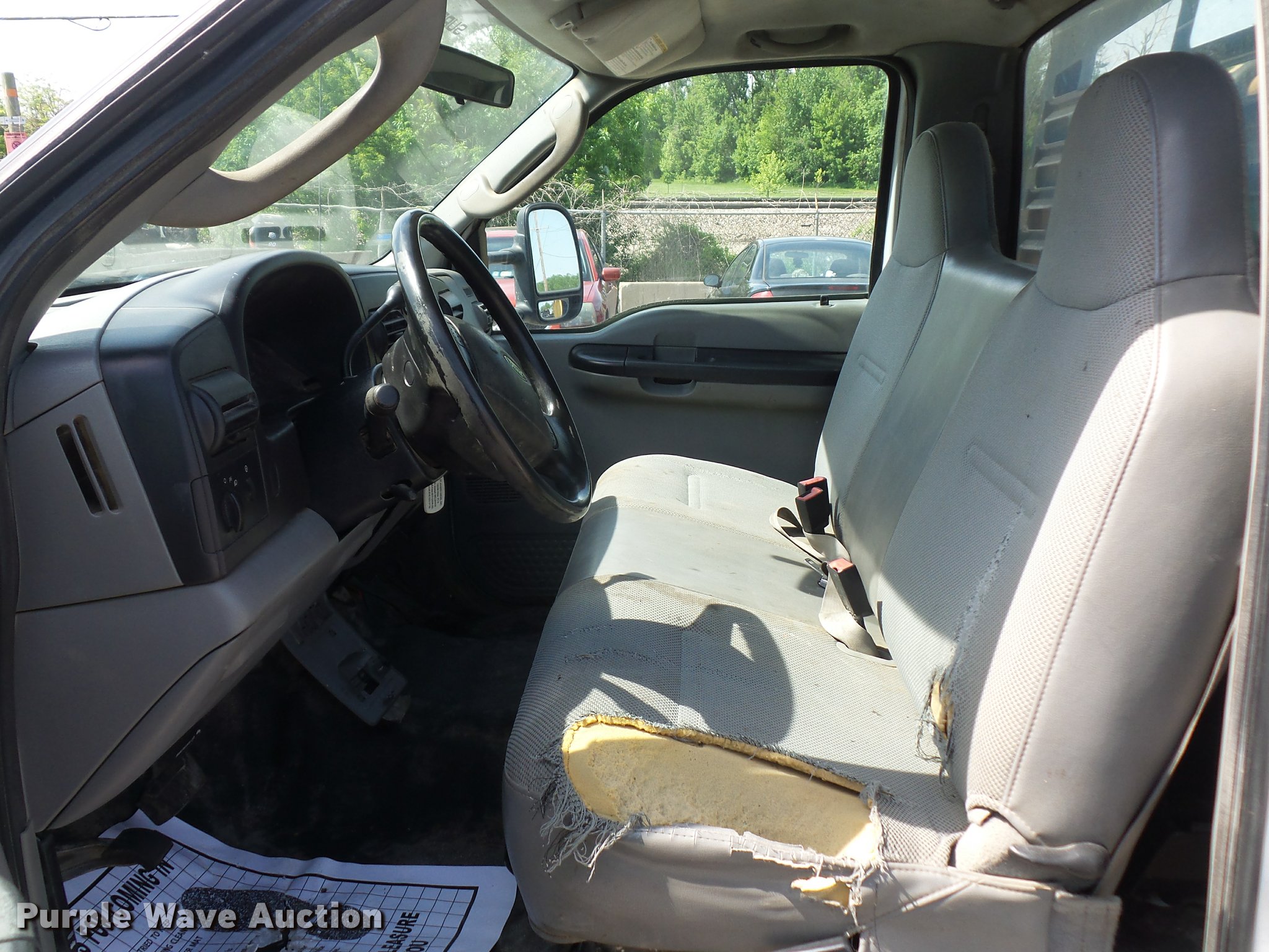 Purple Wave is selling a used Flat Bed Truck in Missouri. This item is a 2006 Ford F450 Super Duty flatbed truck with the following: 96,081 miles on odometer, 6.0L V8 OHV 32V turbo diesel engine, Automatic transmission, AC and heat, Tilt, Cruise, AM/FM/CD, Manual windows and locks, Cloth interior, 11'L x 92"W flatbed, Toolbox, Auxiliary fuel tank, 12V pump,, 225/75R19.5 tires