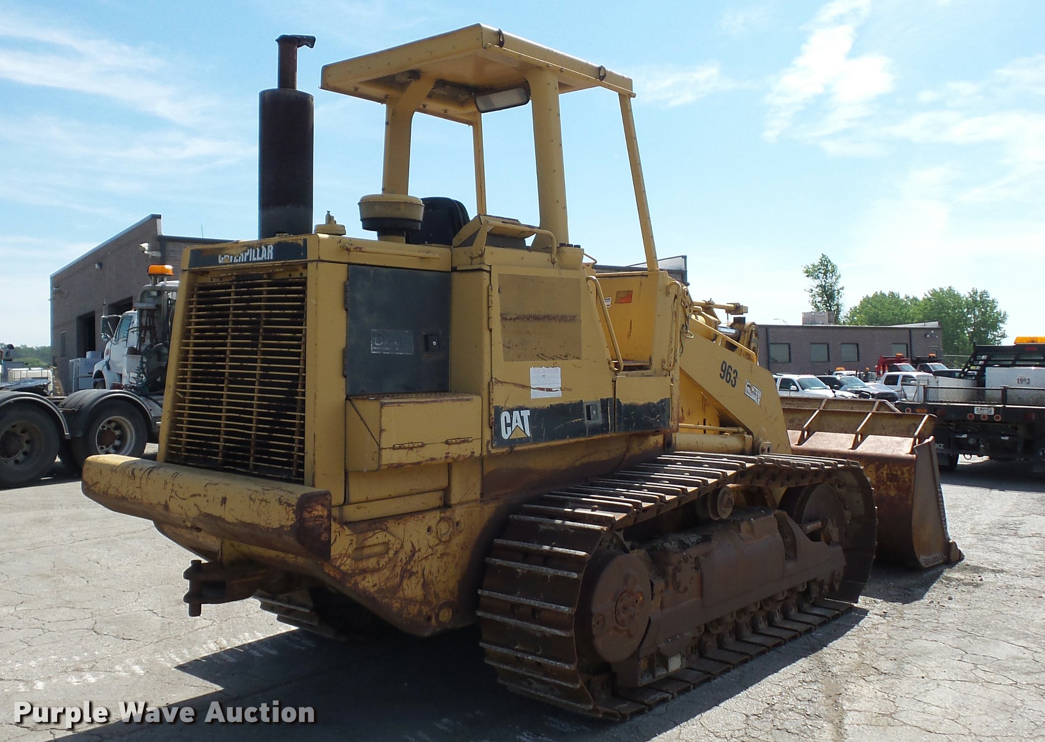 Purple Wave is selling a used Crawler Loader in Missouri. This item is a 1983 Caterpillar 963 track loader with the following: Caterpillar 3304 four cylinder turbo diesel engine, Hydrostatic transmission, 98"W general purpose bucket, (8) bolt-on teeth, Rear pin hitch, 21.5"W double grouser track pads, Serial 11Z00281