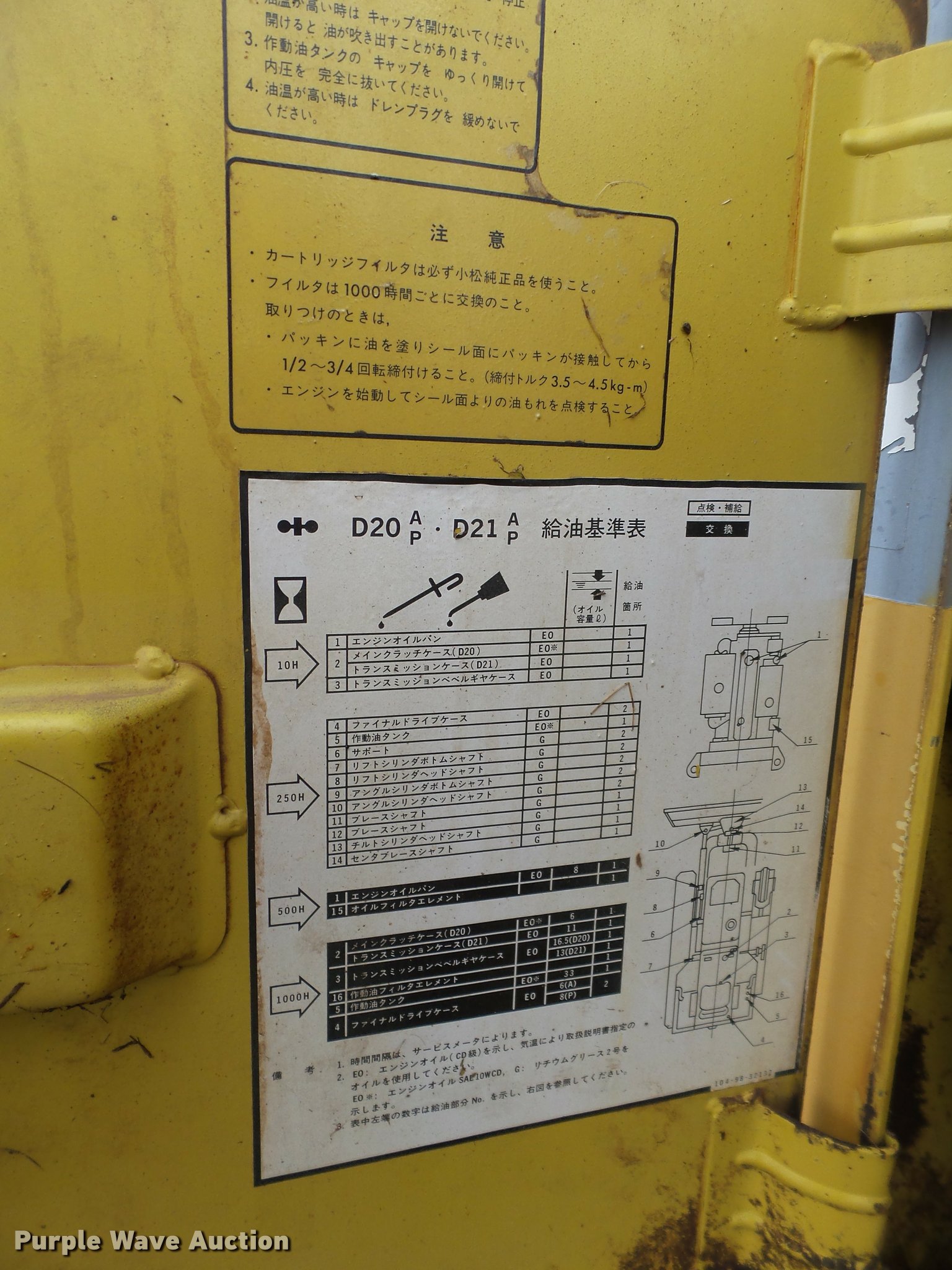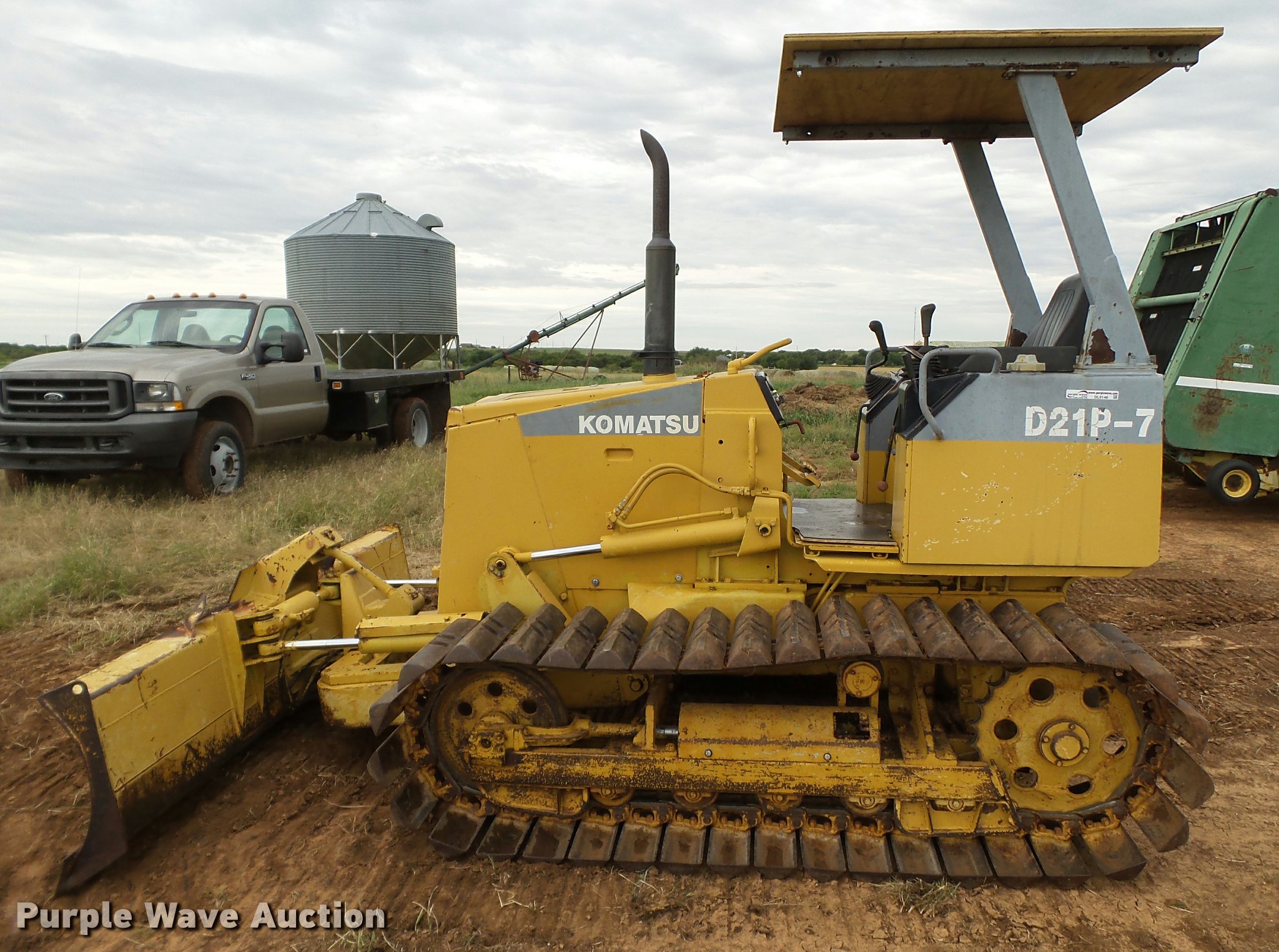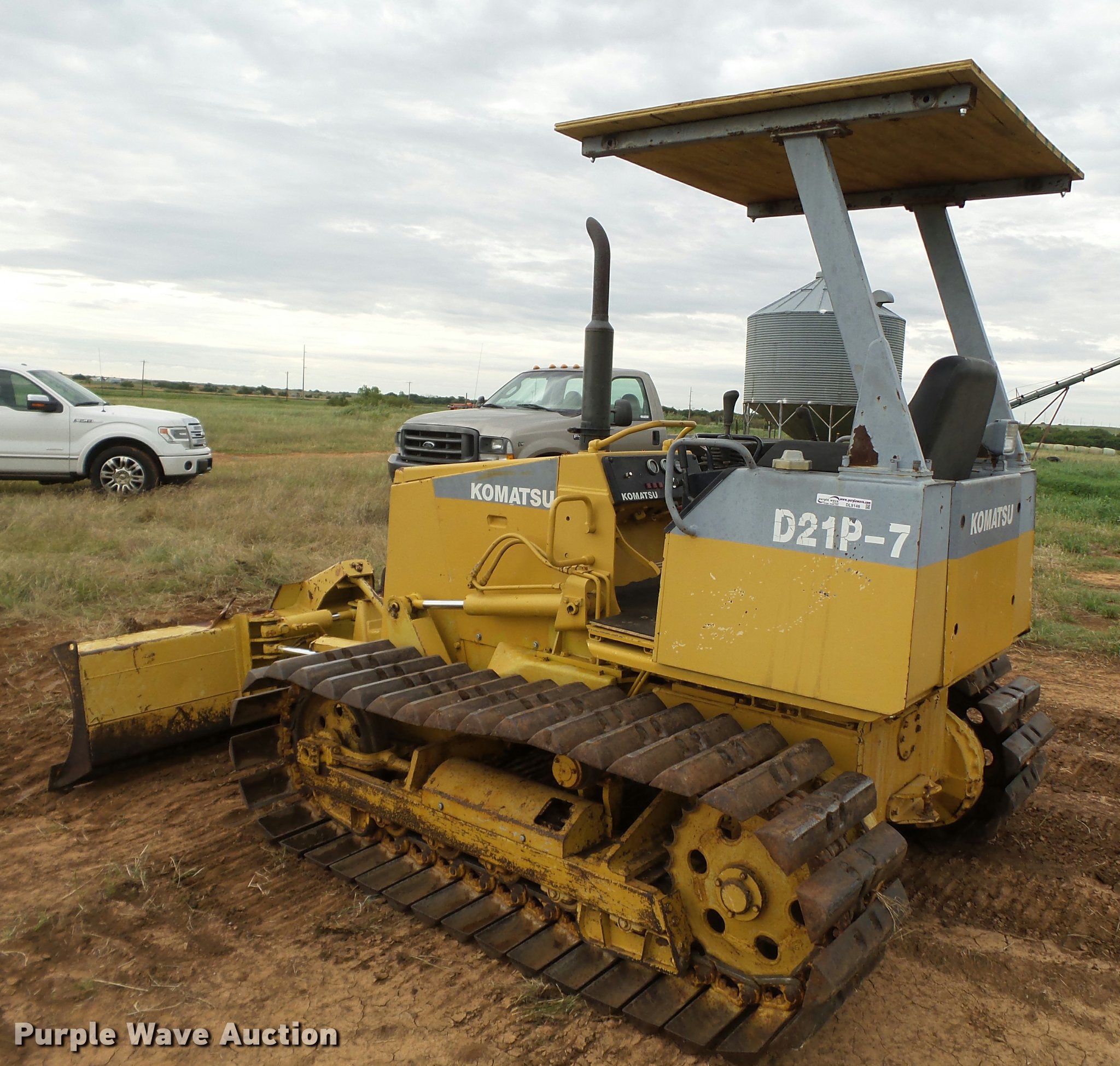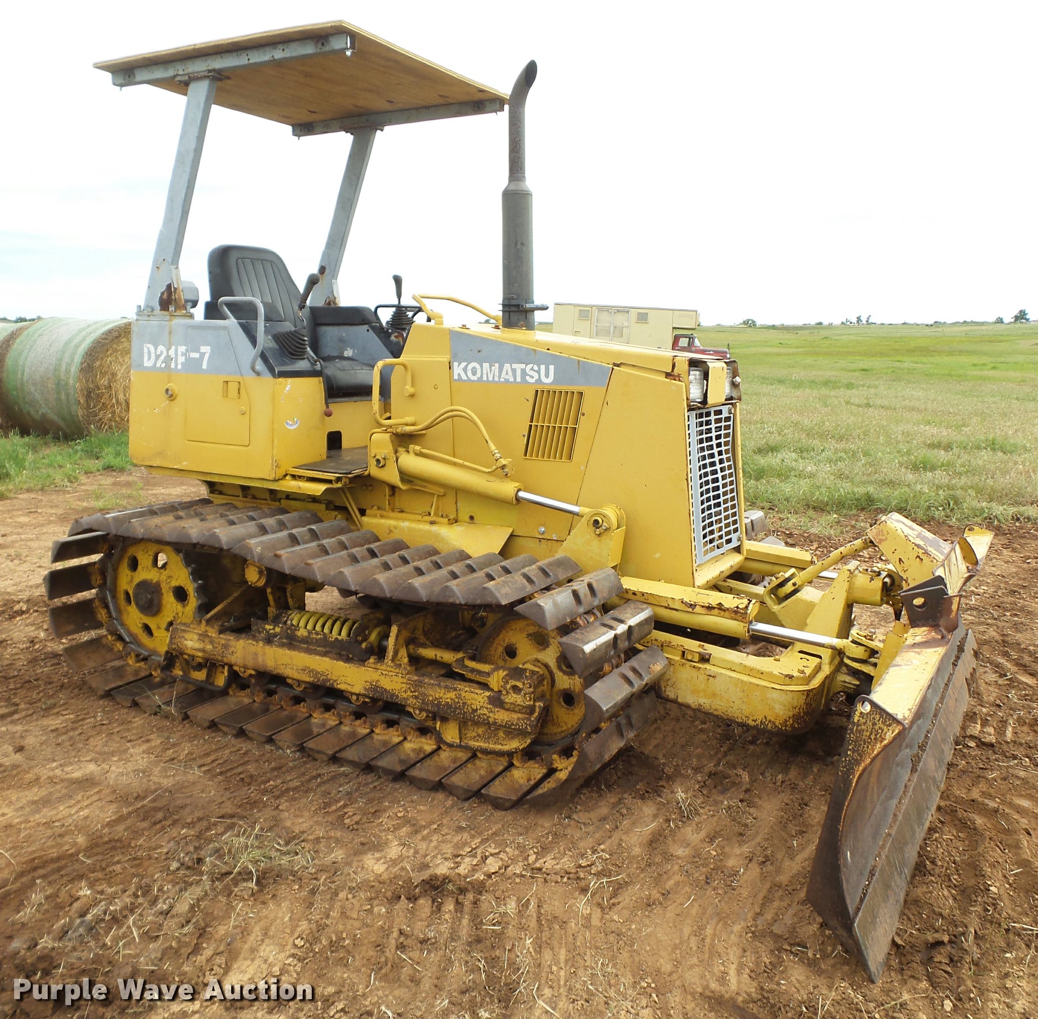 Purple Wave is selling a used Crawler Dozer in Oklahoma. This item is a Komatsu D21P-7 dozer with the following: 4,011 hours on meter, Komastu 4D955 four cylinder diesel engine, 40 HP, Two speed hydrostatic transmission, Canopy, Suspension seat, Differential steering, 101" six-way dozer blade, Track guards, Five bottom rollers, 20"W tracks, One side missing track guards, Serial 77347