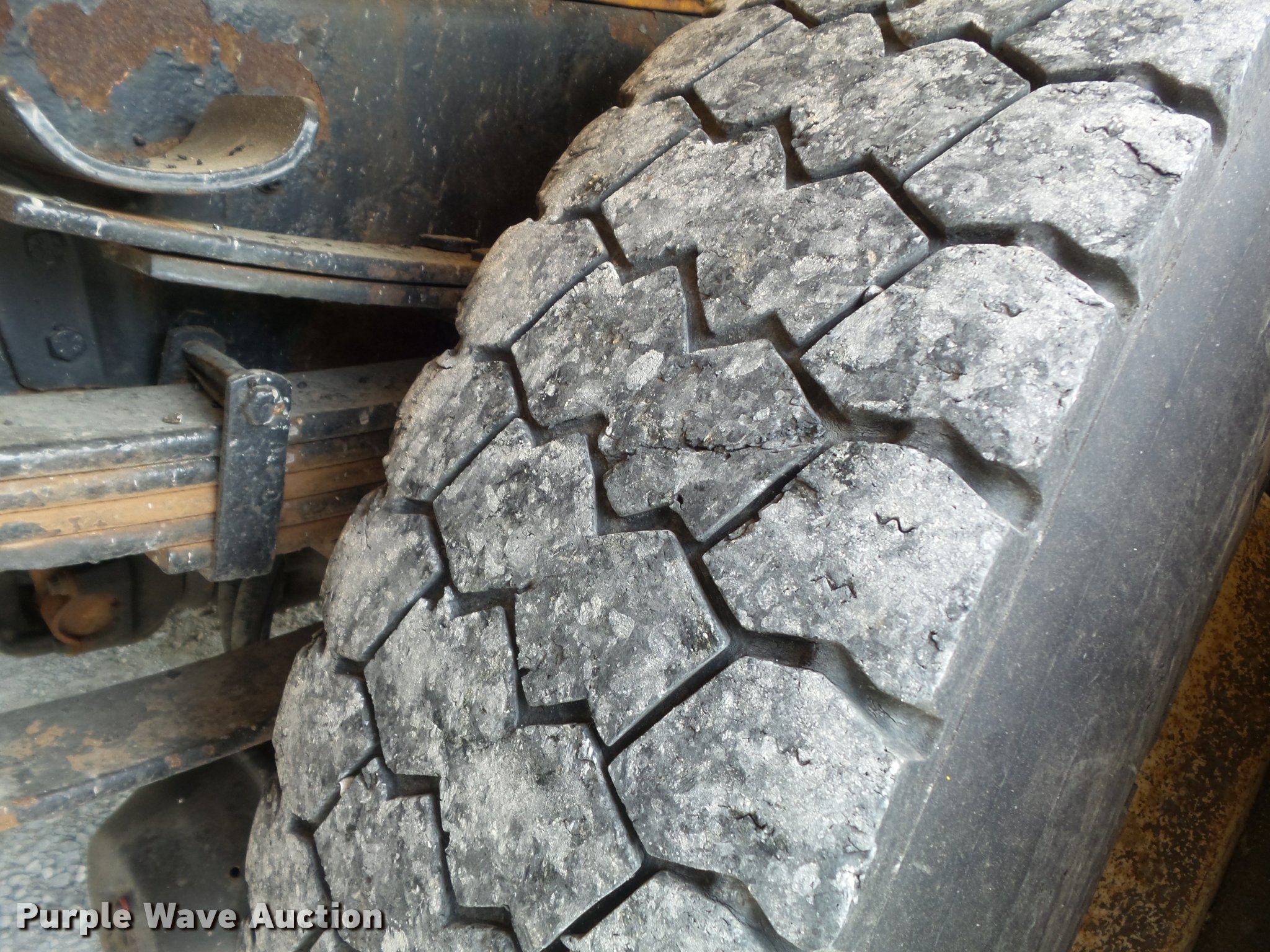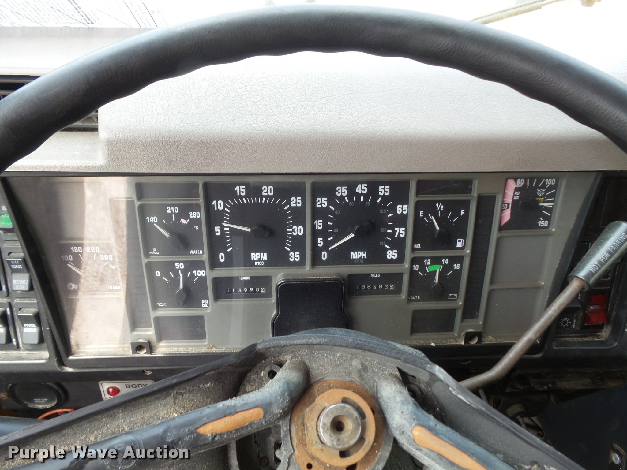 Purple Wave is selling a used Construction Dump Truck in Missouri. This item is a 2002 International 4900 Crew Cab dump truck with the following: 188,483 miles on odometer, 13,990 hours on meter, International DT466 7.6L L6 turbo diesel engine, Automatic transmission, Single axle, AC and heat, AM/FM/Weatherband, Power windows, Power and heated mirrors, Air suspension seat, Block heater, Front mounted PTO, Backup alarm, Steel dump bed, 10'L x 86"W, 24" side height, Single ram hoist, Roll tarp, Tailgate unattached but included, Toolboxes, 12'W snow plow, Side mounted shoulder blade, Hydraulic lift,, Swenson spreader, Pintle hitch, Trailer wiring, 206" wheelbase, Spring suspension, Air brakes, 315/80R22.5 front tires, 11R22.5 rear tires, Non-operational right side power window, AC will not blow cold, Non-operational tarp, Snow plow cutting edge missing, MODOT ID 6661
