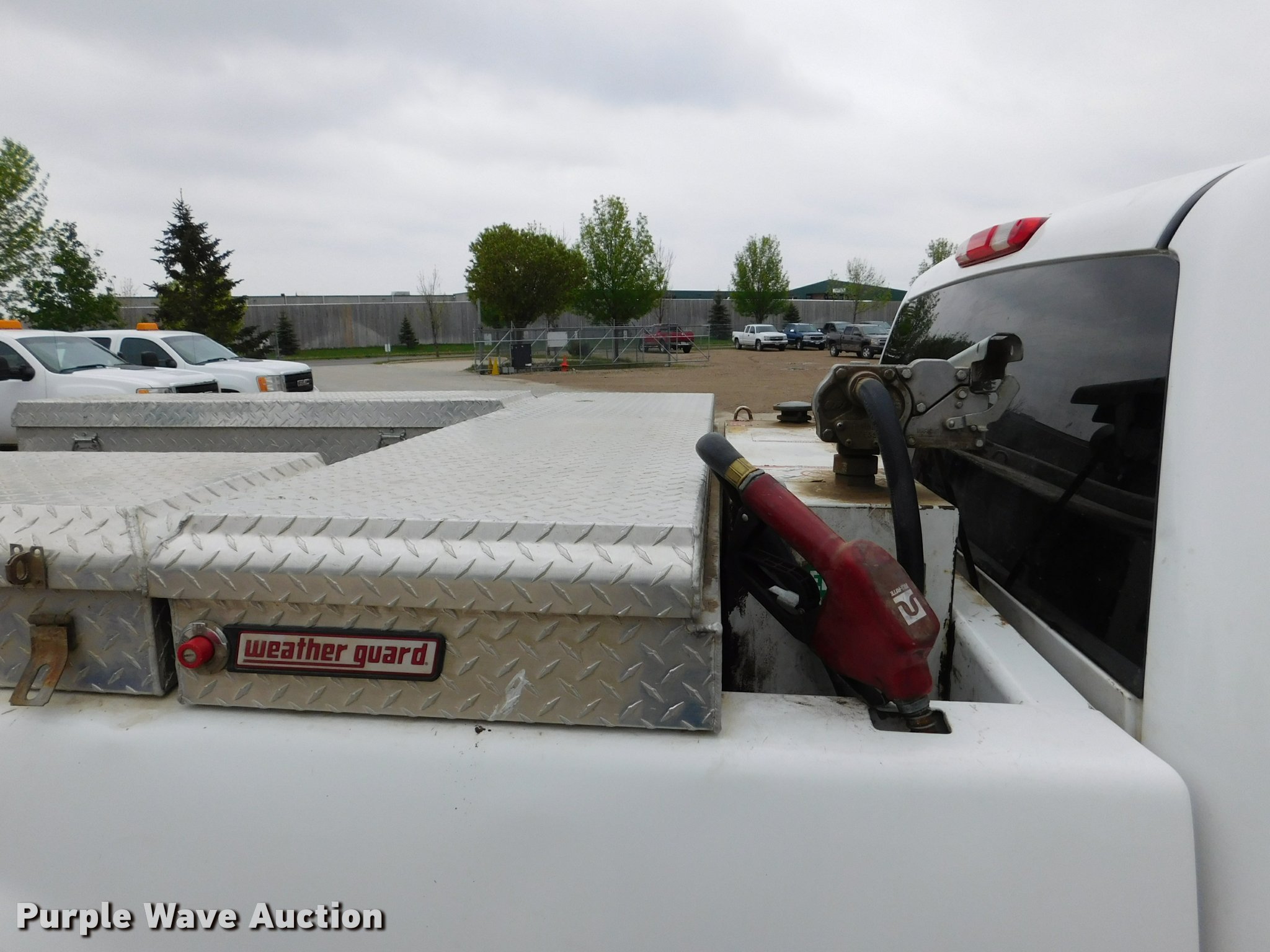 2011 GMC Sierra 3500HD Crew Cab pickup truck. 200,107 miles on odometer, 6.0L V8 OHV 16V FFV gas engine, Automatic transmission, Four wheel drive, AC and heat, Tilt, Cruise, AM/FM, Manual windows, Power locks, Cloth interior, Front tow hooks, Brake controller, Beacon light, Block heater, Long bed (3) toolboxes, Slide-in fuel tank 70 gallon capacity, GPI 12V pump, 15 gpm, Nozzle, Hose, Receiver hitch, Trailer wiring, LT275/65R18 tires, Front lower valance missing, Passenger side damage, Unit# 1302. Minnesota title. 1GT422CG6BF230416. Primoris Aevenia. 3030 24th Ave S. Moorhead, MN 56560