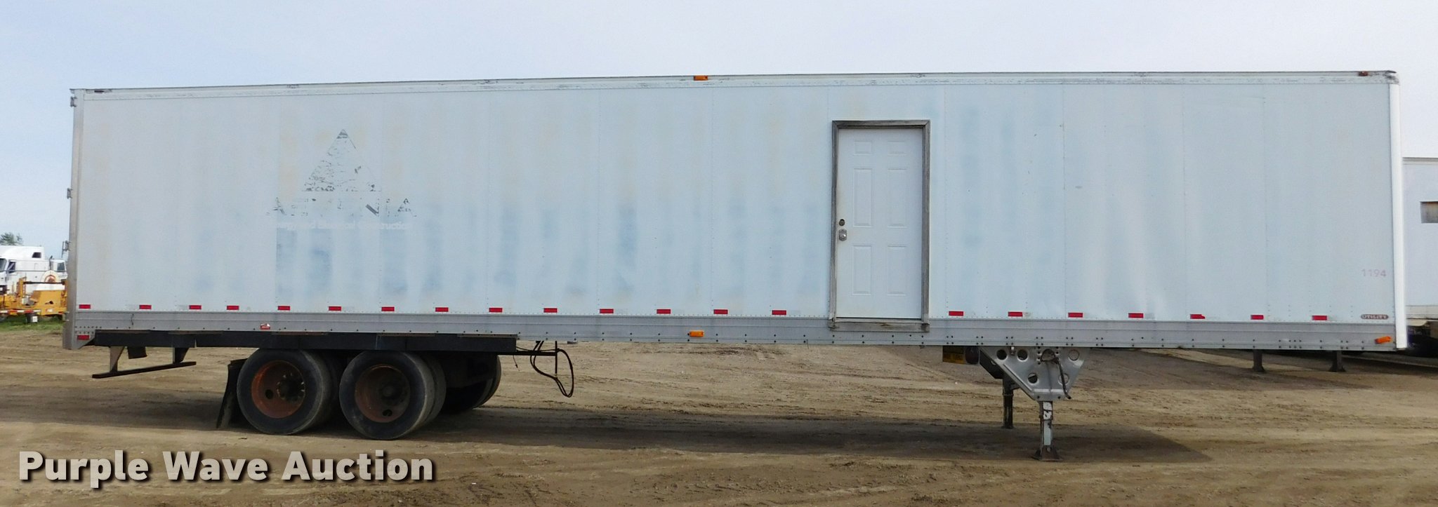 Purple Wave is selling a used Manufactured Home or Office in Minnesota. This item is a 1989 Utility Trailers office trailer with the following: 48'L x 100"W, Wood deck, Swinging rear doors, Right side door, Cabinets, Interior lighting, Fifth wheel plate, Dual leg landing gear, Spring suspension, Air brakes, Tandem axle, Sliding rear axle, Steel wheels, 285/75R24.5 tires, GVWR 65,000 lbs, Unit# 1194