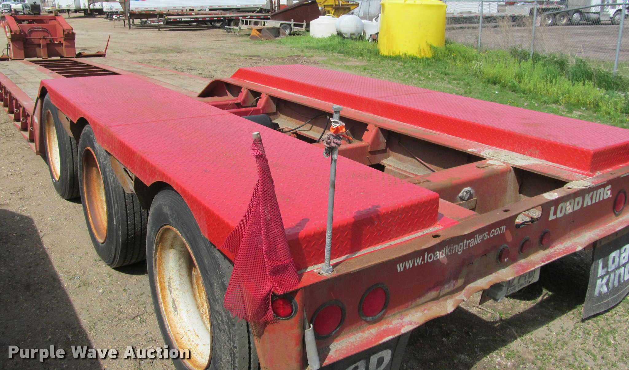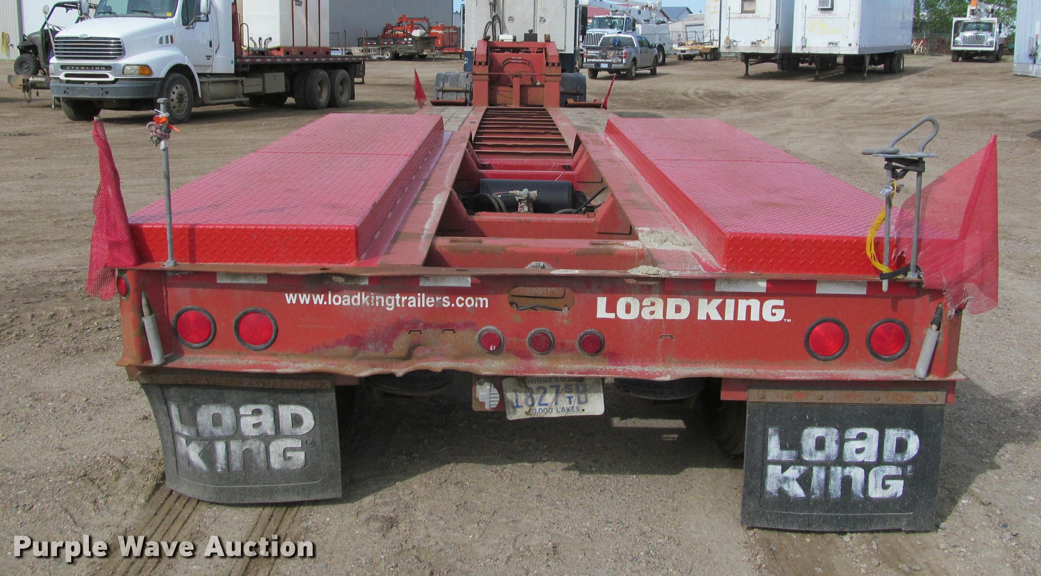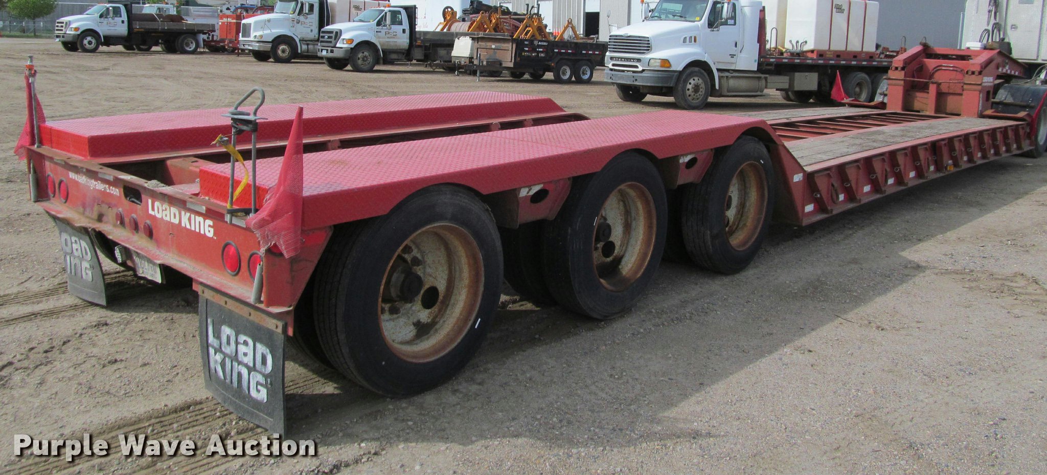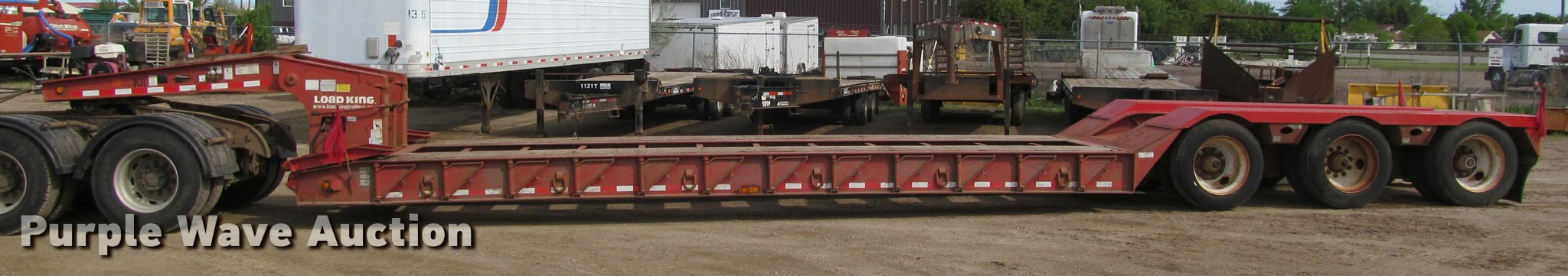 Purple Wave is selling a used Equip. Trailer in Minnesota. This item is a 2006 Terex Load King 553SS lowboy equipment trailer with the following: 53'L x 102"W, 23.5'L well, 14'L rear deck, 3'2"L ramps, 12" swing-out outriggers, Detachable neck, Self-contained hydraulics, Steel/wood deck, Honda single cylinder gas engine, Electric start, Recoil start inoperable, Hydraulic pump, Manual hydraulic controls, Fifth wheel plate, Hydraulic landing gear, Air suspension, Air brakes, Triple axle, Steel wheels, 255/70R22.5 tires, GVWR 127,820 lbs, GAWR 26,230 lbs, Unit# 703