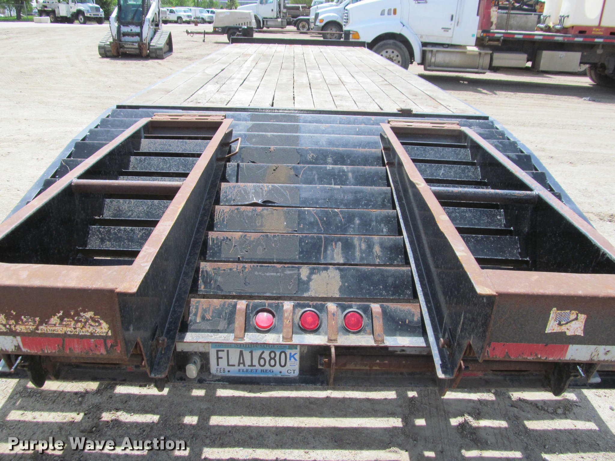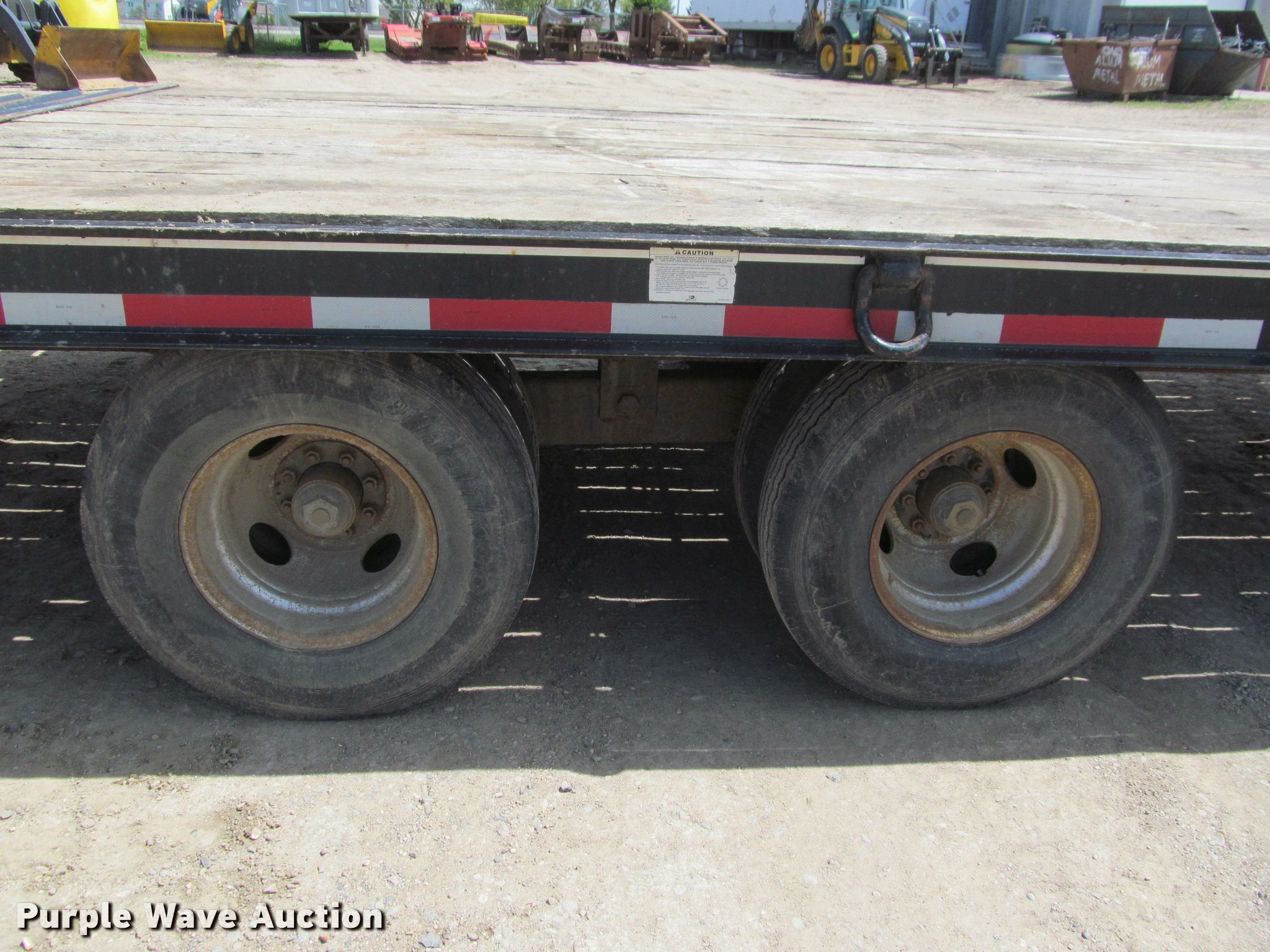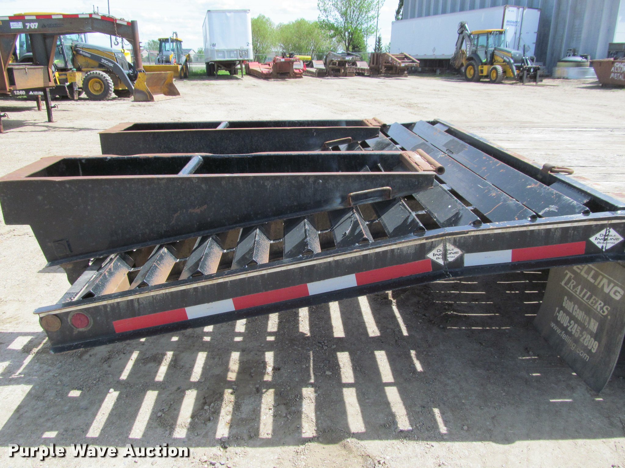 Purple Wave is selling a used Flat or Drop Deck Trailer in Minnesota. This item is a 2009 Felling FT24-2 flatbed trailer with the following: 35'L x 102"W, 23'L deck, 7'L dovetail, 64"L ramps, 36" floor height, Wood deck, D-ring tie downs, Recessed toolbox, Pintle hitch, Dual leg two speed landing gear, Spring suspension, Electric brakes, Tandem axle, Steel wheels, 7.5R16 tires, GVWR 30,000 lbs, GAWR 12,000 lbs, Unit# 1121