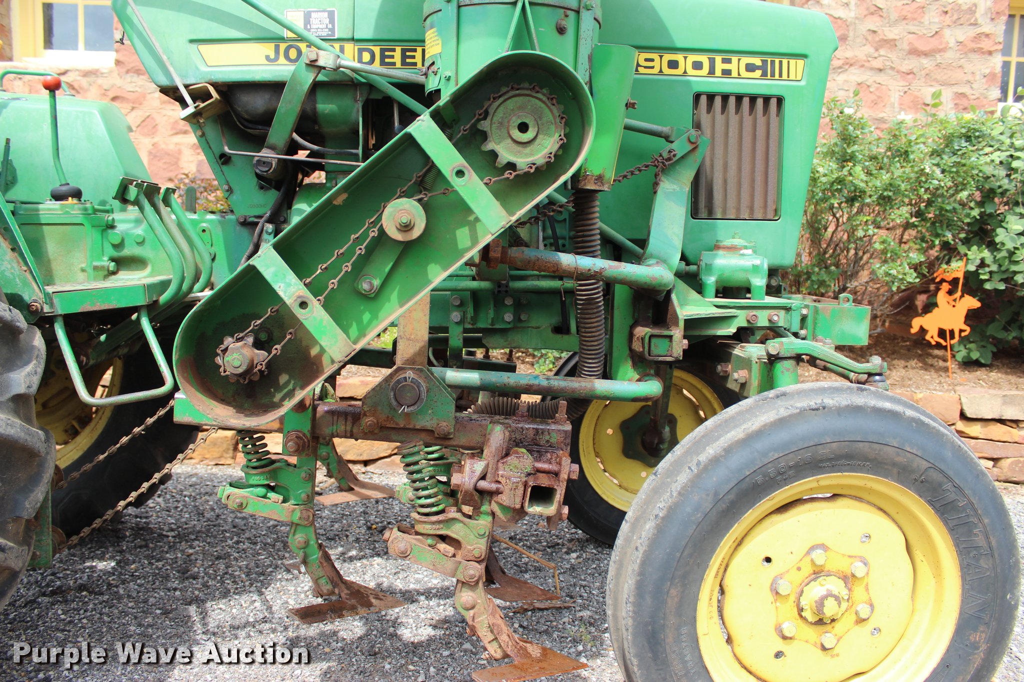 Purple Wave is selling a used Tractor in Oklahoma. This item is a 1986 John Deere 900HC tractor with the following: 1,238 hours on meter, Yanmar 3T80J-S three cylinder diesel engine, Serial CH3043A212665, Manual transmission, 4F-2R gears, ROPS, Front work lights, Three point, 540 PTO, High Crop one row cultivator, (5) shanks, Mid-mount, Serial 100008X000780, (2) Lilliston rear cultivators, Fertilizer attachment, Model 250S, Serial 1Y230SA001096, 5.50-16SL front tires, 11.2-28 rear tires, Original sweeps included, Serial CH0900S001400