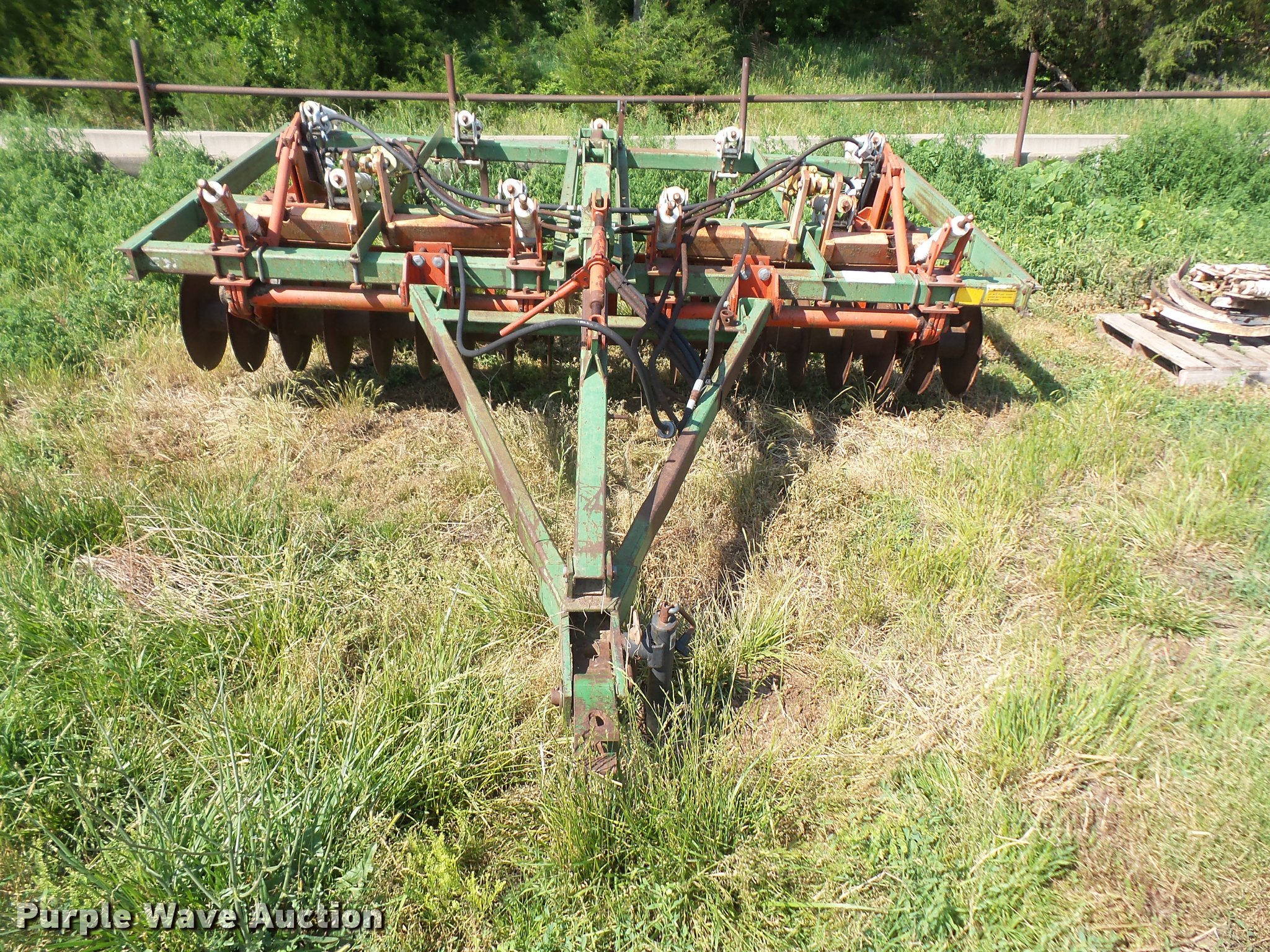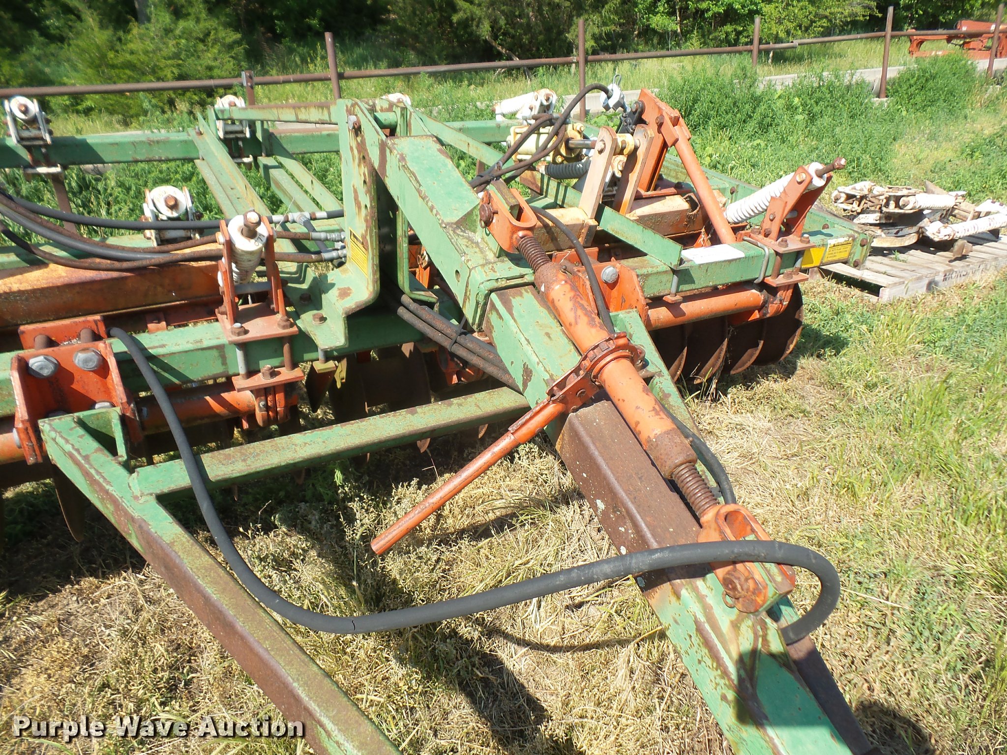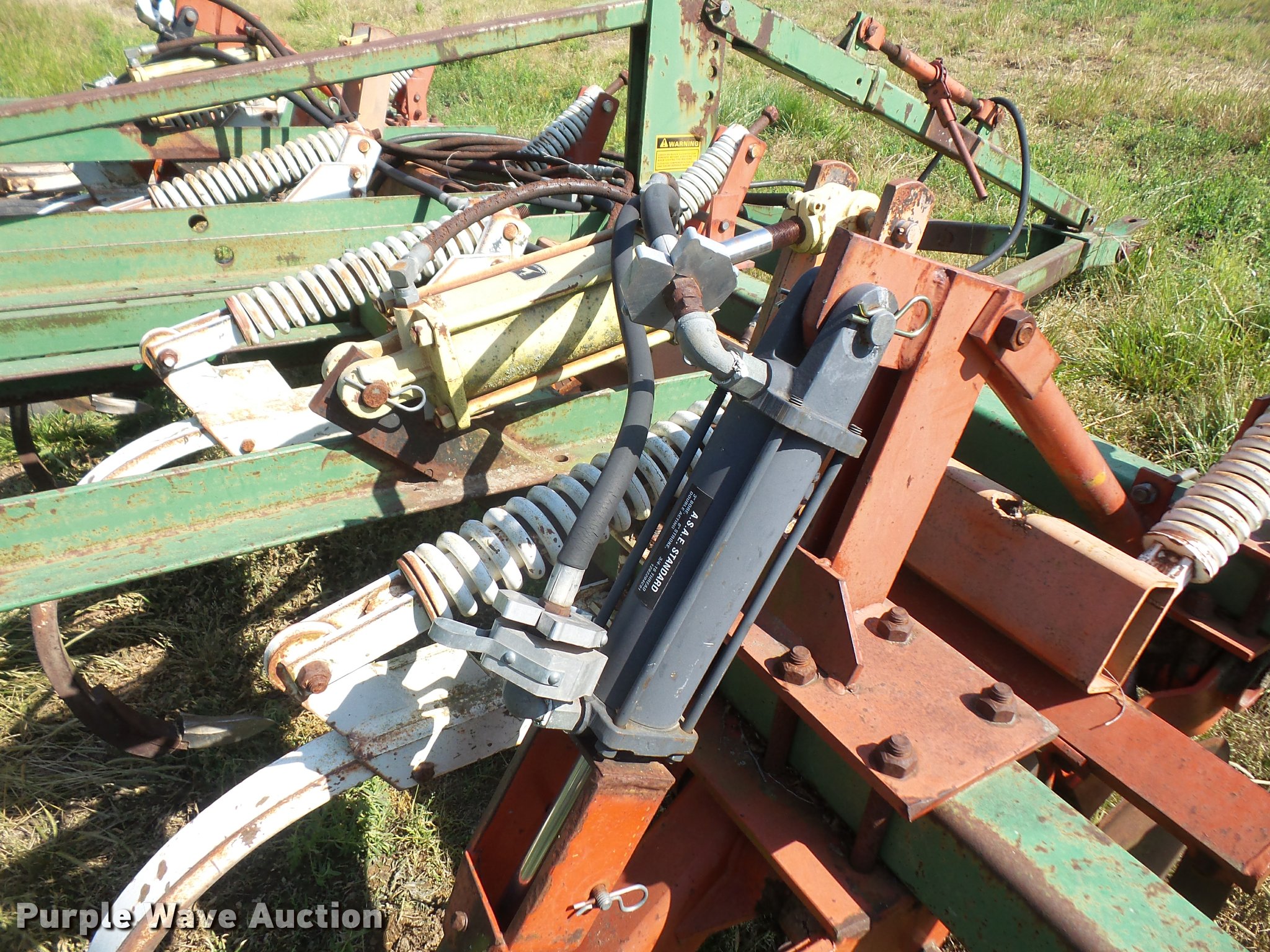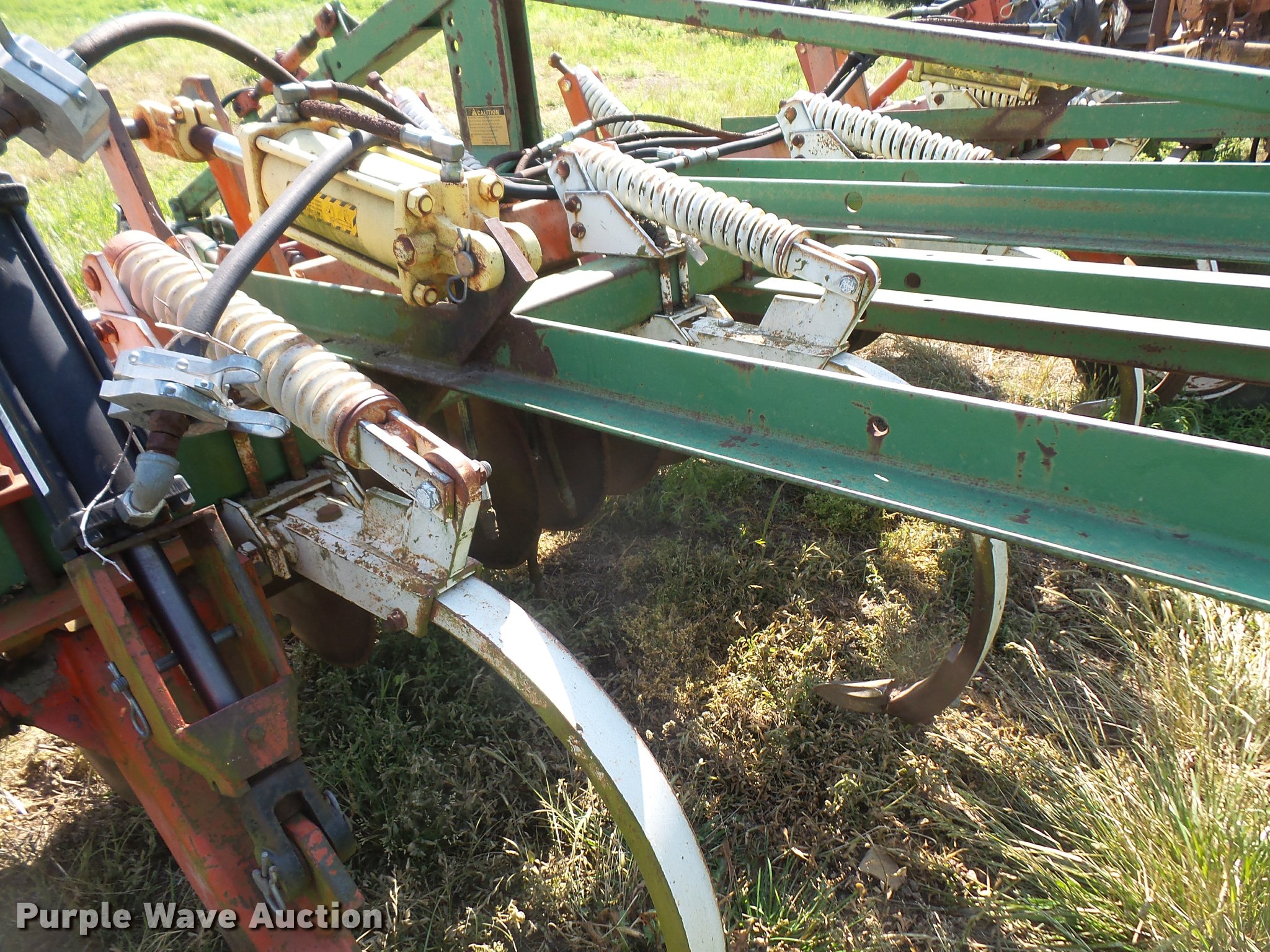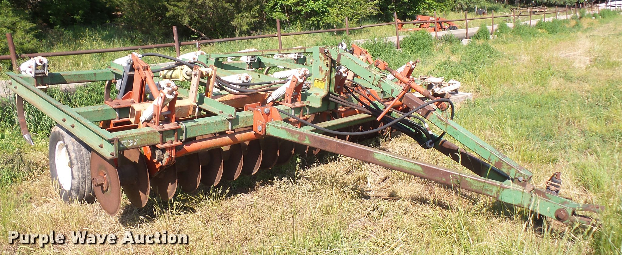 Purple Wave is selling a used Chisel in Kansas. This item is a Glenco Soil Saver chisel with the following: 12'W, (9) shanks, 19.5" diameter front blades, 7.5" spacing, Manual leveler, Hydraulic lift, Pin/clevis hitch, 11L-15 tires, (6) additional chisel shanks
