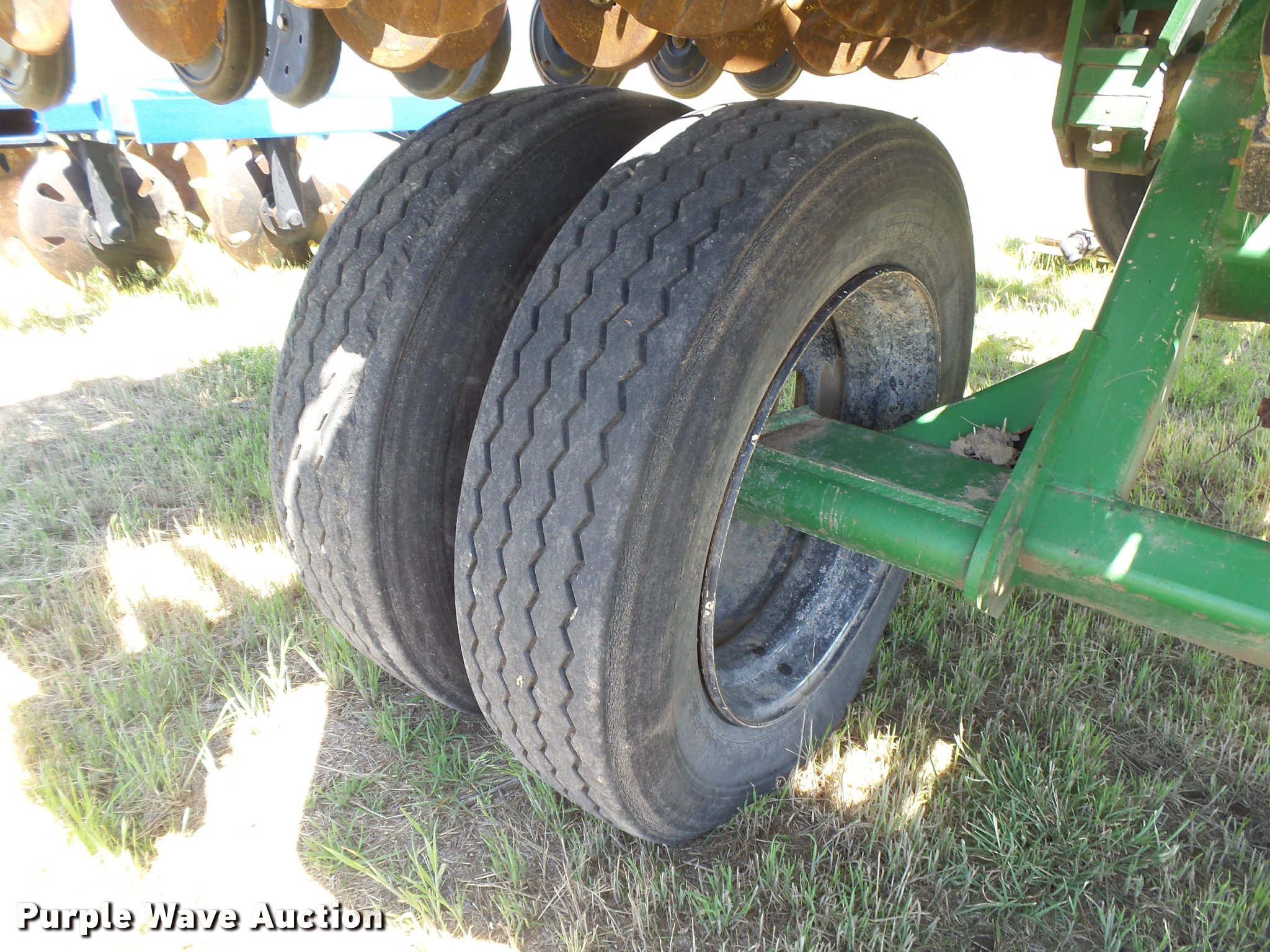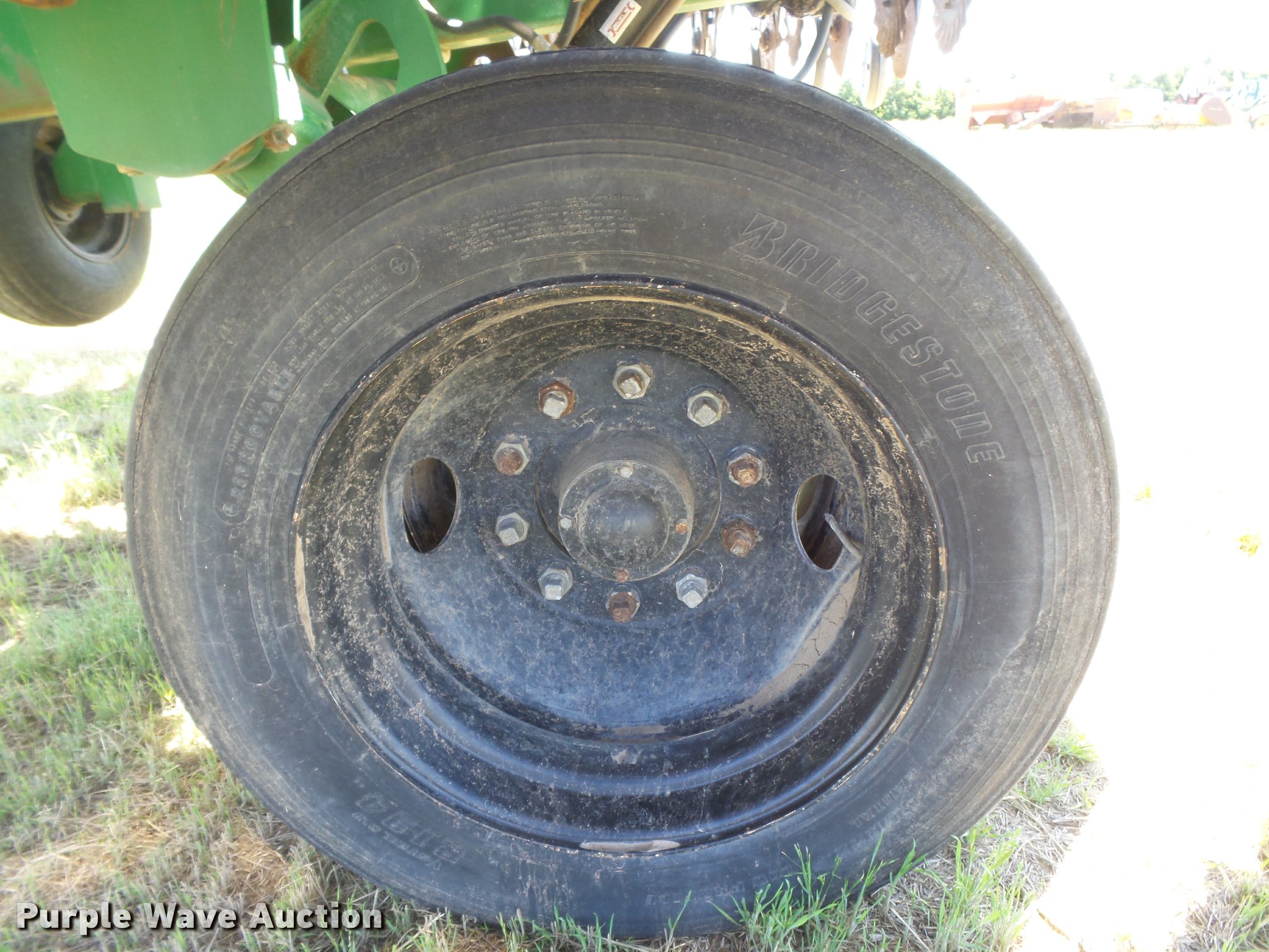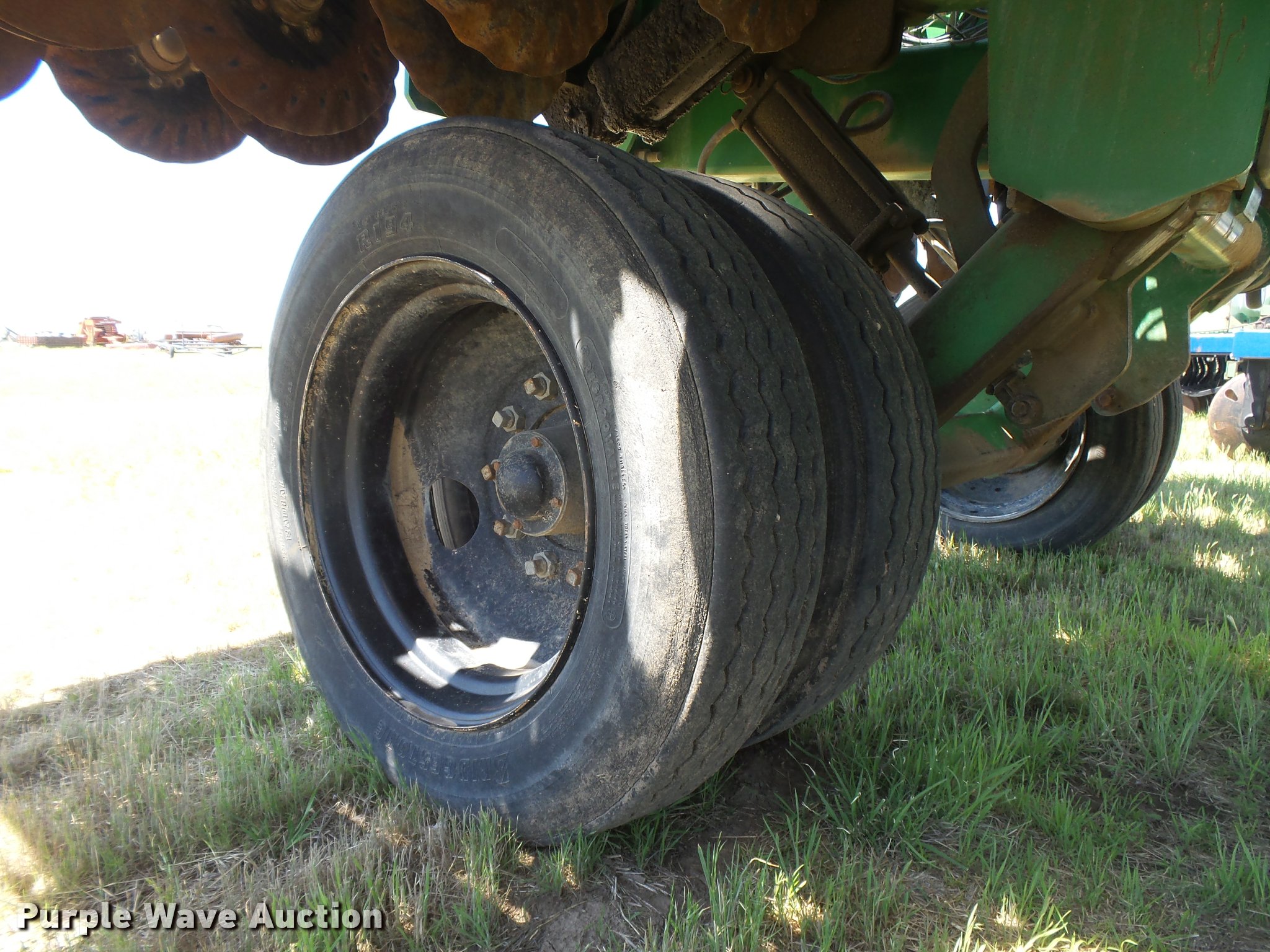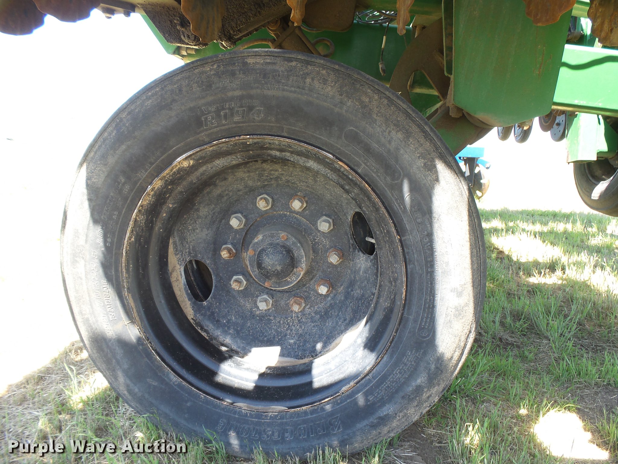 Purple Wave is selling a used Grain Drill or Seeder in Kansas. This item is a Great Plains 25NT24 grain drill with the following: 24'W, 28 row units, 10" row spacing, Marker arms, Hydraulic wing fold, Bulk fill system, Ground meter drive, No-till coulters, Double disk openers, Single rubber closing system, 250 gallon leg tank, Ace hydraulic product pump, Pin hitch, (4) 255/70R22.5 transport tires, (2) 11L-15SL drive/outside tires, Additional parts, Serial GPC1192