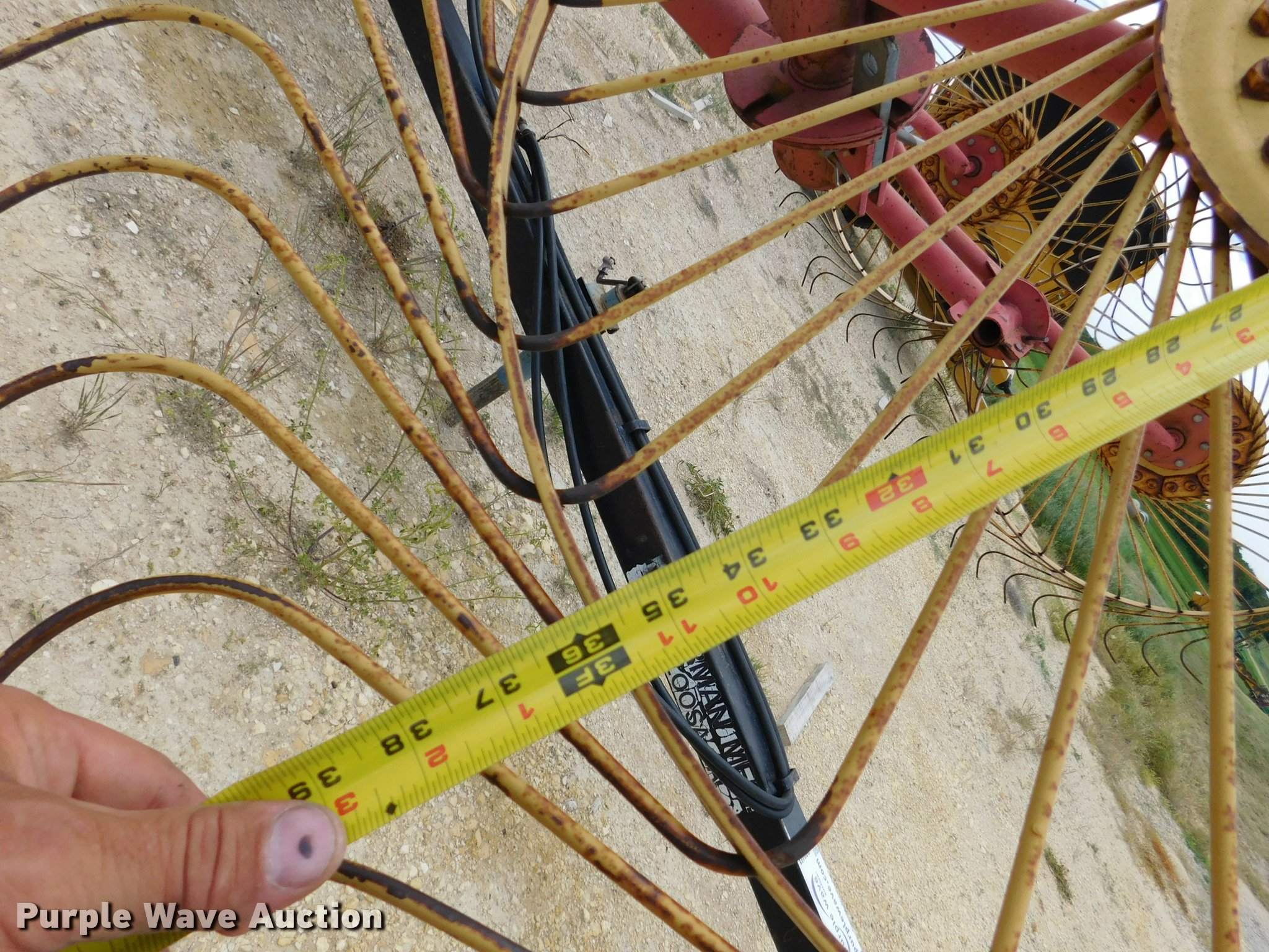 Purple Wave is selling a used Hay Rake in Kansas. This item is a Kelderman hay rake with the following: 24'W, (12) 53" diameter wheels, Hydraulic fold, Hydraulic windrow width adjust, P205/70R14 tires, Serial KRCIIID3502