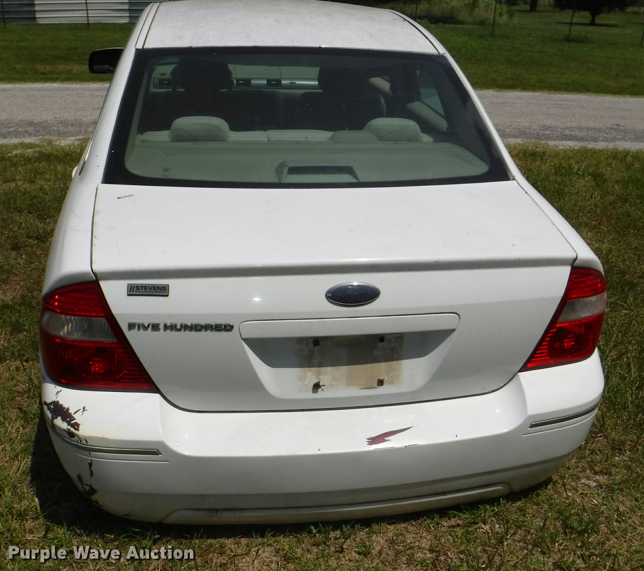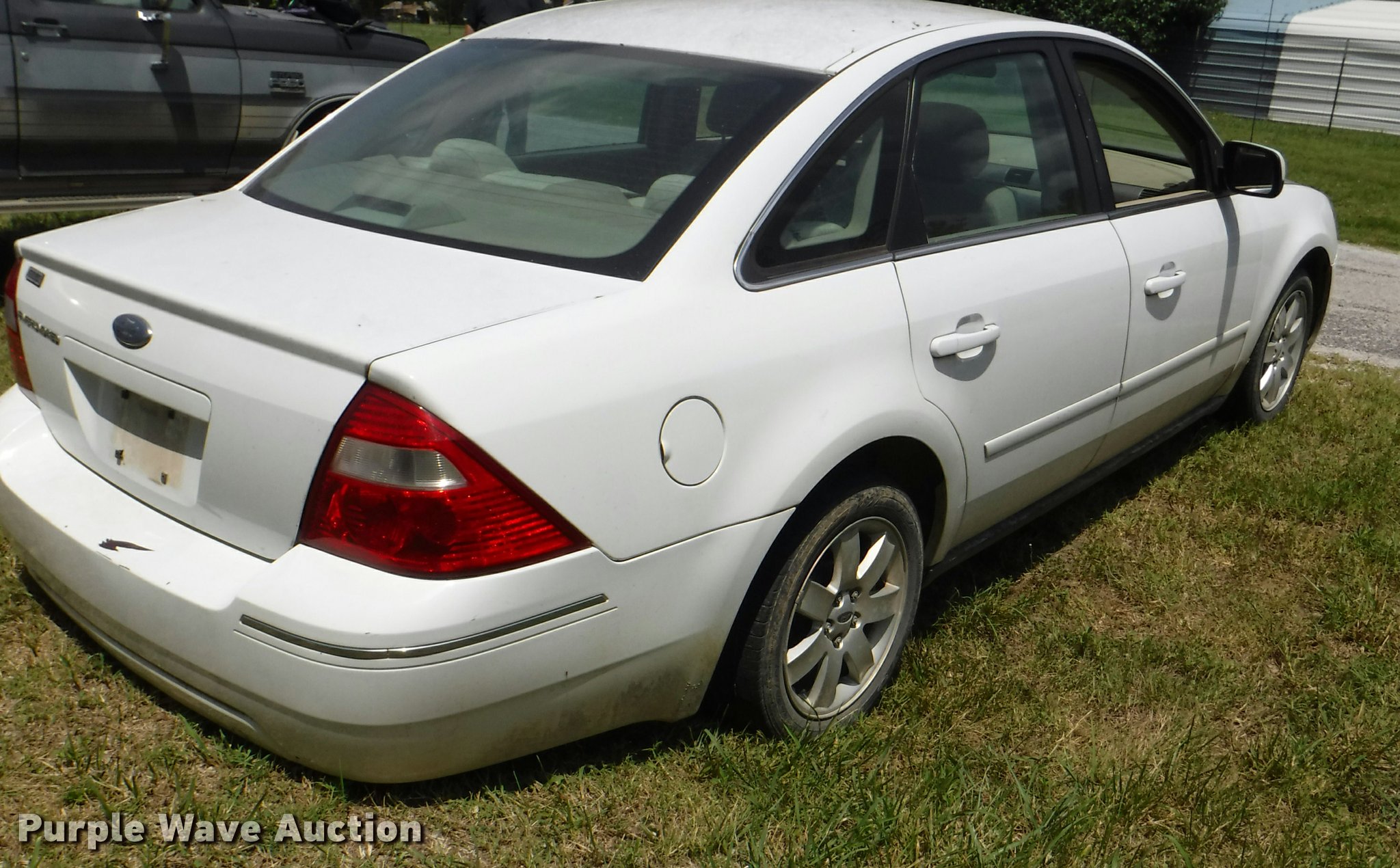 Purple Wave is selling a used Passenger Vehicle in Kansas. This item is a 2005 Ford Five Hundred with the following: 152,643 miles on odometer, 3.0L V6 DOHC 24V gas engine, Automatic transmission, AC and heat, Tilt, Cruise, AM/FM/CD, Power windows, locks, mirrors, and seats, Cloth interior, 215/55R17 tires, Additional driver's side door, grill, headlight, Windshield cracked, Check engine light is on