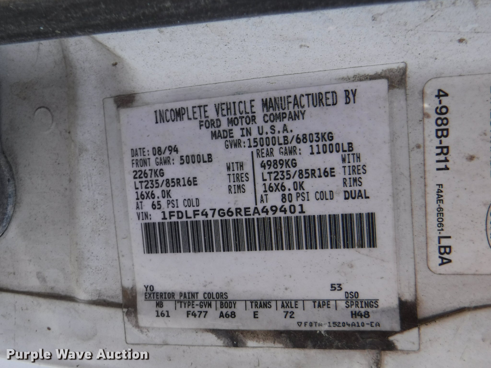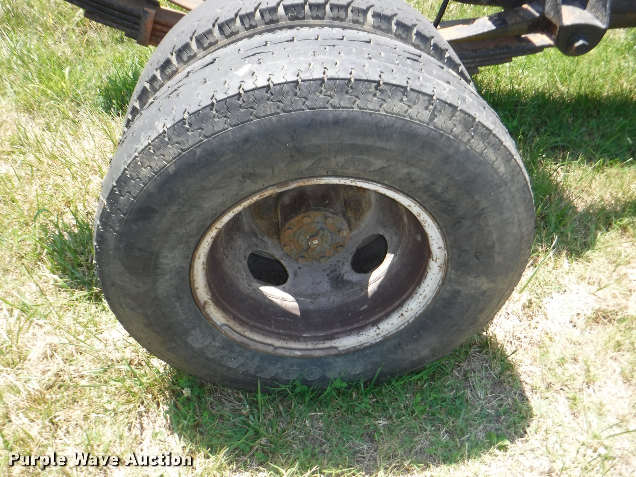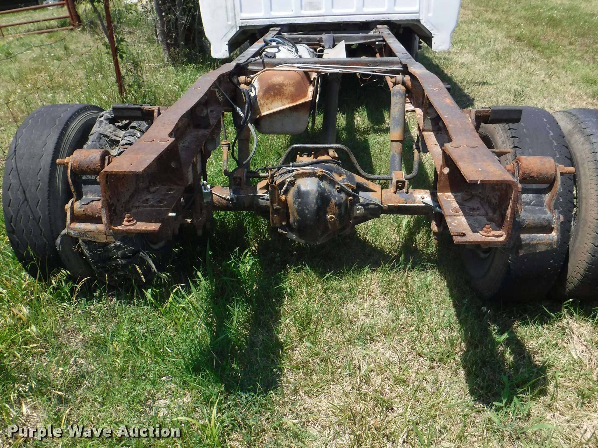 Purple Wave is selling a used Truck Chassis in Kansas. This item is a 1994 Ford F450 Super Duty XL cab and chassis with the following: 206,829 miles on odometer, 7.5L V8 gas engine, Automatic transmission, Heat, Manual windows and locks, Cloth interior, 235/85R16 tires, Fuel tank is not hooked up, Batteries weak, Dash cracked, No radio, No taillight