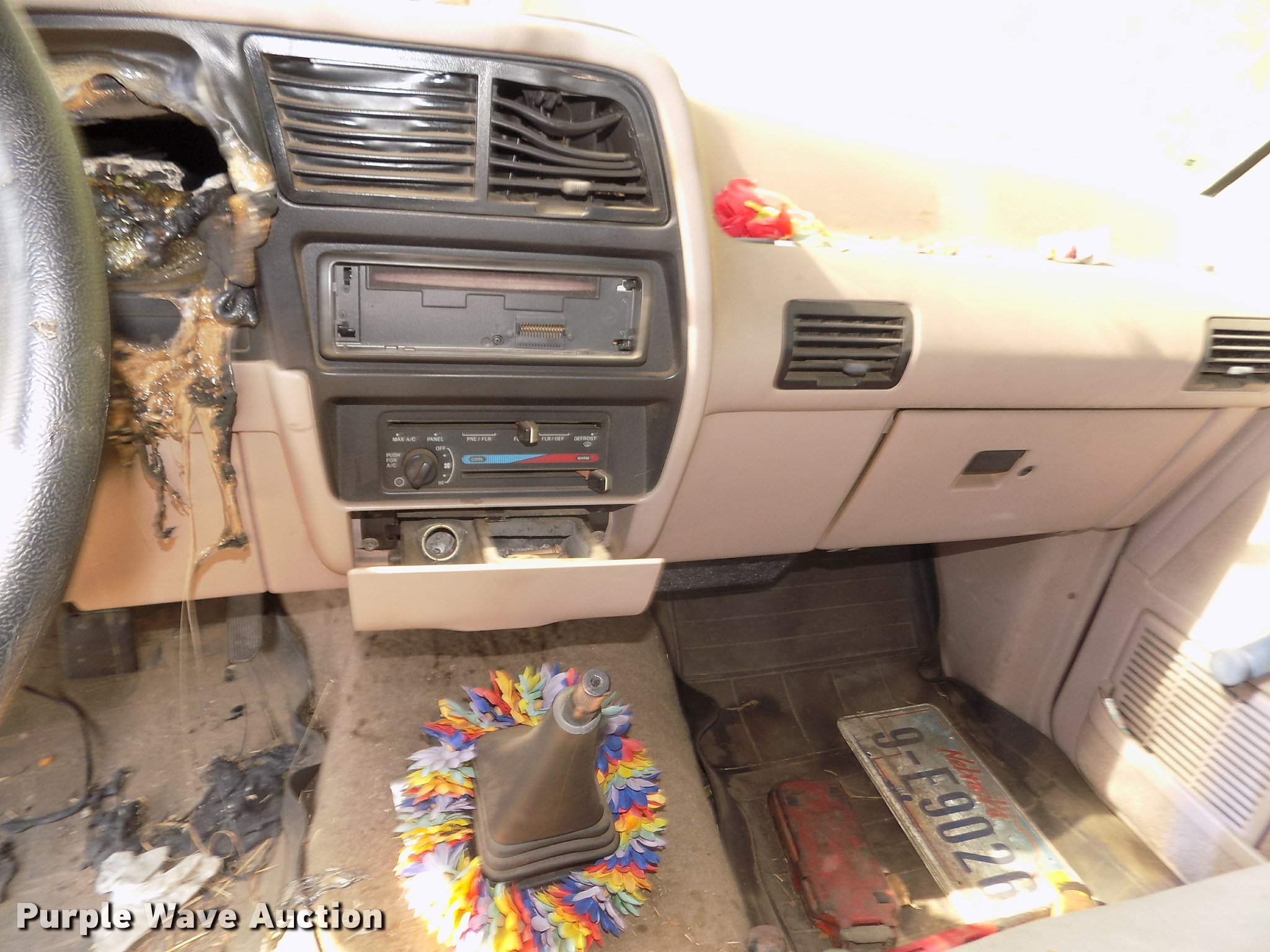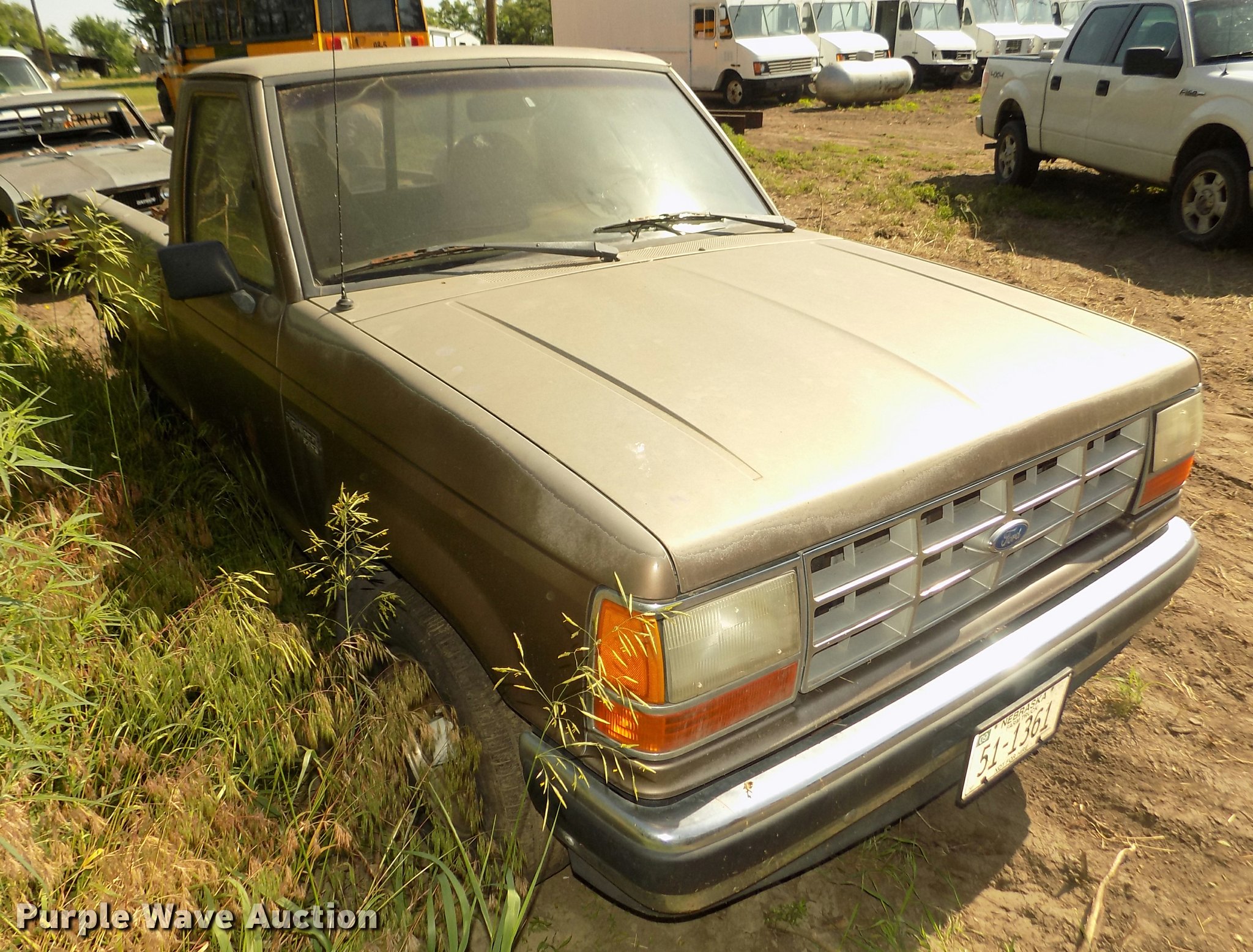 Purple Wave is selling a used Compact Pickup or Van in Nebraska. This item is a 1992 Ford Ranger XLT pickup truck with the following: Unknown miles on odometer, 4.0L V6 OHV 12V gas engine, Manual transmission, AC and heat, Cruise, Manual windows and locks, Cloth interior, Trailer wiring, Aluminum wheels, P205/75R14 tires, Non-operational vehicle, Fire damage, Bed contents are not included
