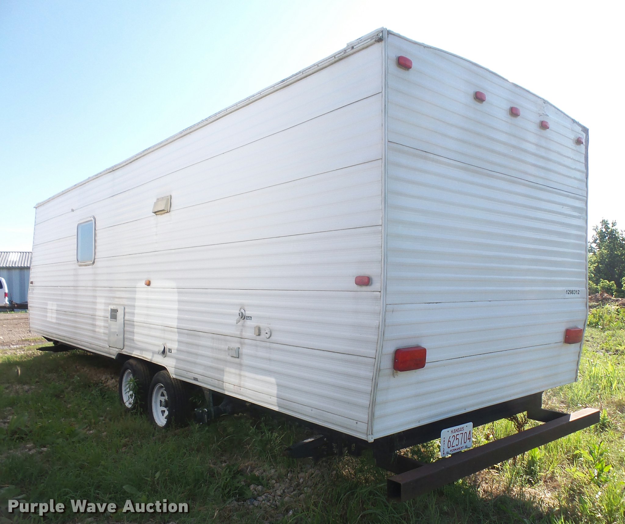Purple Wave is selling a used RV in Kansas. This item is a 2006 Gulf Stream camper with the following: 28'L, Bathroom, Refrigerator, Range oven, Microwave, Bedroom, (2) bunk beds, (2) propane tanks, 2 5/16" ball hitch, Tandem axle, 215/75D14 tires, Water damage