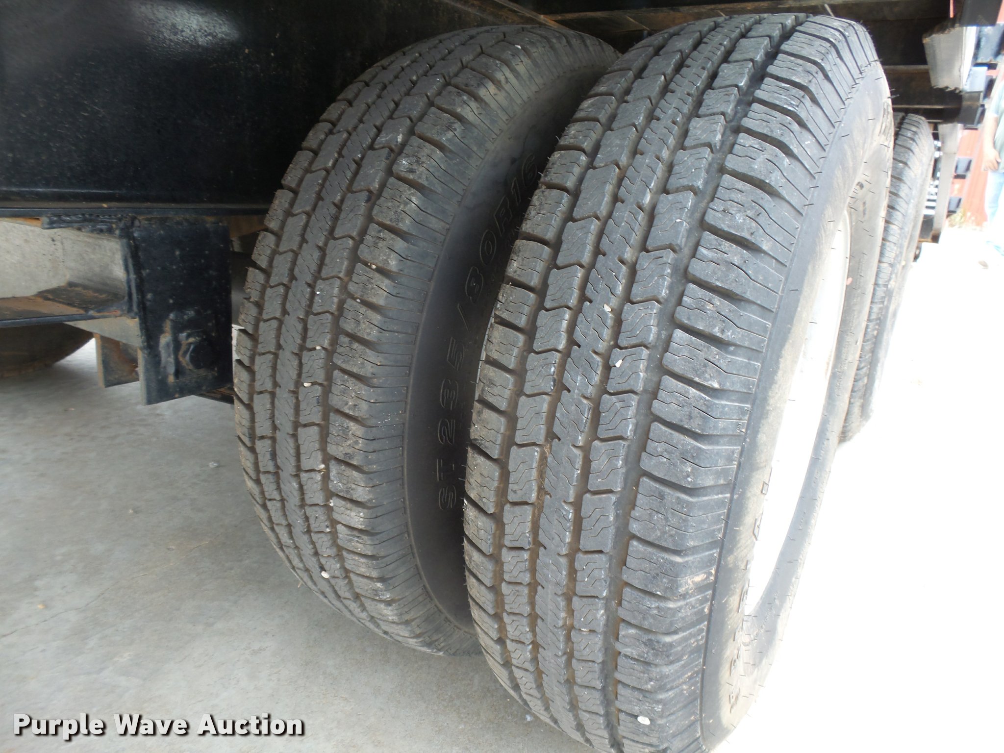 Purple Wave is selling a used Equip. Trailer in Oklahoma. This item is a 2014 Top Hat equipment trailer with the following: 41' overall length, 27'L wood deck, 38" floor height, 6' tail length, 5'L ramps, Toolbox, Dual leg landing gear, Gooseneck hitch, Spring suspension, Electric brakes, Steel wheels, ST235/80R16 tires, GVWR 22,500 lbs, GAWR 10,000 lbs