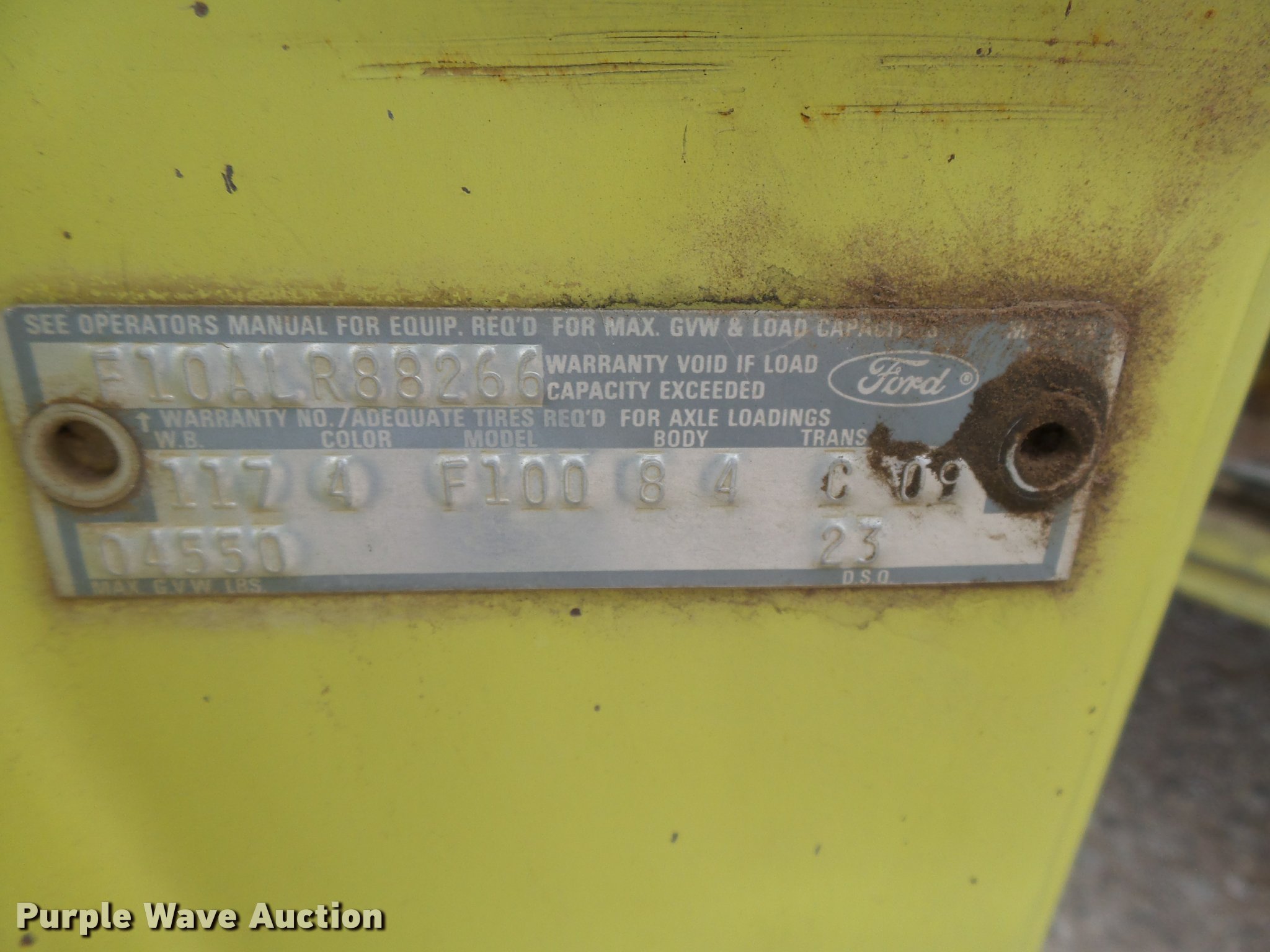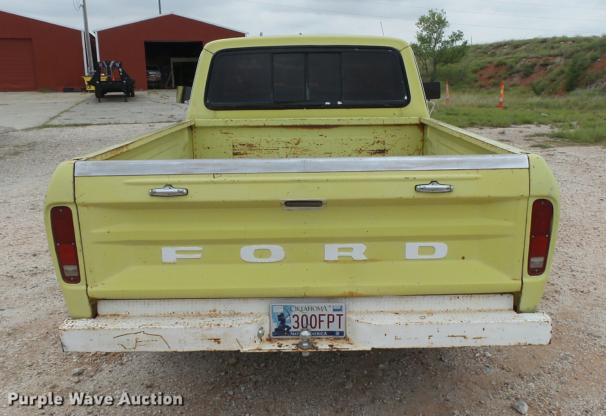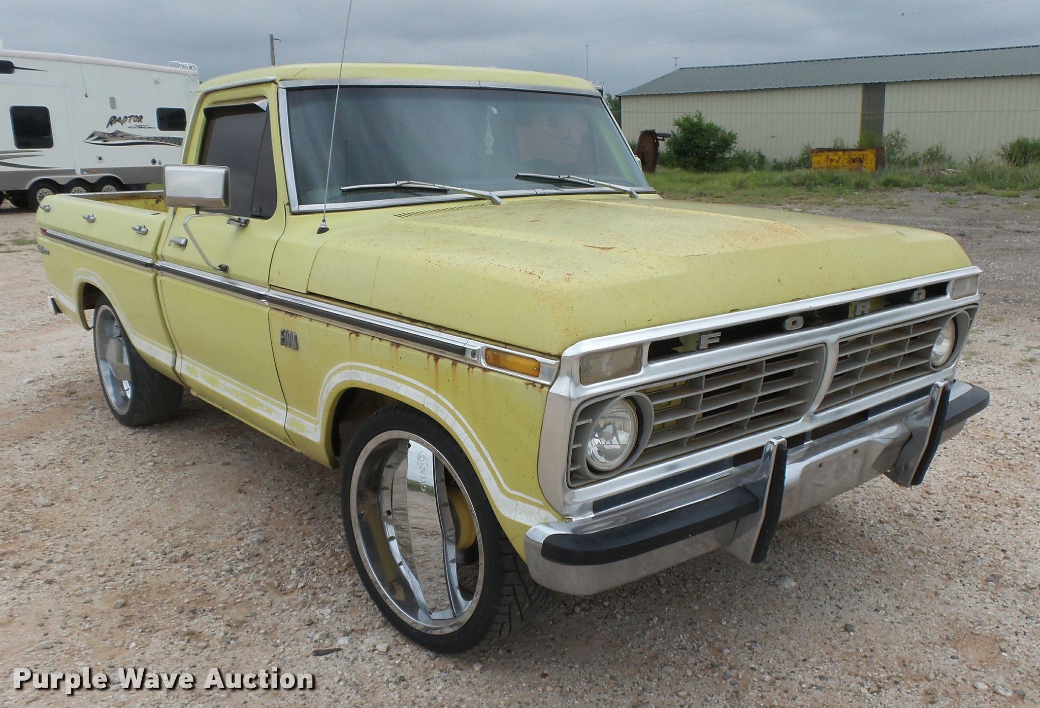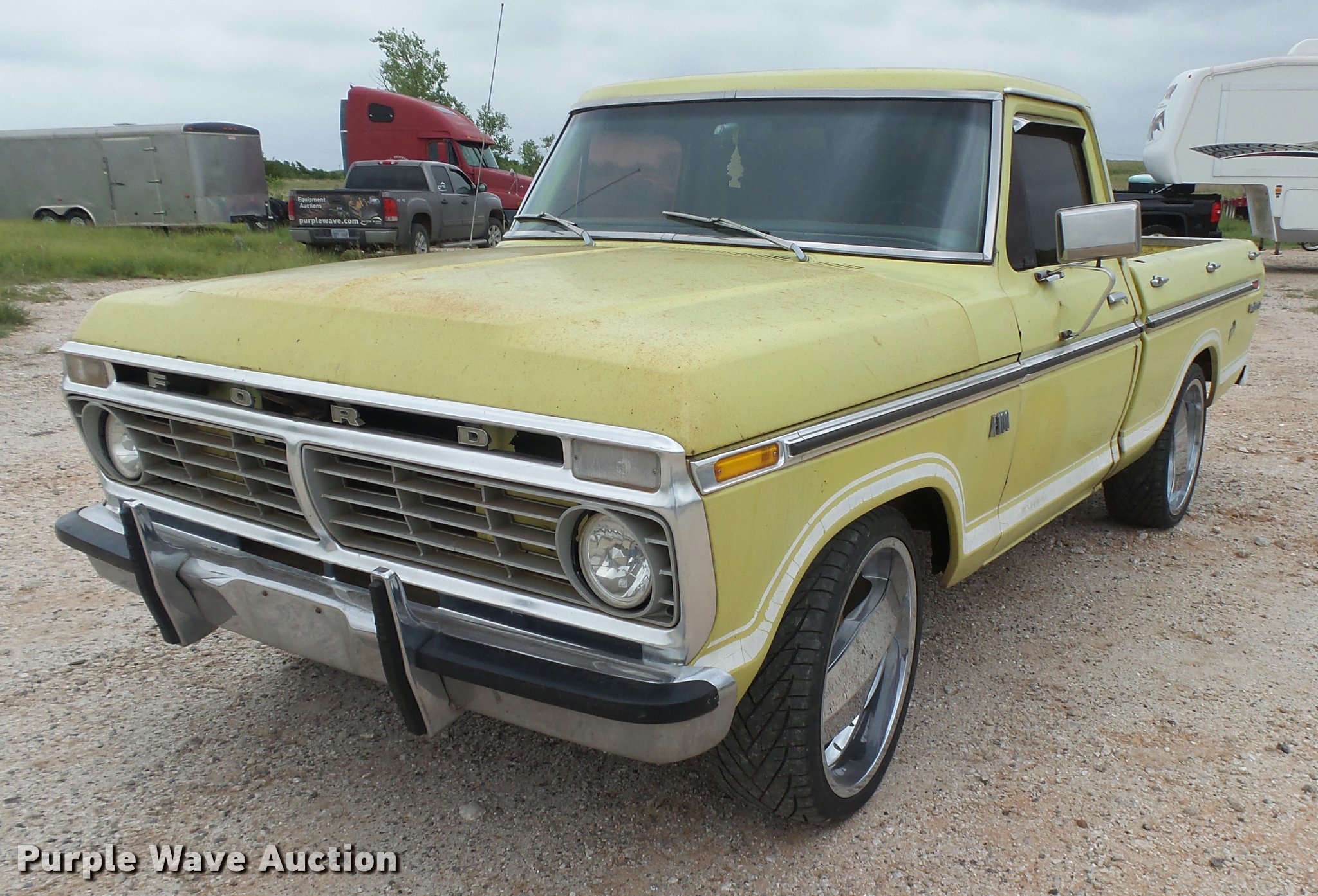 Purple Wave is selling a used 1/2 Ton Pickup or Van in Oklahoma. This item is a 1973 Ford F100 pickup truck with the following: 34,407 miles on odometer, Eight cylinder gas engine, Four speed manual transmission, Heat, AM/FM/cassette, Manual windows and locks, Vinyl interior, Gitano wheels, 265/35R22 102UXL tires, Additional floor pan included