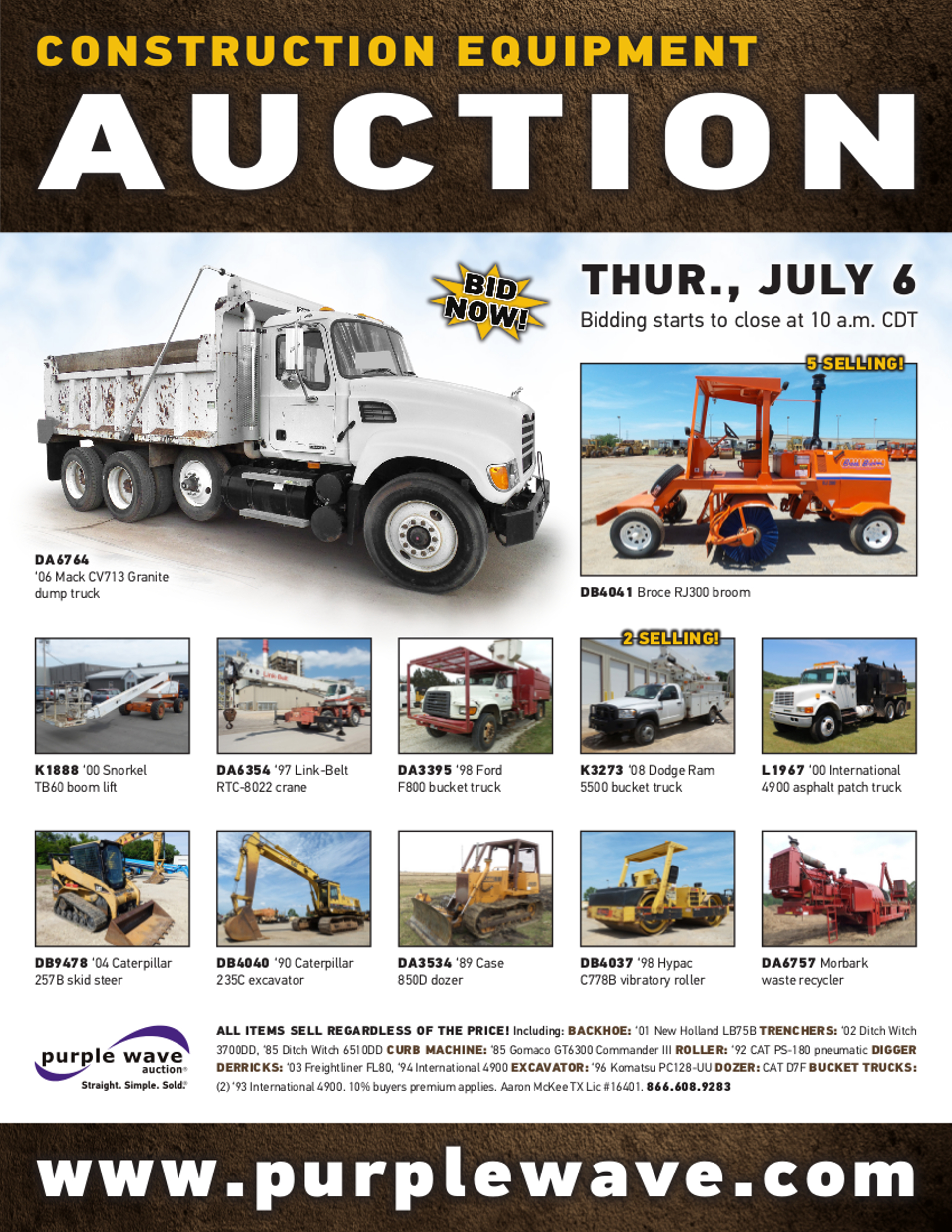 This auction is conducted by Purple Wave, Inc., whose home office is 825 Levee Drive, Manhattan, Kansas. Aaron McKee, Texas auctioneer license # 16401, operates Purple Wave, Inc. Complaints against us may be directed to the Texas Department of Licensing and Regulation, P.O. Box 12157, Austin, Texas 78711, (512) 463-6599. For additional required information, see the attached document.
