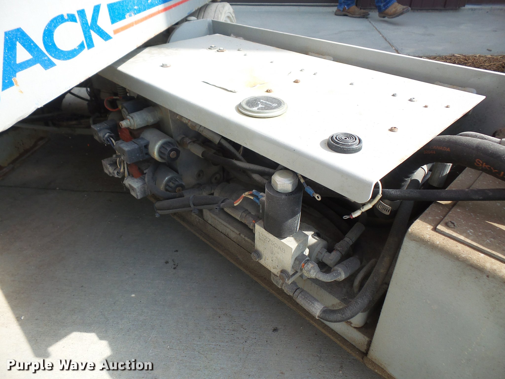 2008 Sky Jack SJ III 3220 scissor lift. 200 hours on meter, 24V operation, 900 lbs maximum lift capacity, 20' maximum lift height, 7.5'L x 30"W platform 6' powered platform extensions, AC power outlet, Non-marking tires, Serial 60001363. John Whitaker Plumbing. Alma, KS 66401