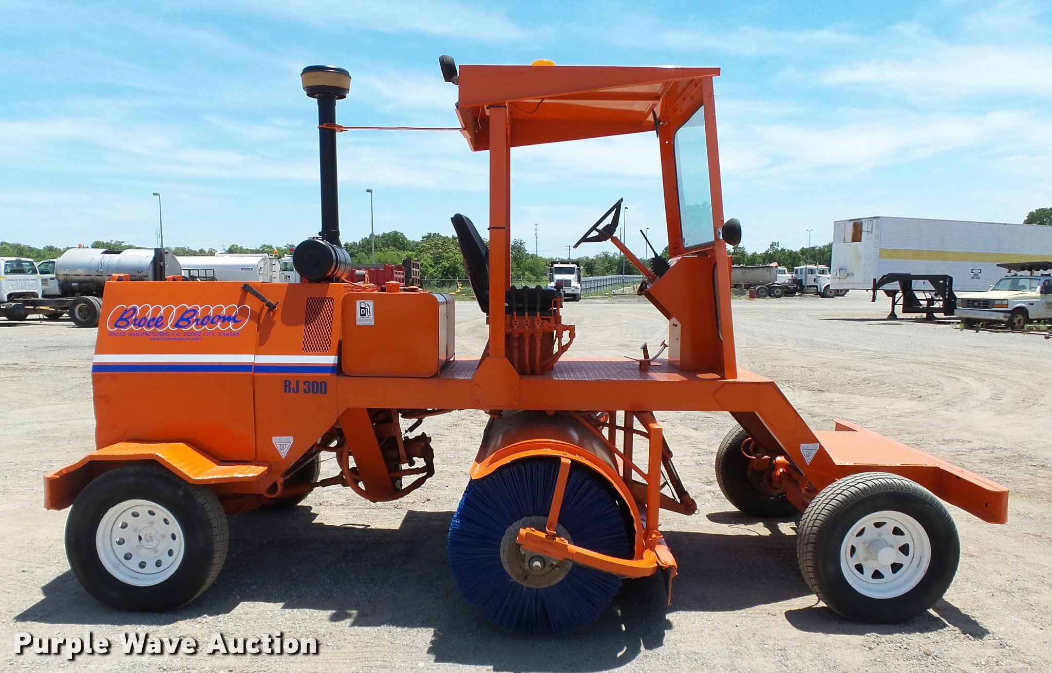 Purple Wave is selling a used Broom in Oklahoma. This item is a 1995 Broce RJ300 broom with the following: 6,867 hours on meter, John Deere 4039DF001 four cylinder turbo diesel engine, Serial T04839D505305, Hydrostatic transmission, Canopy, Windshield, Three stick boom controls, Hydraulic lift and angle adjustment, Amber beacon light, Backup alarm, Front and rear work lights, 8'W broom, ST225/75R15 tires, Serial 87712, Unit# 8-19