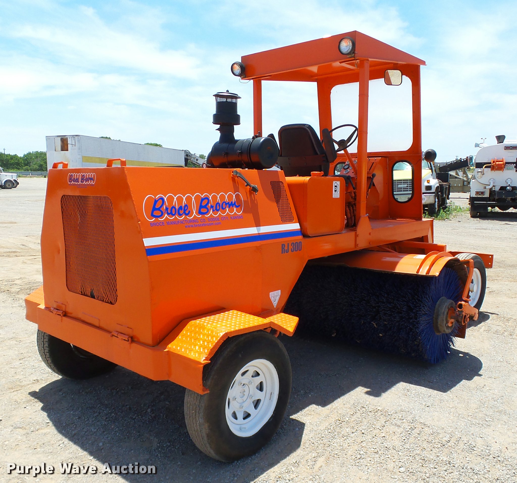 Purple Wave is selling a used Broom in Oklahoma. This item is a 1992 Broce RJ300 broom with the following: 4,115 hours on meter, John Deere 4045DF150 four cylinder turbo diesel engine, Serial PE4045D580916, Hydrostatic transmission, Canopy, Windshield, Three stick broom controls, Hydraulic lift and angle adjustment, Amber beacon light, Backup alarm, Front and rear work lights, 8'W broom, ST225/75R15 tires, Serial 86791, Unit# 8-17