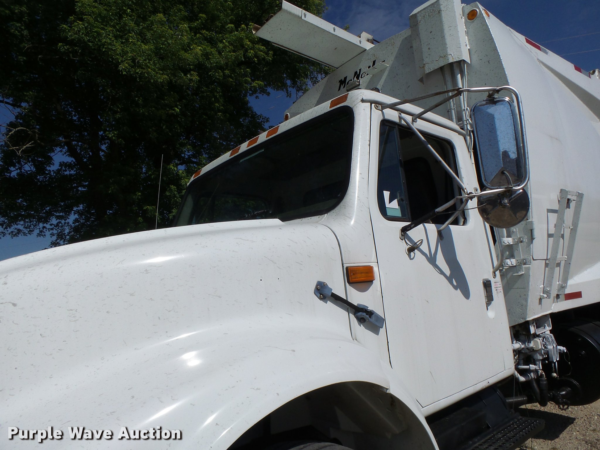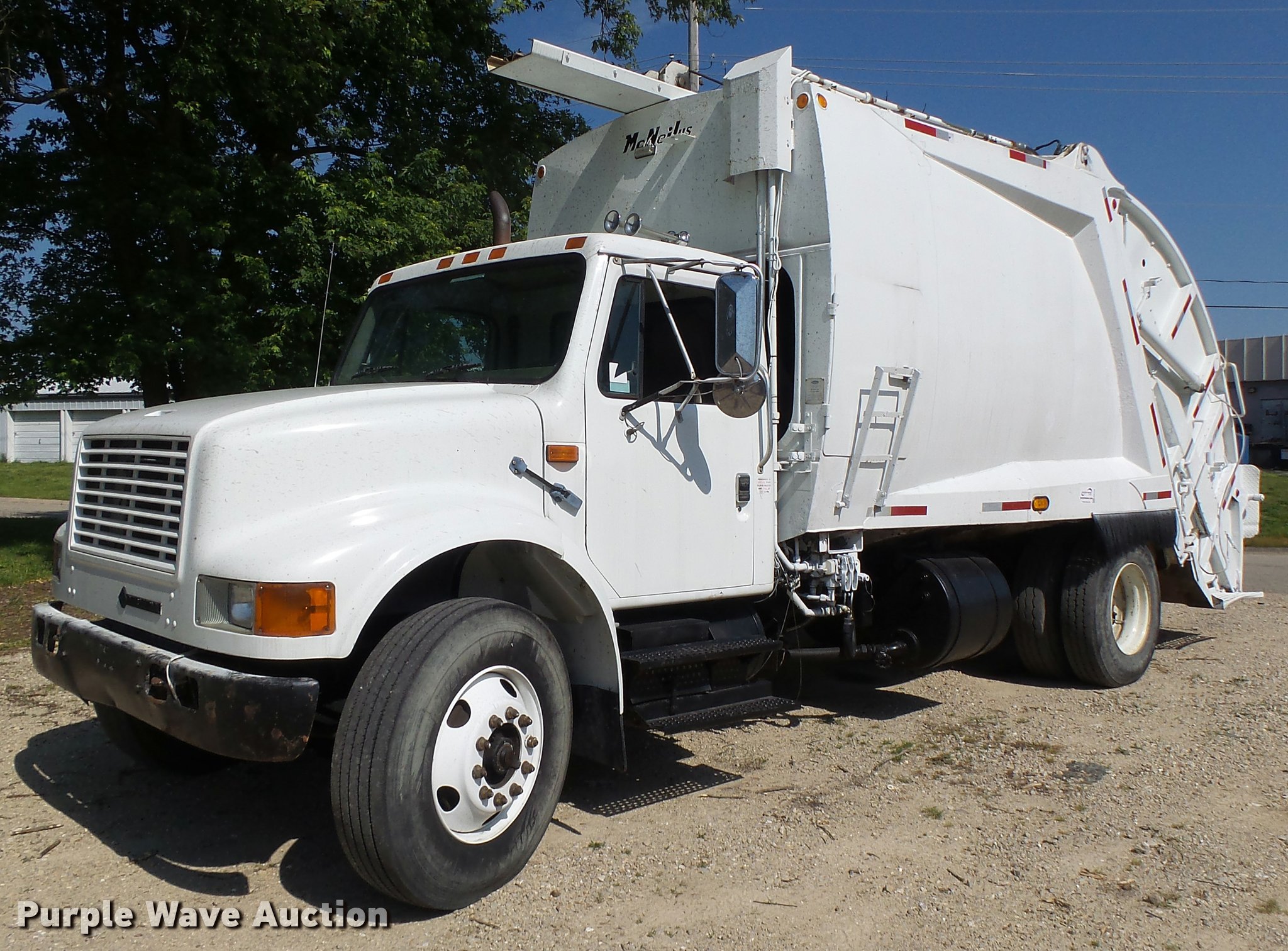 Purple Wave is selling a used Refuse Truck in Missouri. This item is a 1999 International 4900 refuse truck with the following: 320,459 miles on odometer, 7,388 hours on meter, International DT466 7.6L L6 turbo diesel engine, Automatic transmission, Single axle, AC and heat, Cruise, AM/FM/CD, Heated mirrors, Air suspension seat, Front tow hooks, PTO, McNeilus 1710 refuse bed, 17 cu.yd. capacity, Serial 31JIX17107477, Single exhaust stack, Single fuel tank, Spring suspension, Air brakes, 11R22.5 tires