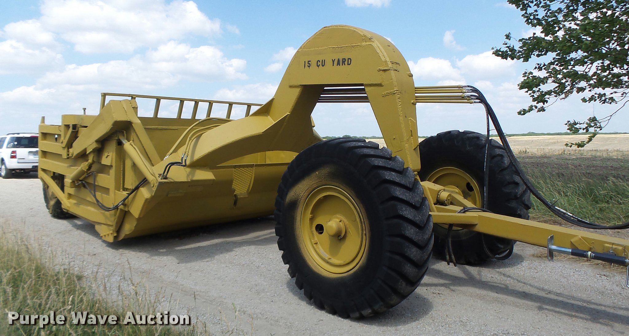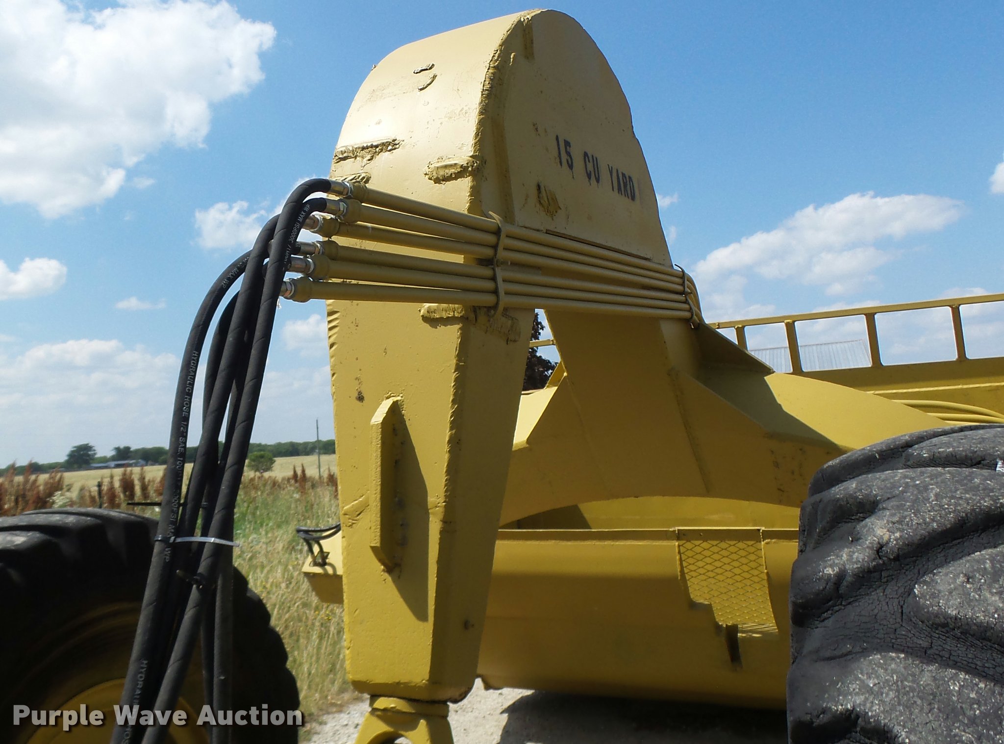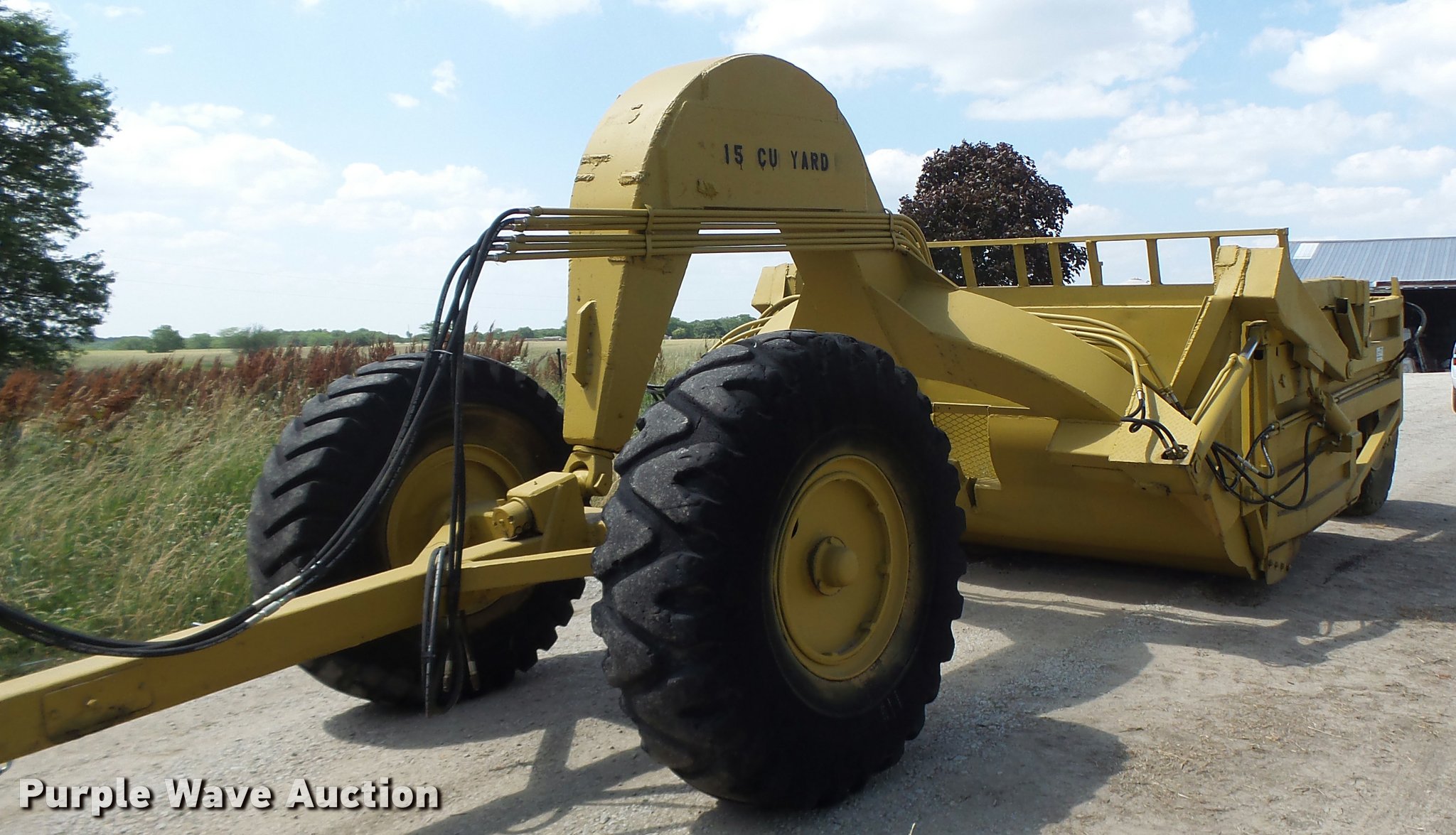 Purple Wave is selling a used Pull Type Scraper in Missouri. This item is a Letourneau scraper with the following: 10'W cutting edge, 15 cu.yd. capacity, Rear push block, Pin hitch, 18.00-24 tires