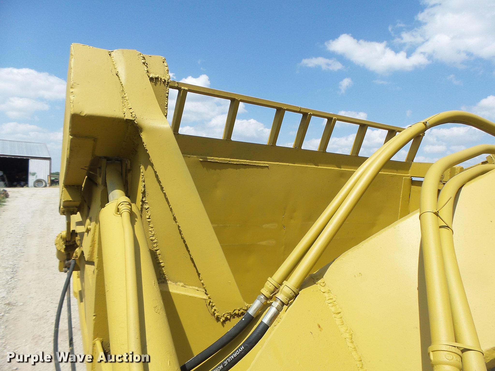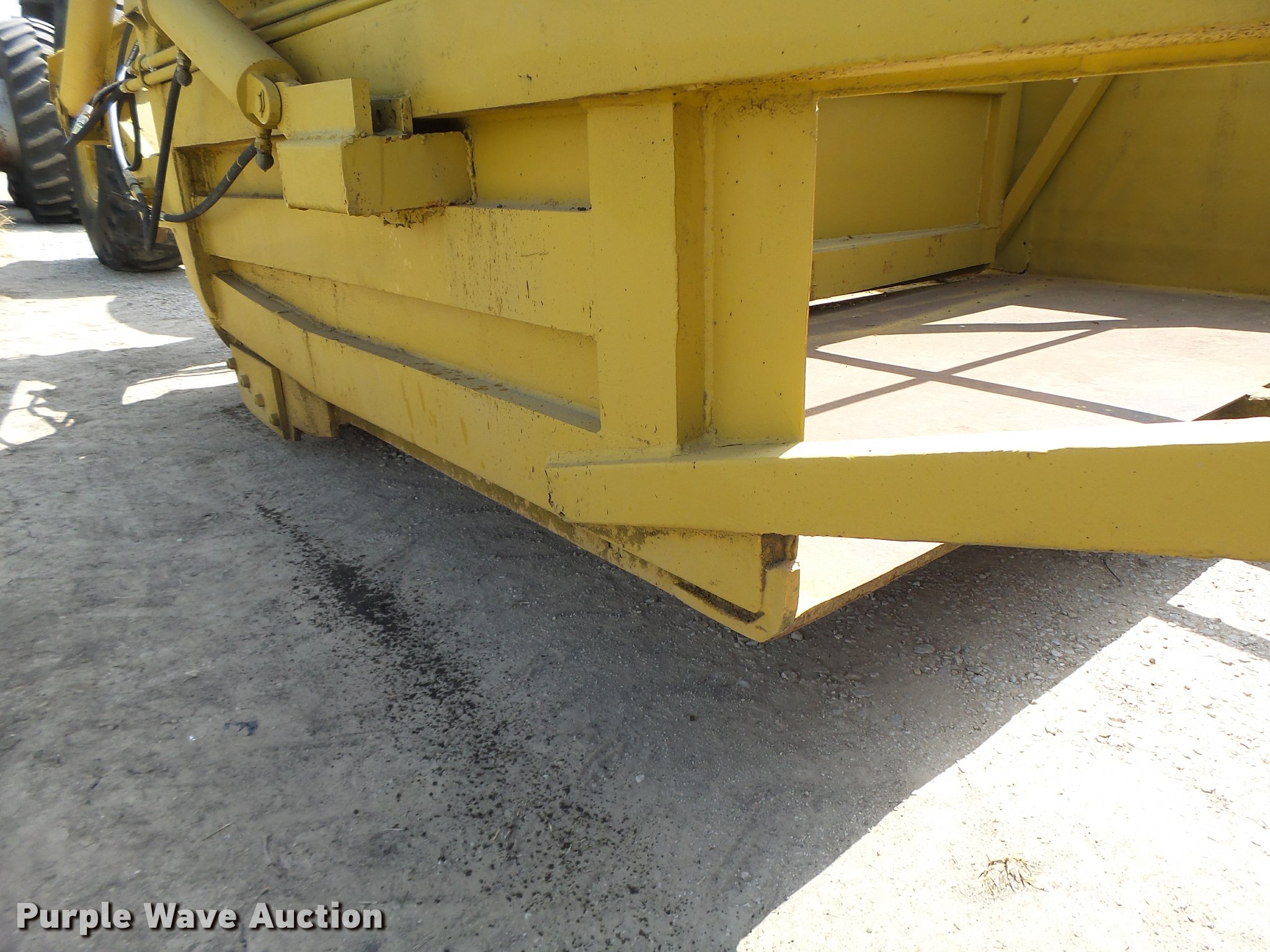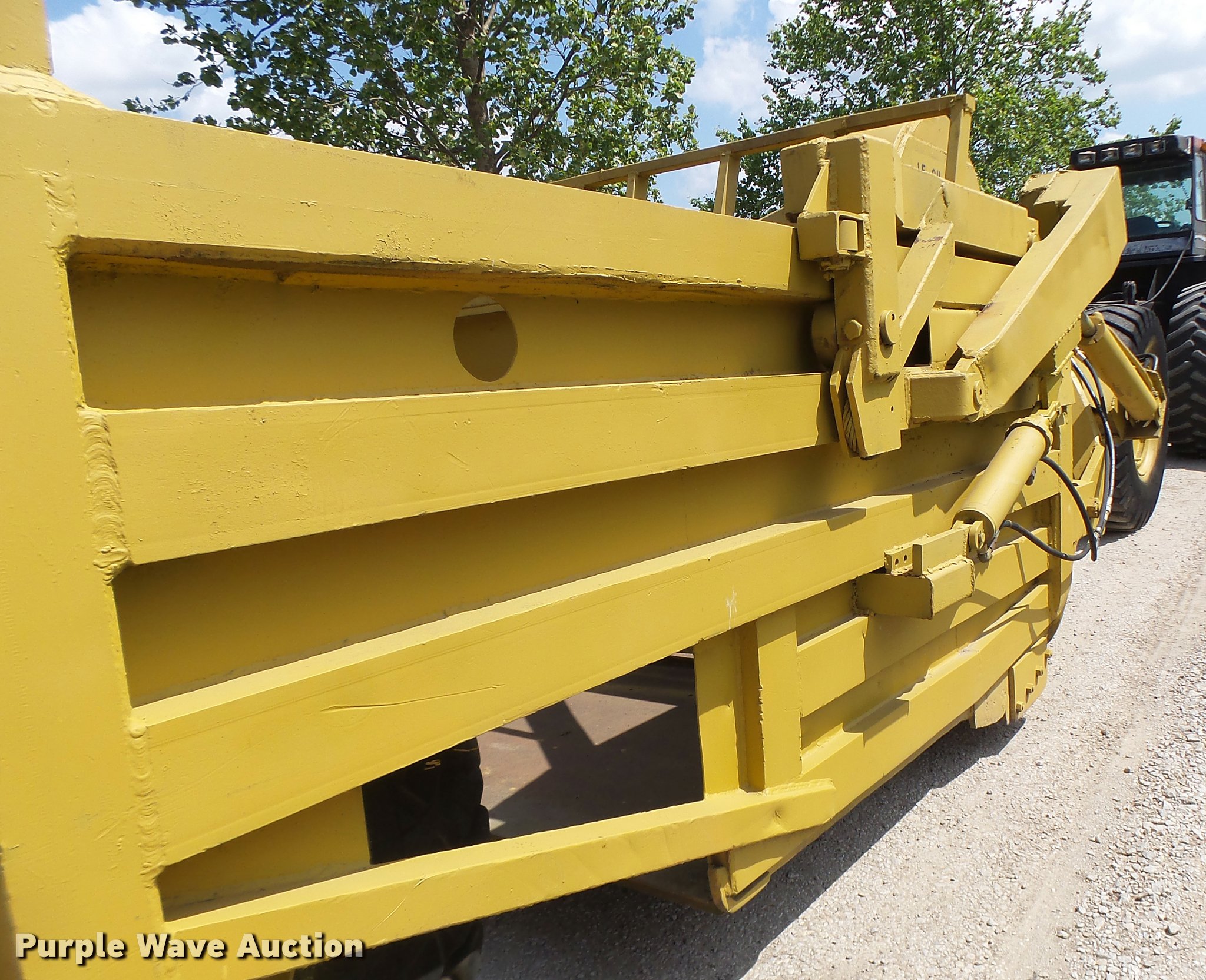 Letourneau scraper. 10'W cutting edge, 15 cu.yd. capacity, Rear push block, Pin hitch, 18.00-24 tires. 3926 Little Woods Dr. Trenton, MO 64683