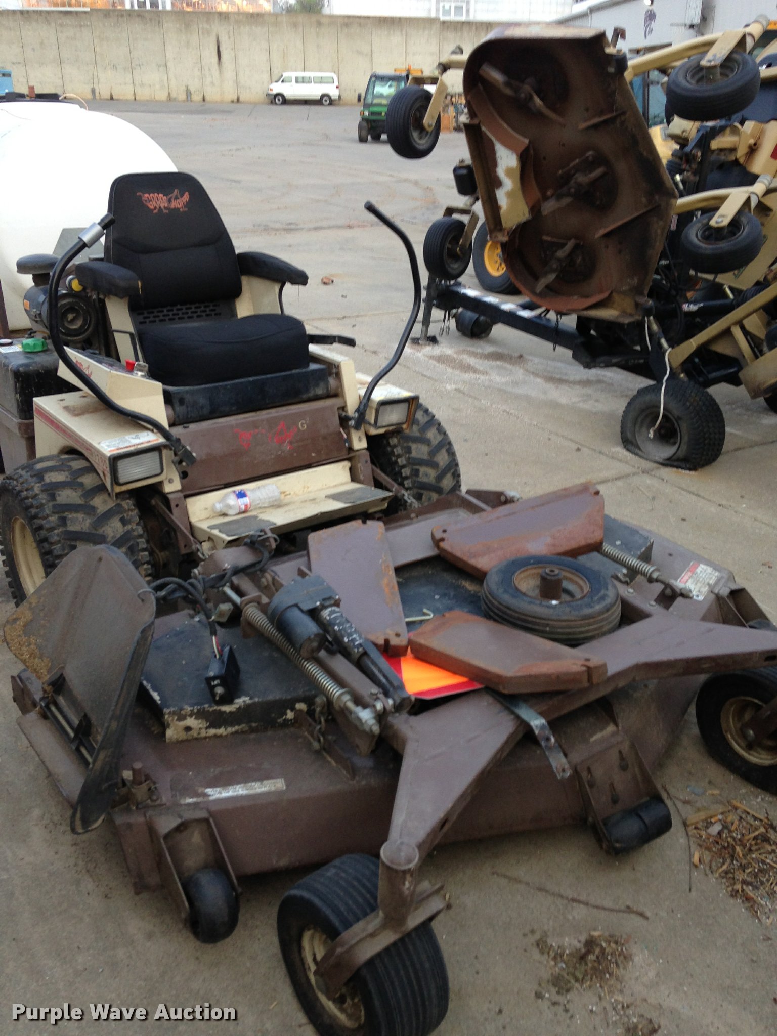 Purple Wave is selling a used Commercial Turf Mower in Kansas. This item is a Grasshopper 928D lawn mower with the following: 72" cut, Cab enclosure, Blade, Shielded sprayer, 12' spray width, 30 gallon capacity, Fits 721 or 928D models, Additional parts