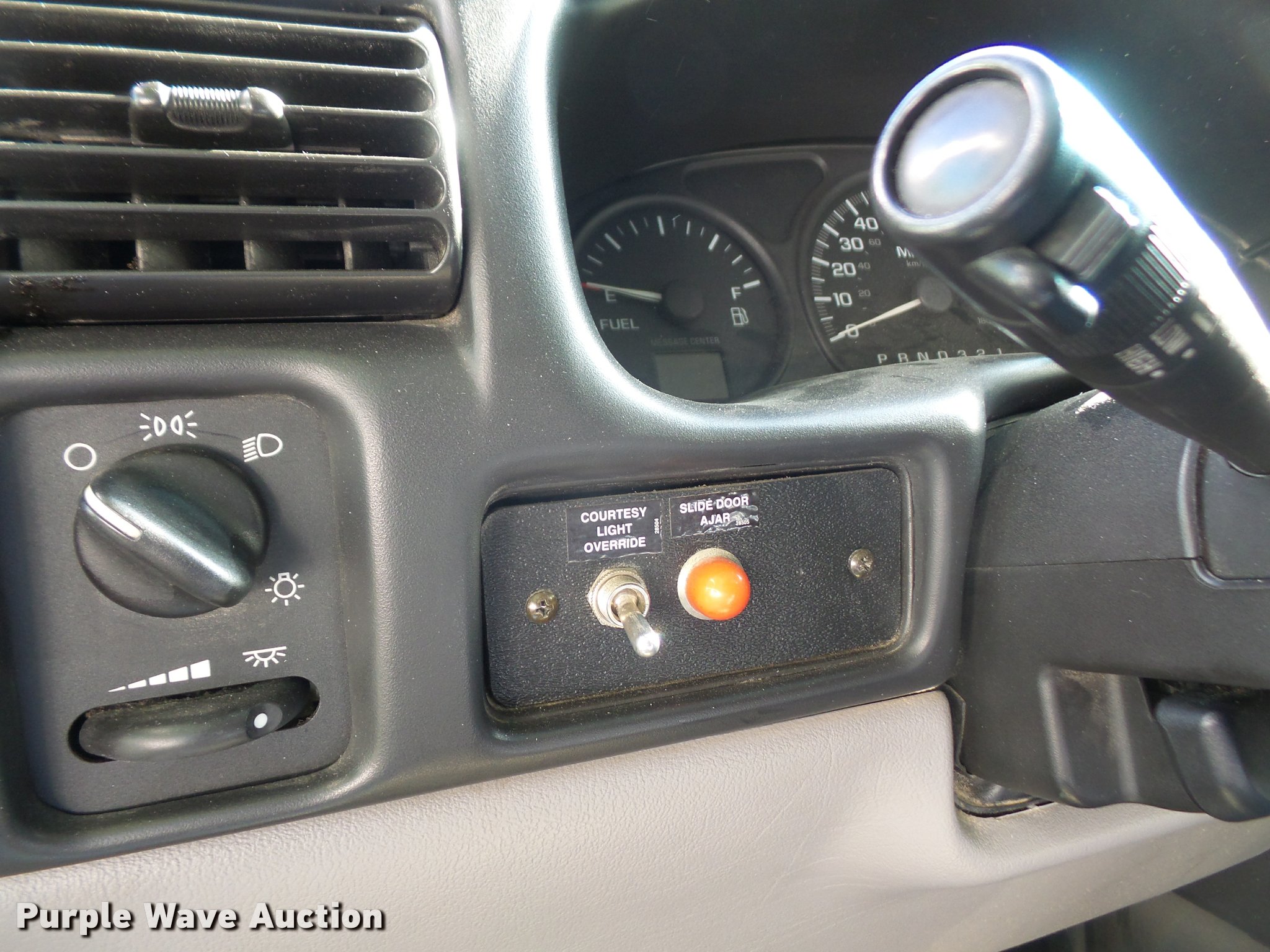 Purple Wave is selling a used Passenger Vehicle in Kansas. This item is a 2003 Chevrolet Venture van with the following: 165,618 miles on odometer, 3.4L V6 OHV 12V gas engine, Automatic transmission, AC and heat, AC issues, needs recharged, Tilt steering wheel, Cruise, AM/FM/CD, Power windows, locks, and mirrors, Cloth interior, Wheel chair ramp, 215/70R15 tires, Cracked windshield, Drivers window does not roll up, Transmission linkage comes loose