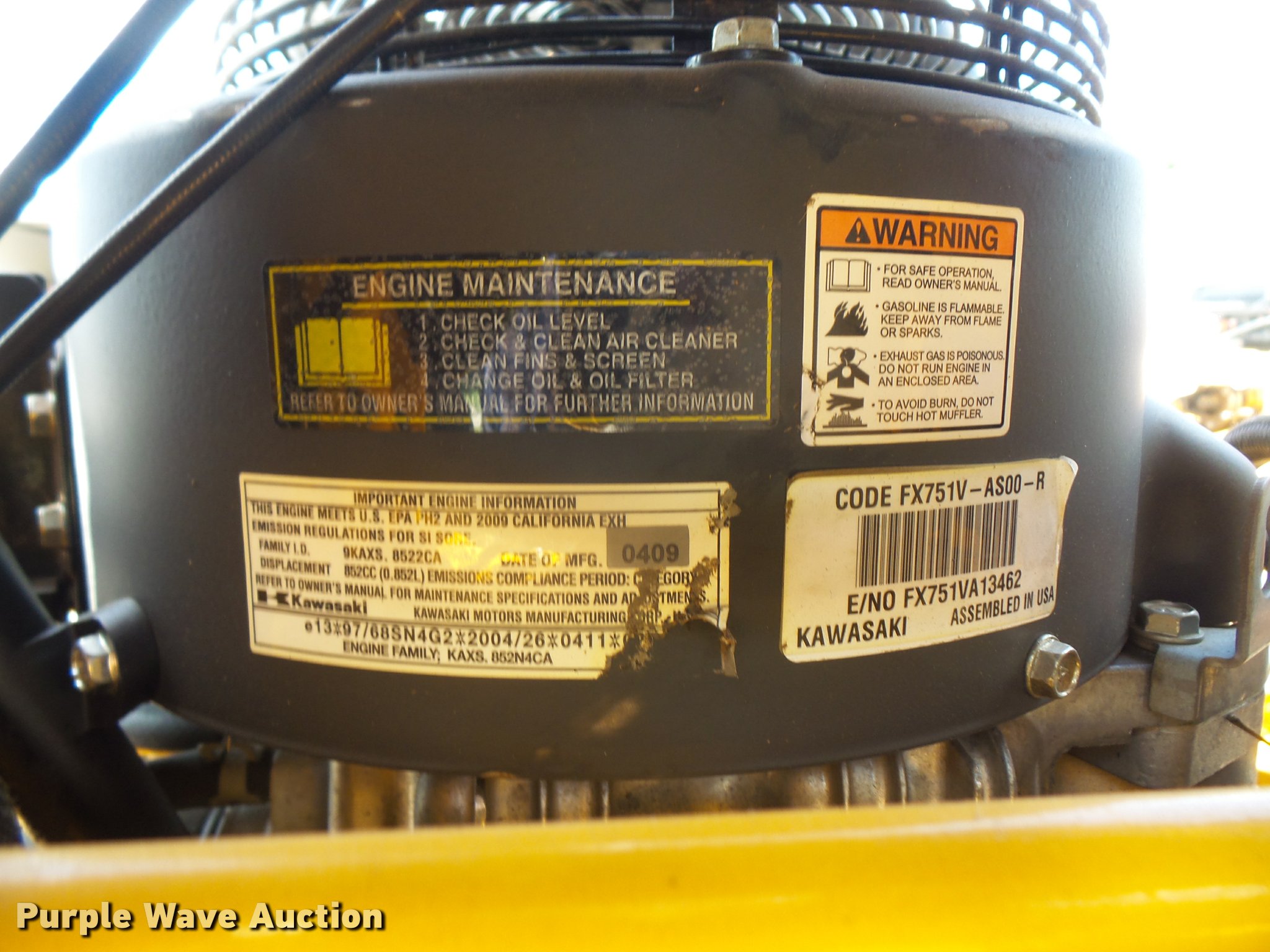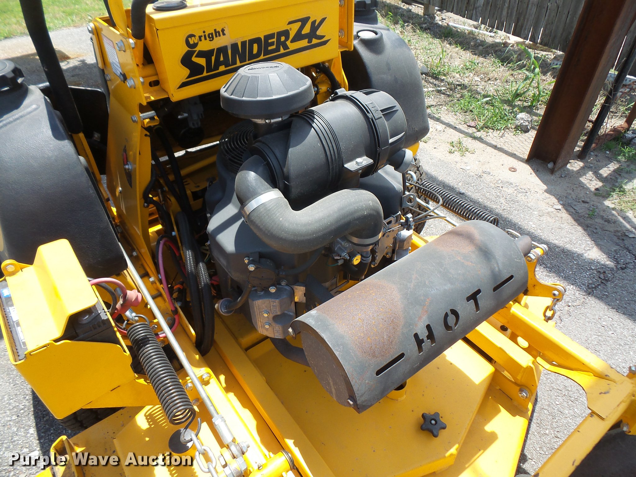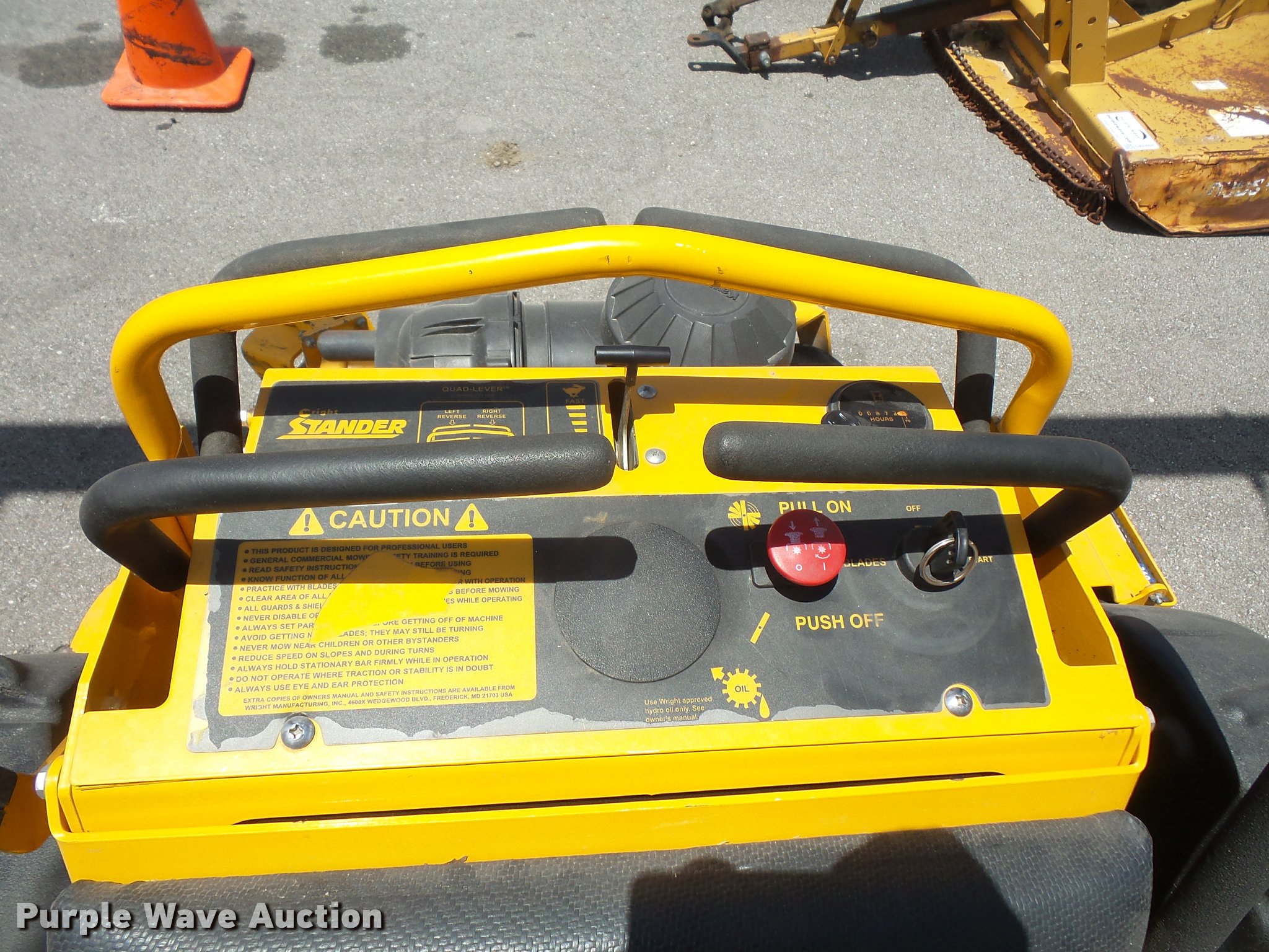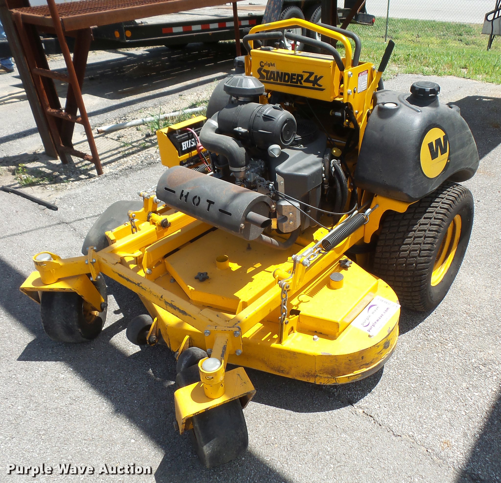 Purple Wave is selling a used Lawn Mower in Kansas. This item is a 2010 Wright Stander W5ZK52 lawn mower with the following: 874 hours on meter, 52" cut, Kawasaki 27 HP gas engine, 13x6.50 front tires, 23x9.50-12 rear tires, Left rear wheel motor needs replaced, Battery needs replaced, Bearing on deck needs to be replaced, Serial 51686