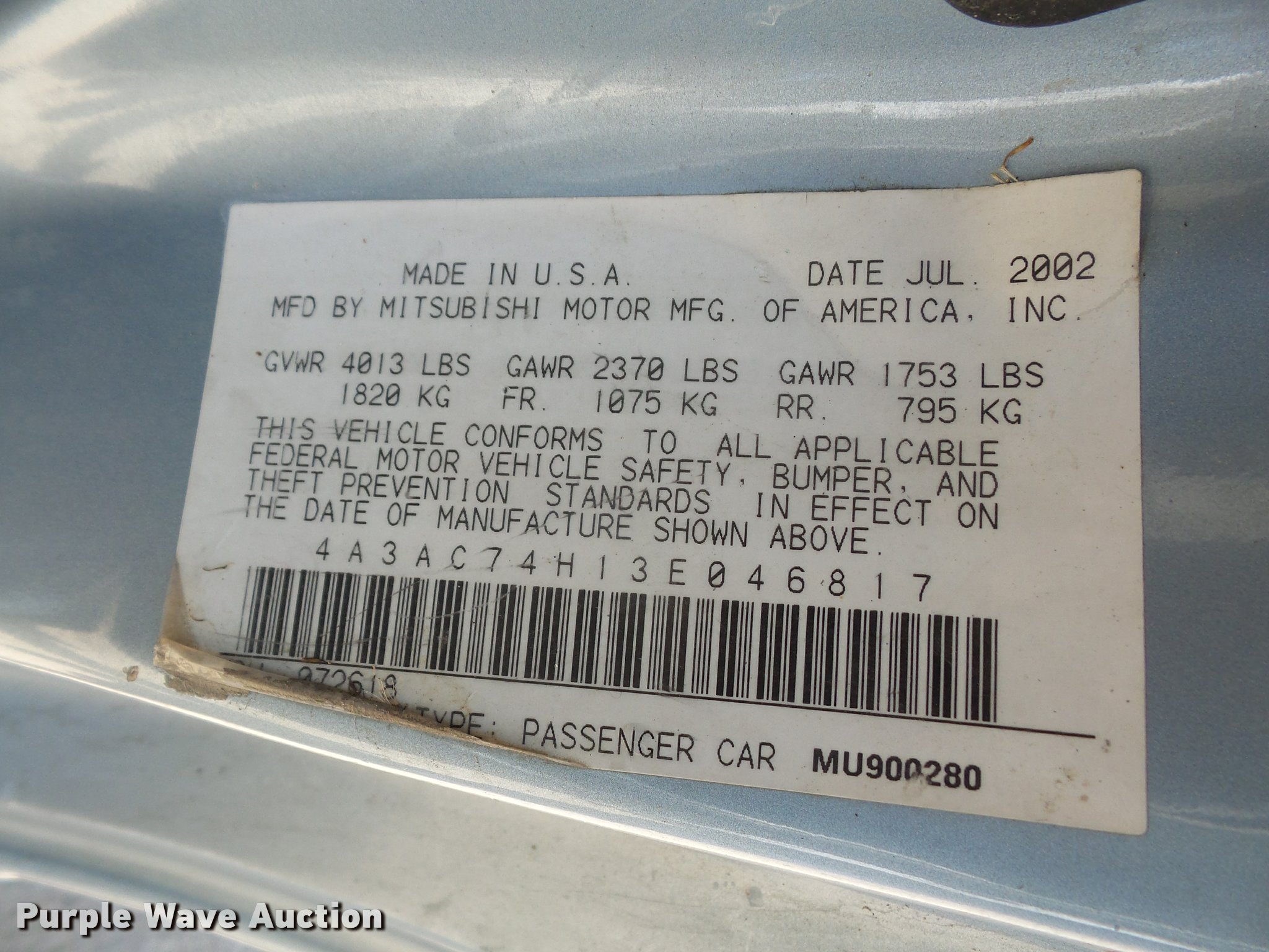 Purple Wave is selling a used Passenger Vehicle in Kansas. This item is a 2003 Mitsubishi Eclipse with the following: 160,486 miles on odometer, 3.0L V6 DOHC 24V gas engine, Five speed manual transmission, AC and heat, Tilt, Cruise, AM/FM/CD, Power windows, locks, mirrors, and seat, Leather interior, Power sunroof, 215/50R17 tires