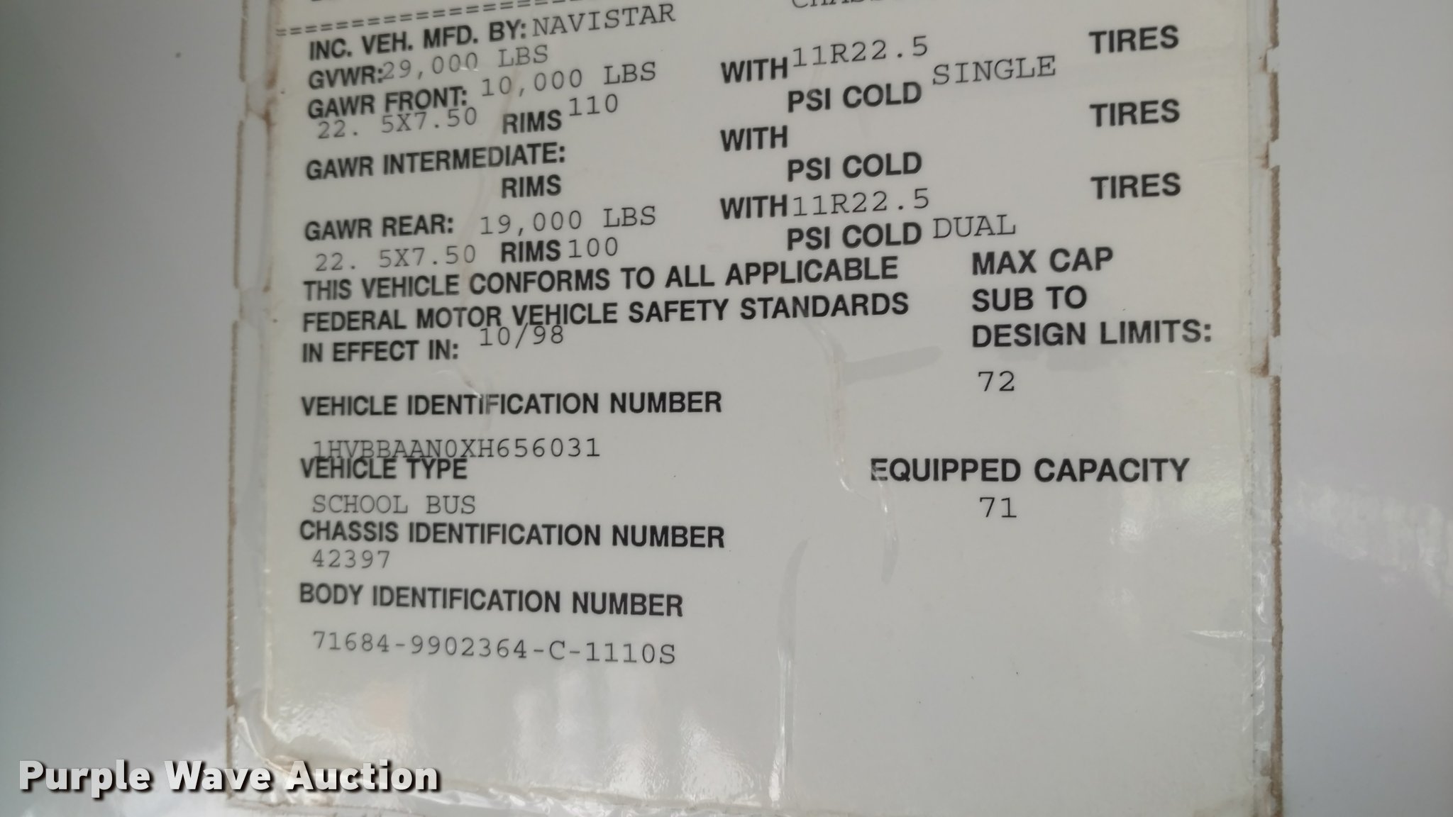 1999 International 3800 school bus | SOLD! July 11 Government Auction