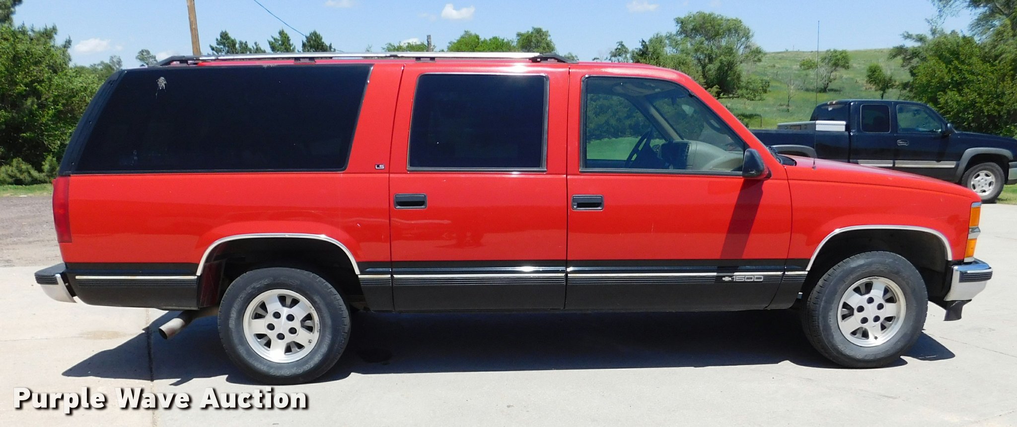 Purple Wave is selling a used Passenger Vehicle in Kansas. This item is a 1995 Chevrolet Suburban C1500 SUV with the following: 206,382 miles on odometer, 5.7L V8 OHV 16V gas engine, Automatic transmission, AC and heat, Tilt, Cruise, AM/FM/cassette, Power windows, locks, mirrors, and seats, Cloth interior, 235/75R15 tires