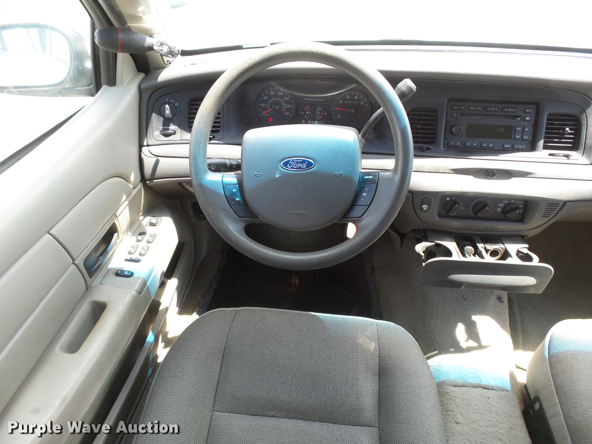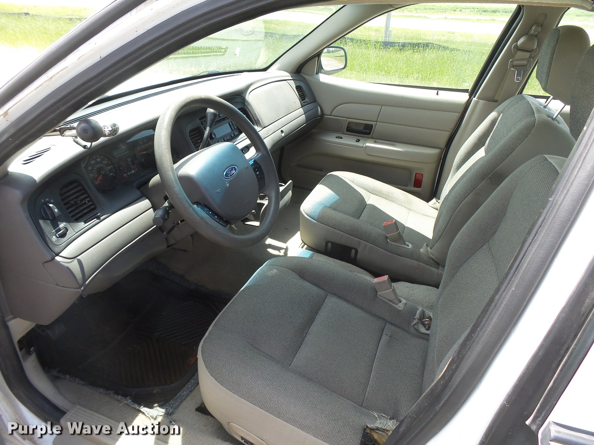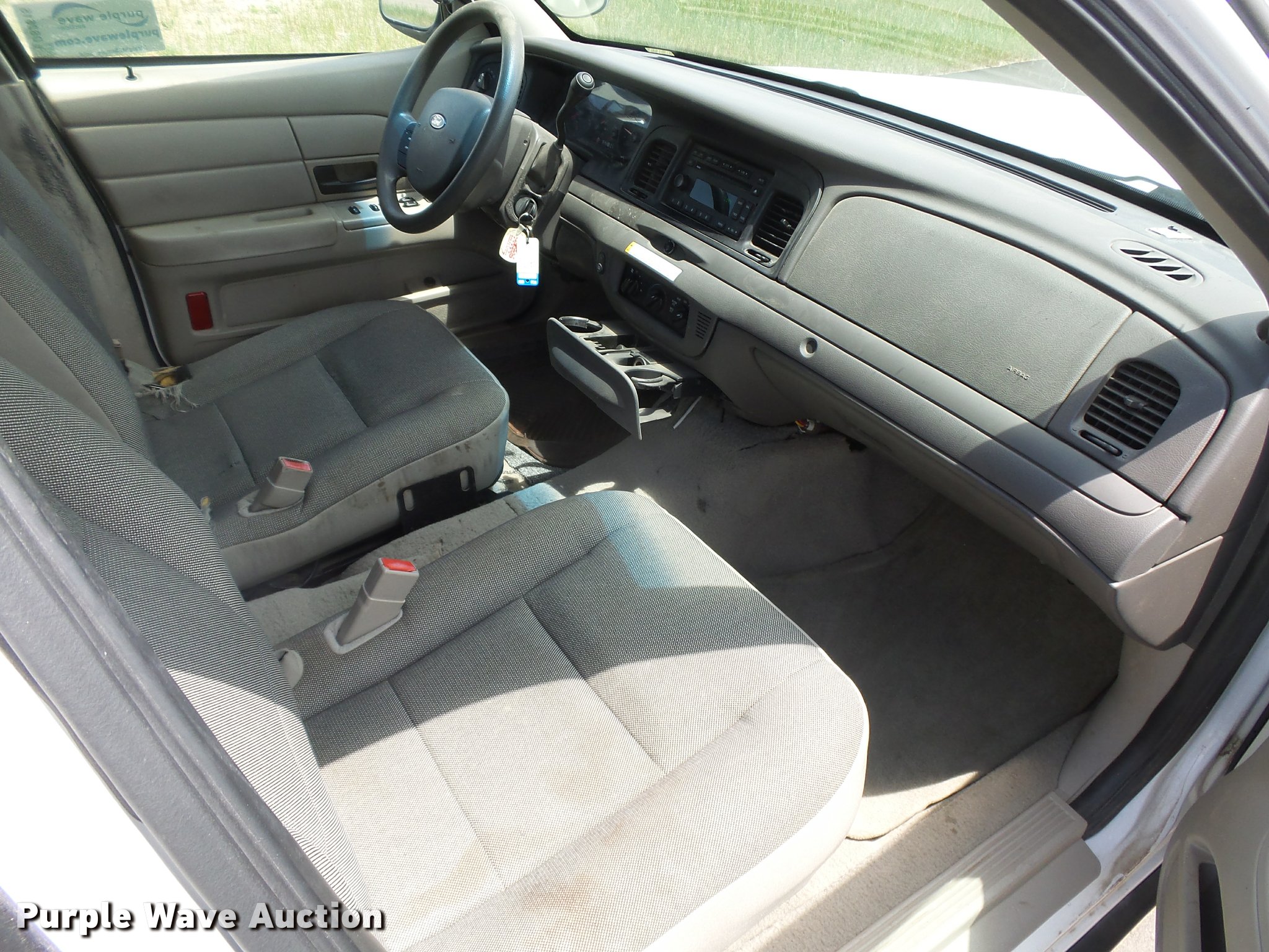 Purple Wave is selling a used Passenger Vehicle in Kansas. This item is a 2007 Ford Crown Victoria Police Interceptor with the following: 115,998 miles on odometer, 4.6L V8 SOHC 16V gas engine, Automatic transmission, AC and heat, Tilt, Cruise, AM/FM/CD, Power windows, locks, and mirrors, Cloth interior, Spotlight, P235/55R17 tires