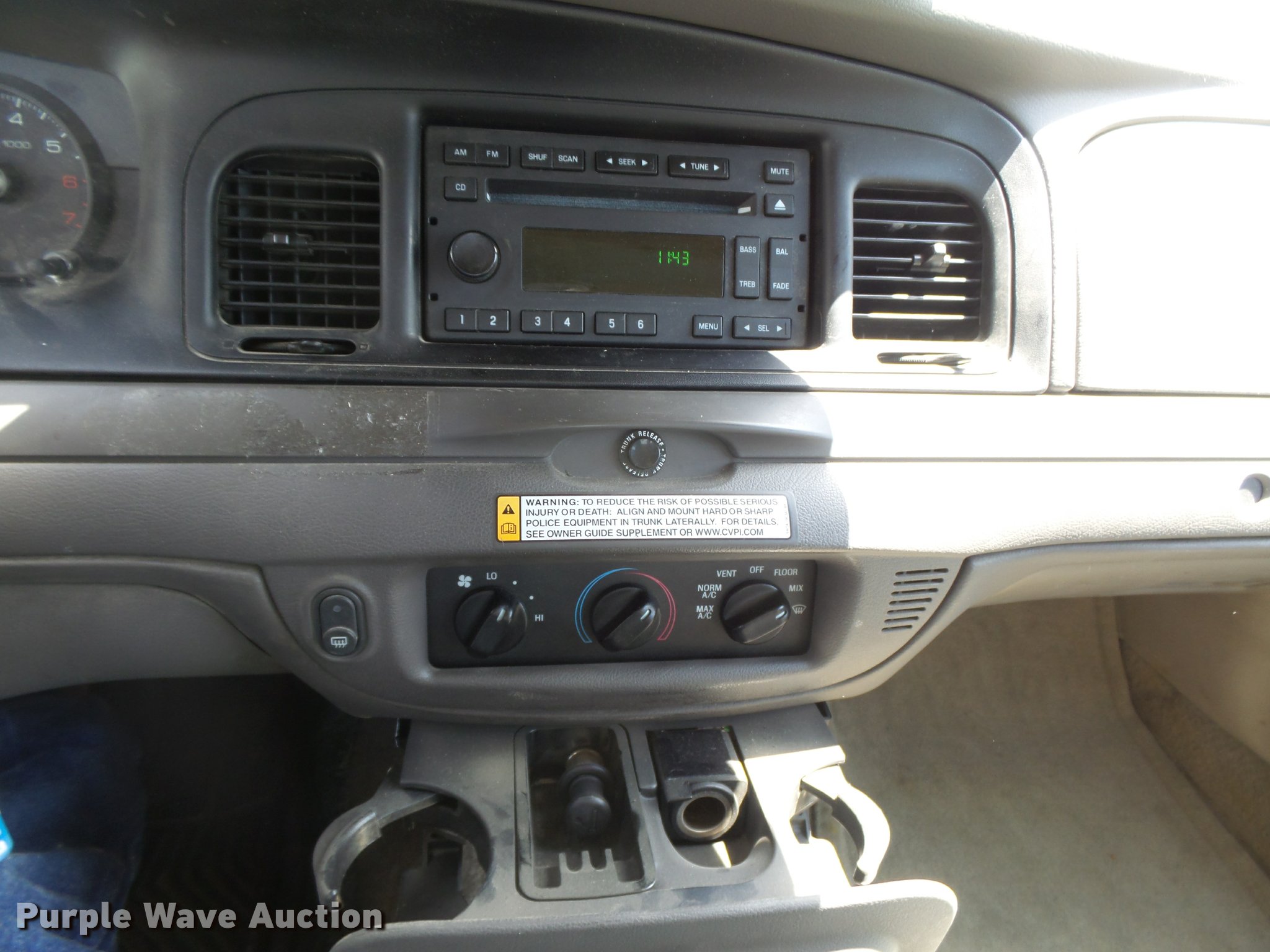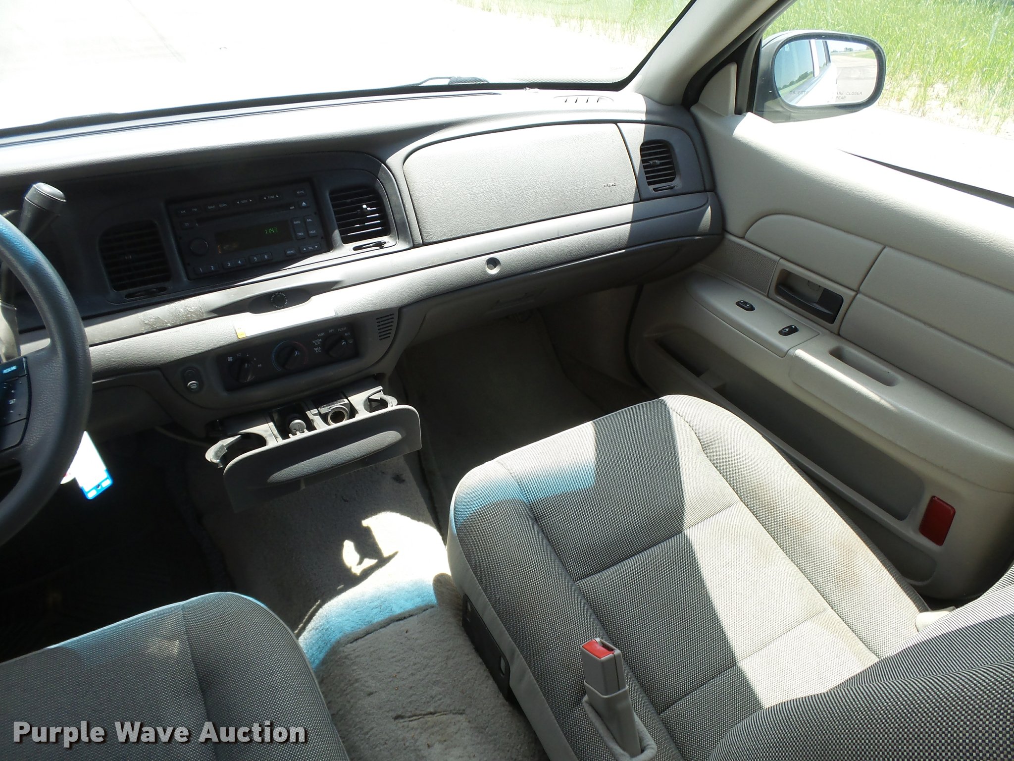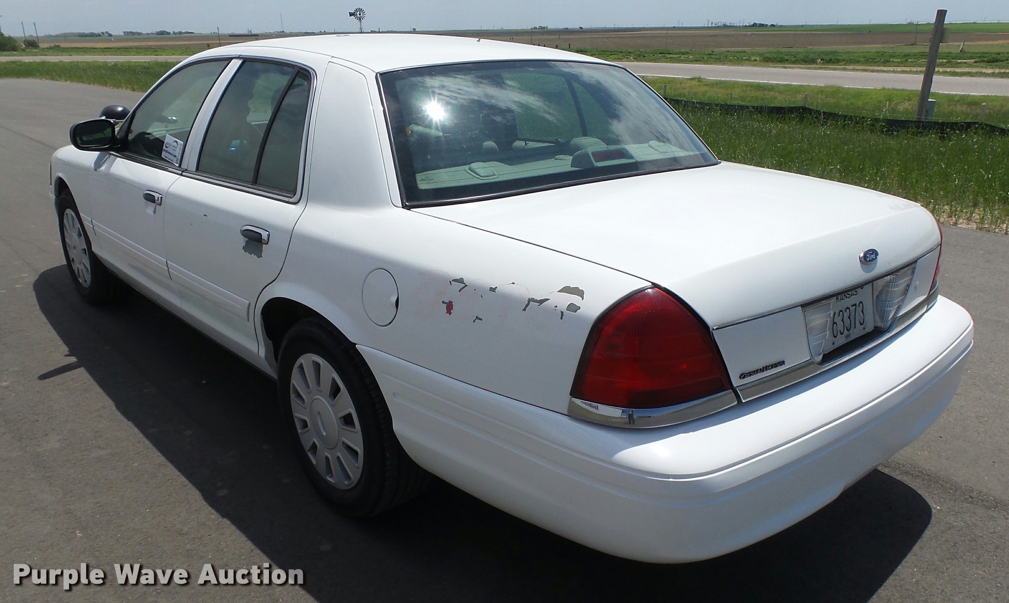 Purple Wave is selling a used Passenger Vehicle in Kansas. This item is a 2007 Ford Crown Victoria Police Interceptor with the following: 115,998 miles on odometer, 4.6L V8 SOHC 16V gas engine, Automatic transmission, AC and heat, Tilt, Cruise, AM/FM/CD, Power windows, locks, and mirrors, Cloth interior, Spotlight, P235/55R17 tires