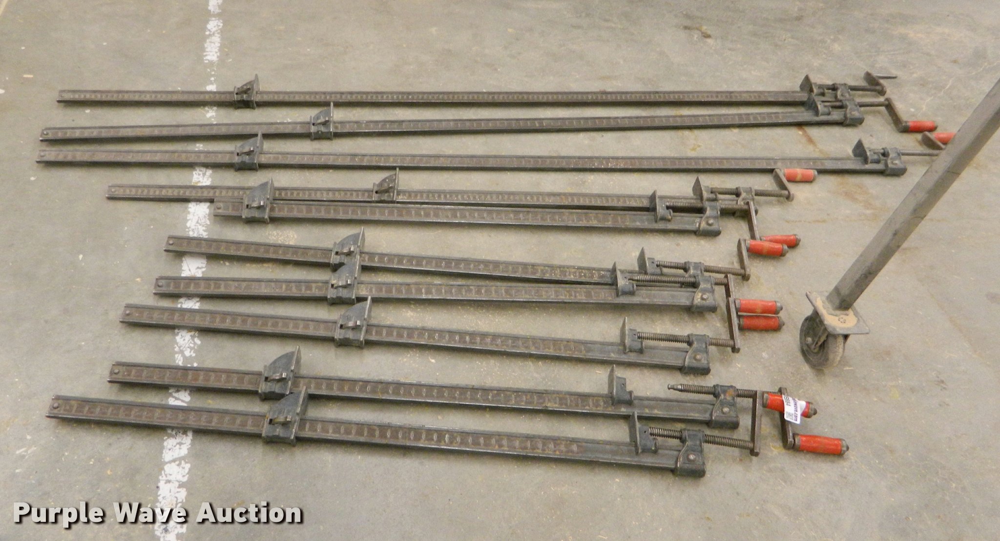 Purple Wave is selling a used Tools in Kansas. This item is a Tools with the following: (6) Hargraves 3' cabinet clamps, Hargraves 4' cabinet clamp, (3) Hargraves 6' cabinet clamps, Chalkboard, Wheels