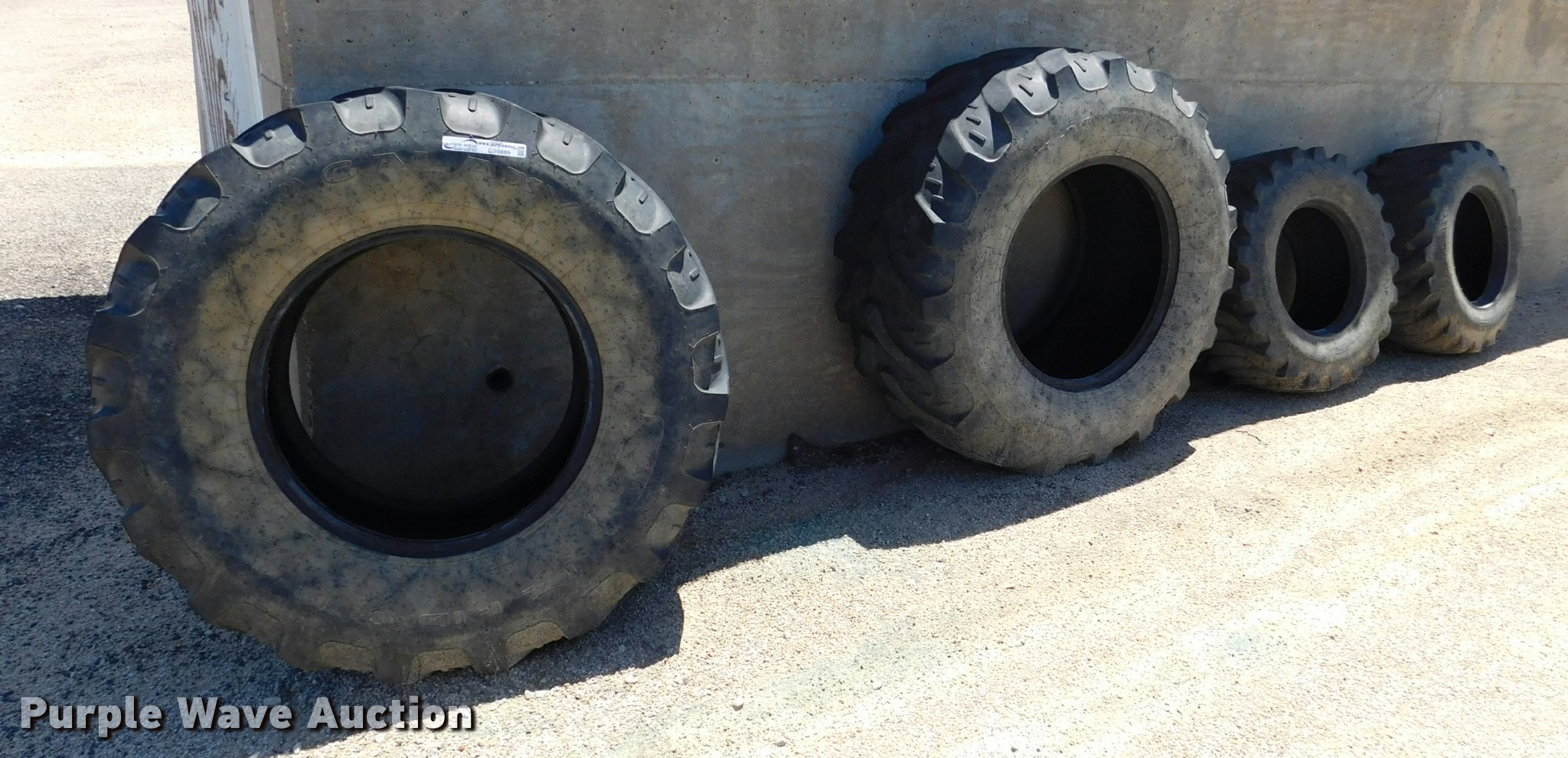 Purple Wave is selling a used Industrial Tires or Tracks in Kansas. This item is a (4) tires with the following: (2) 19.5L-24, (2) 14-17.5