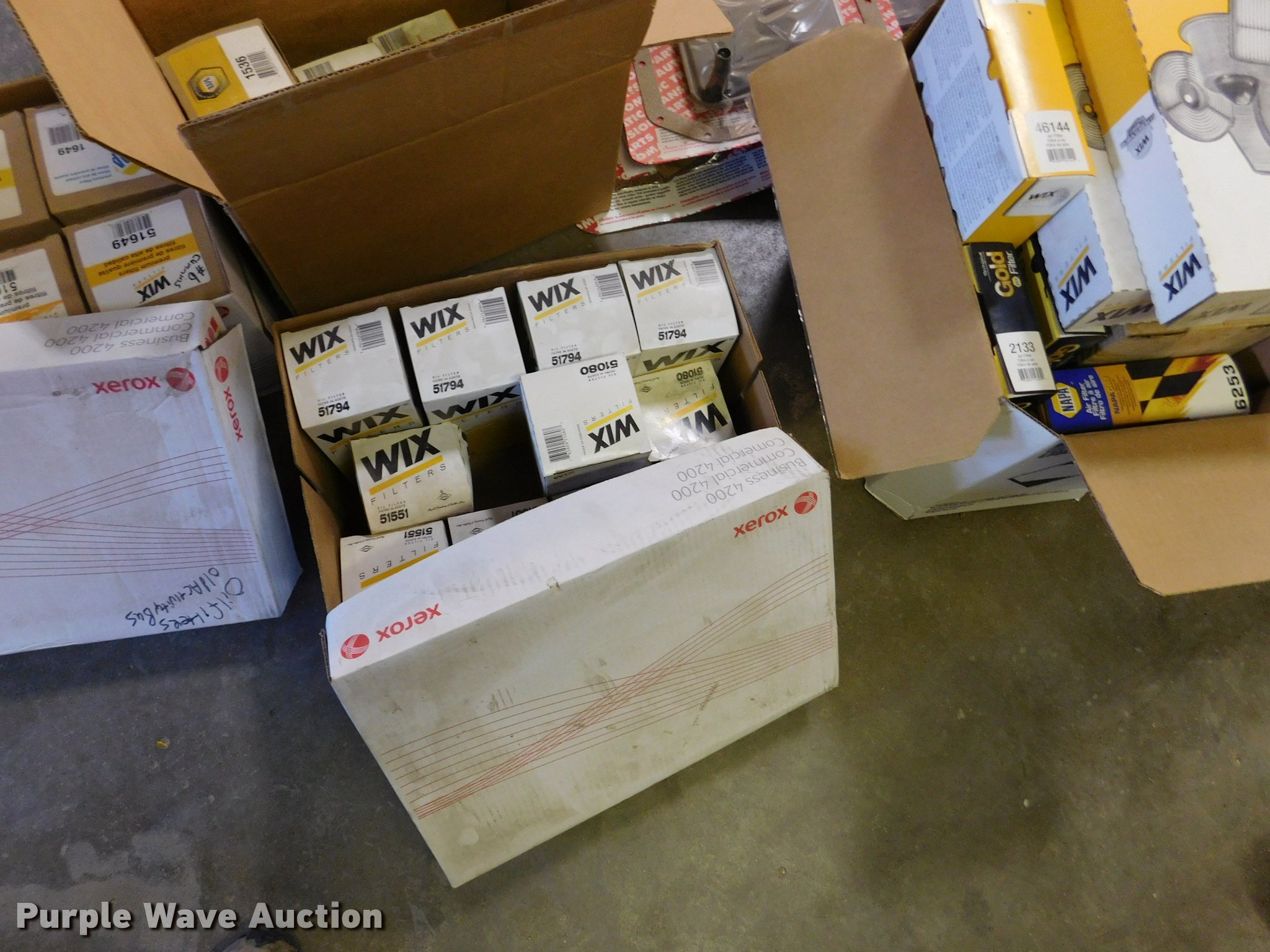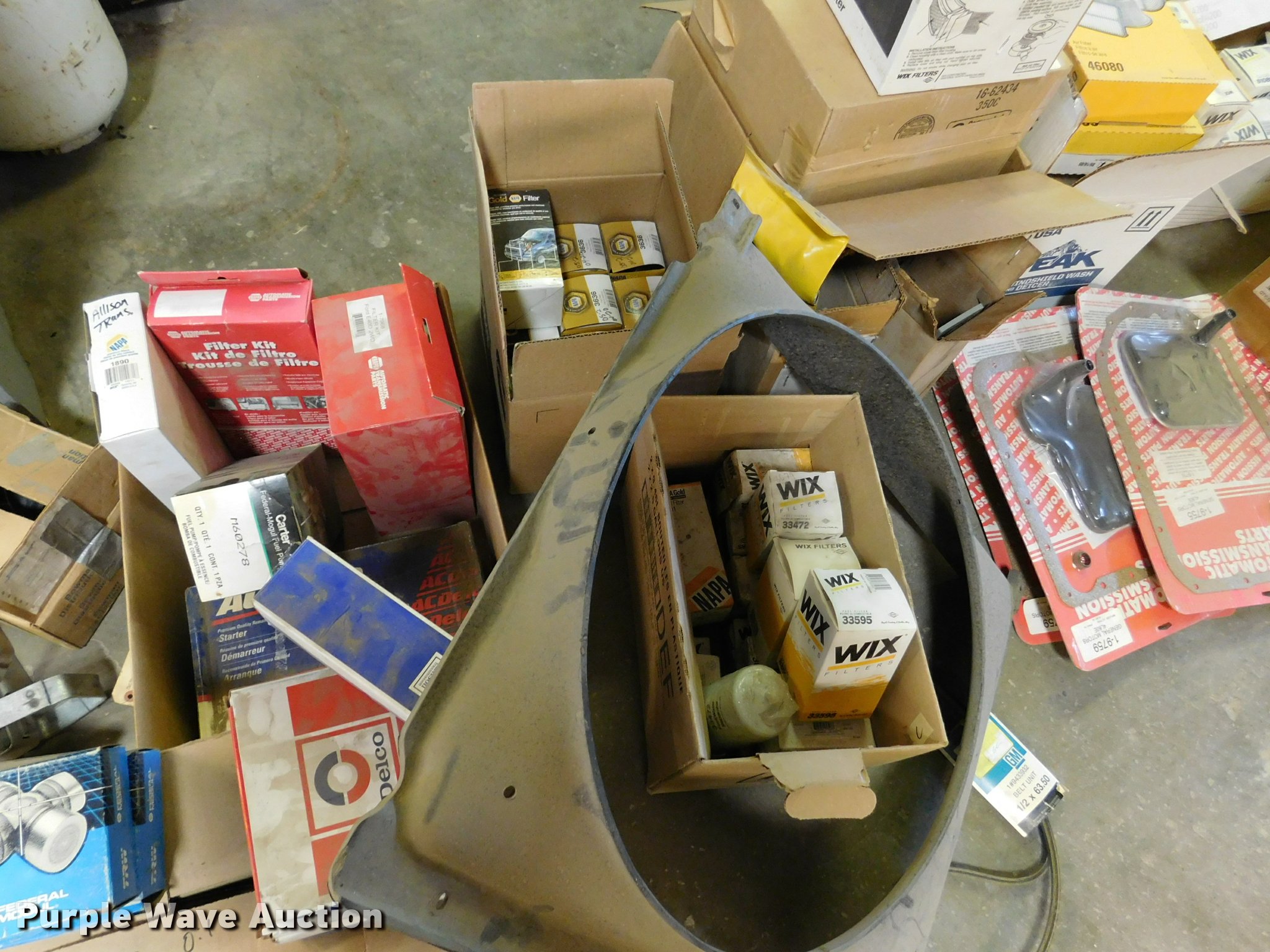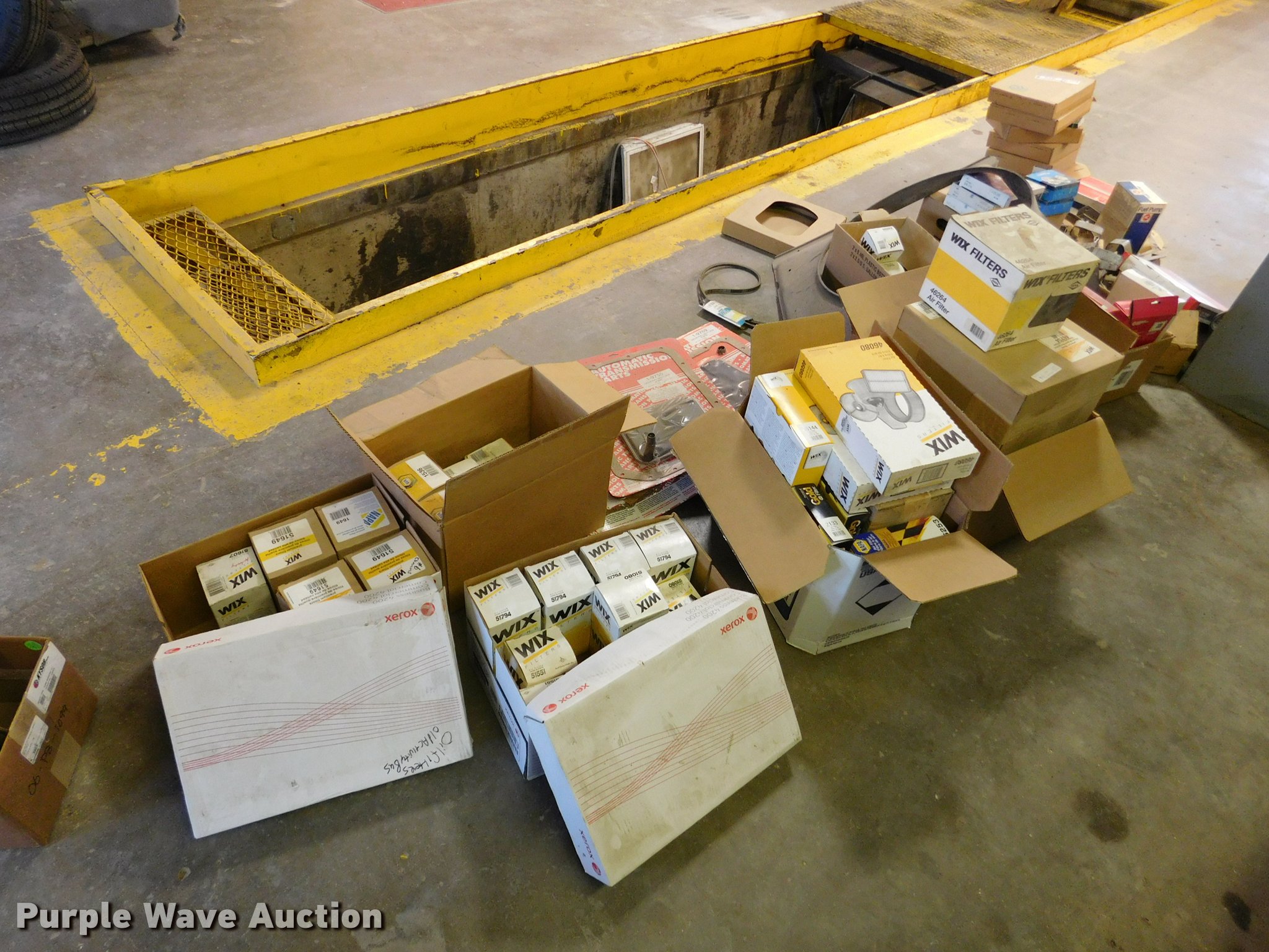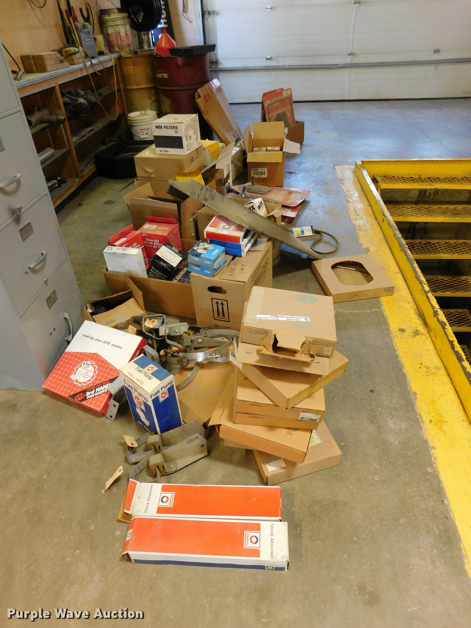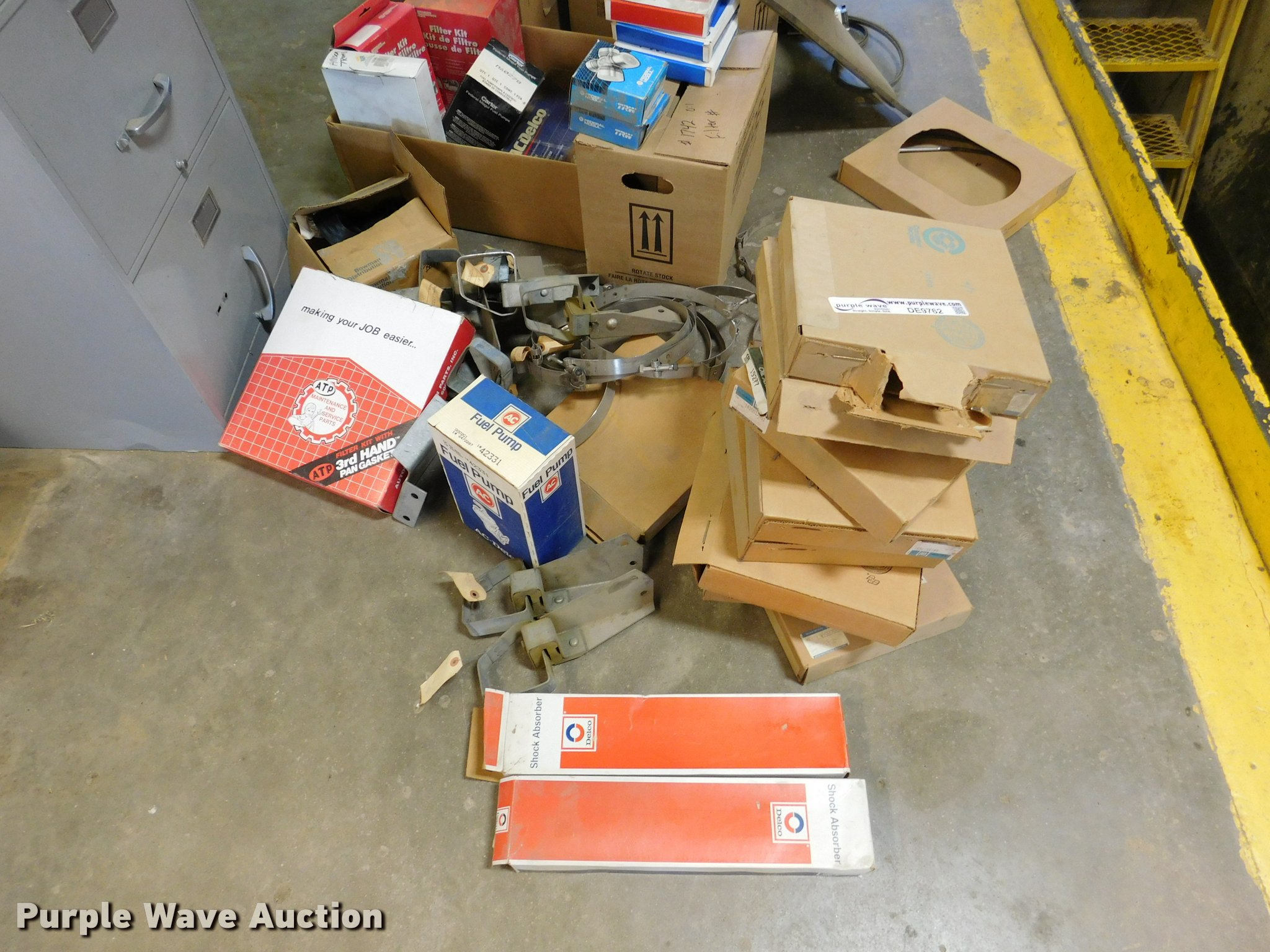 Purple Wave is selling a used Automotive Parts or Acces. in Kansas. This item is a Automotive parts with the following: Filters, Gaskets, Shocks, Throttle cables, Brackets, U-joints, Starter, File cabinet not included