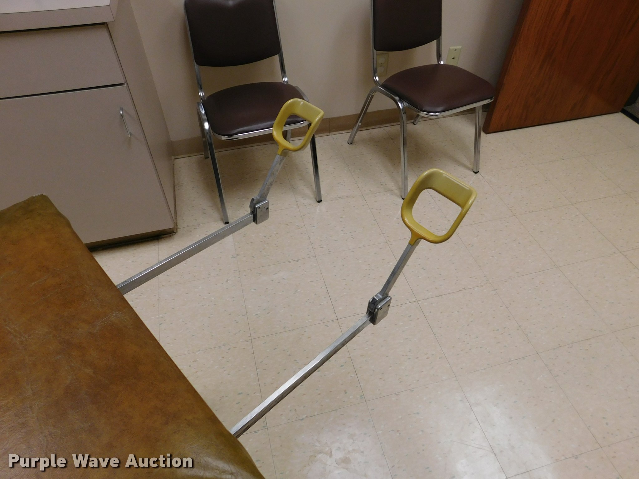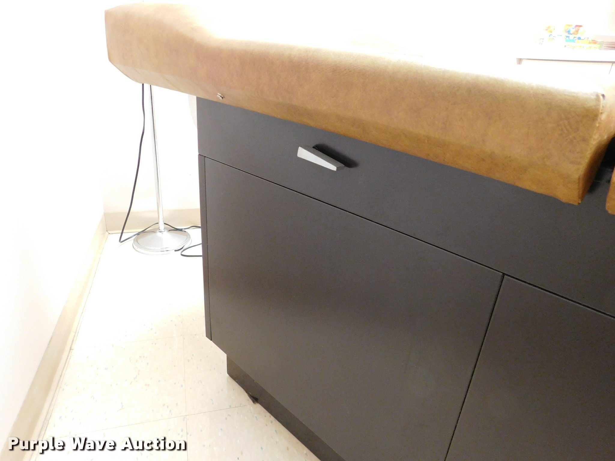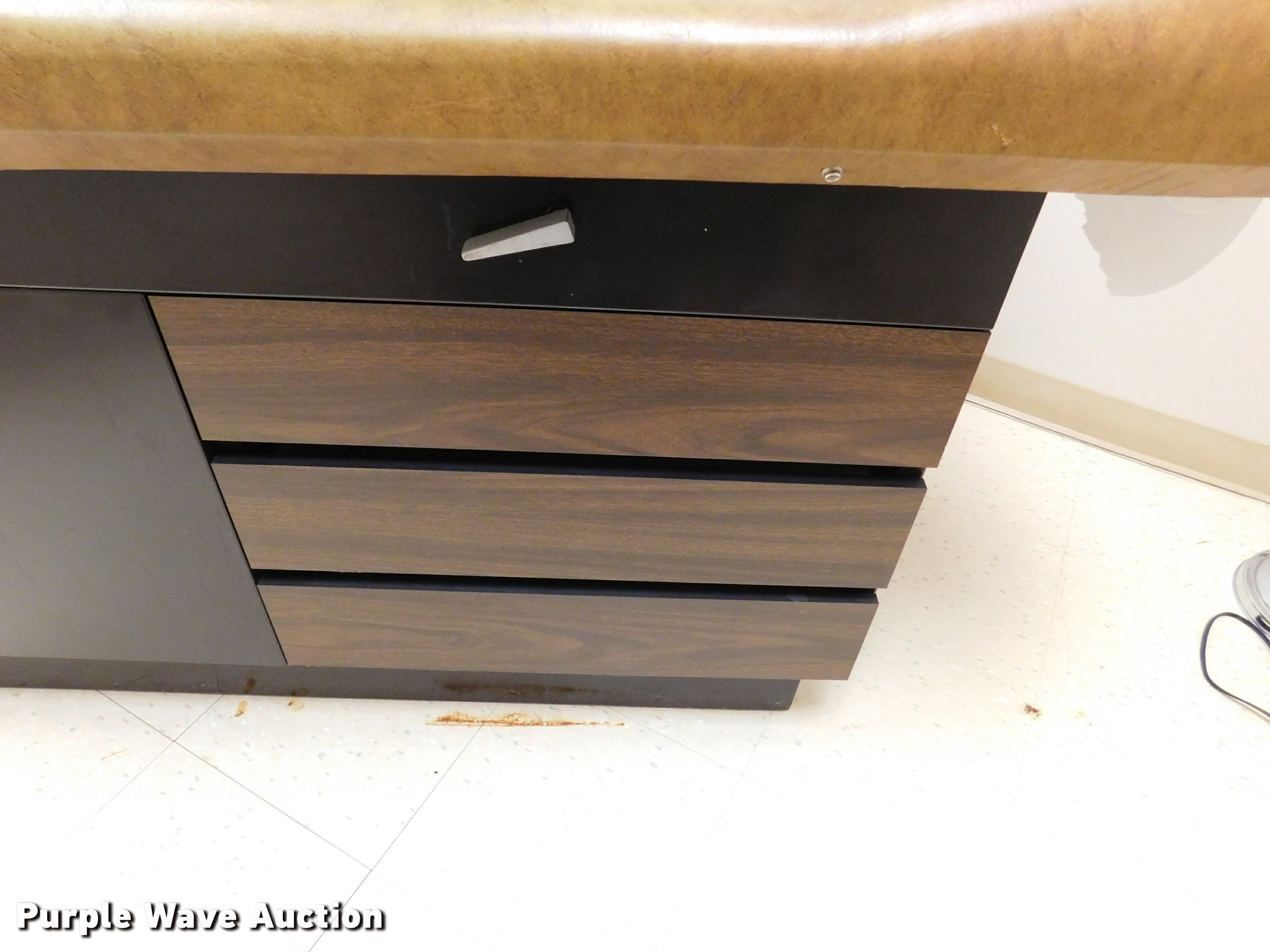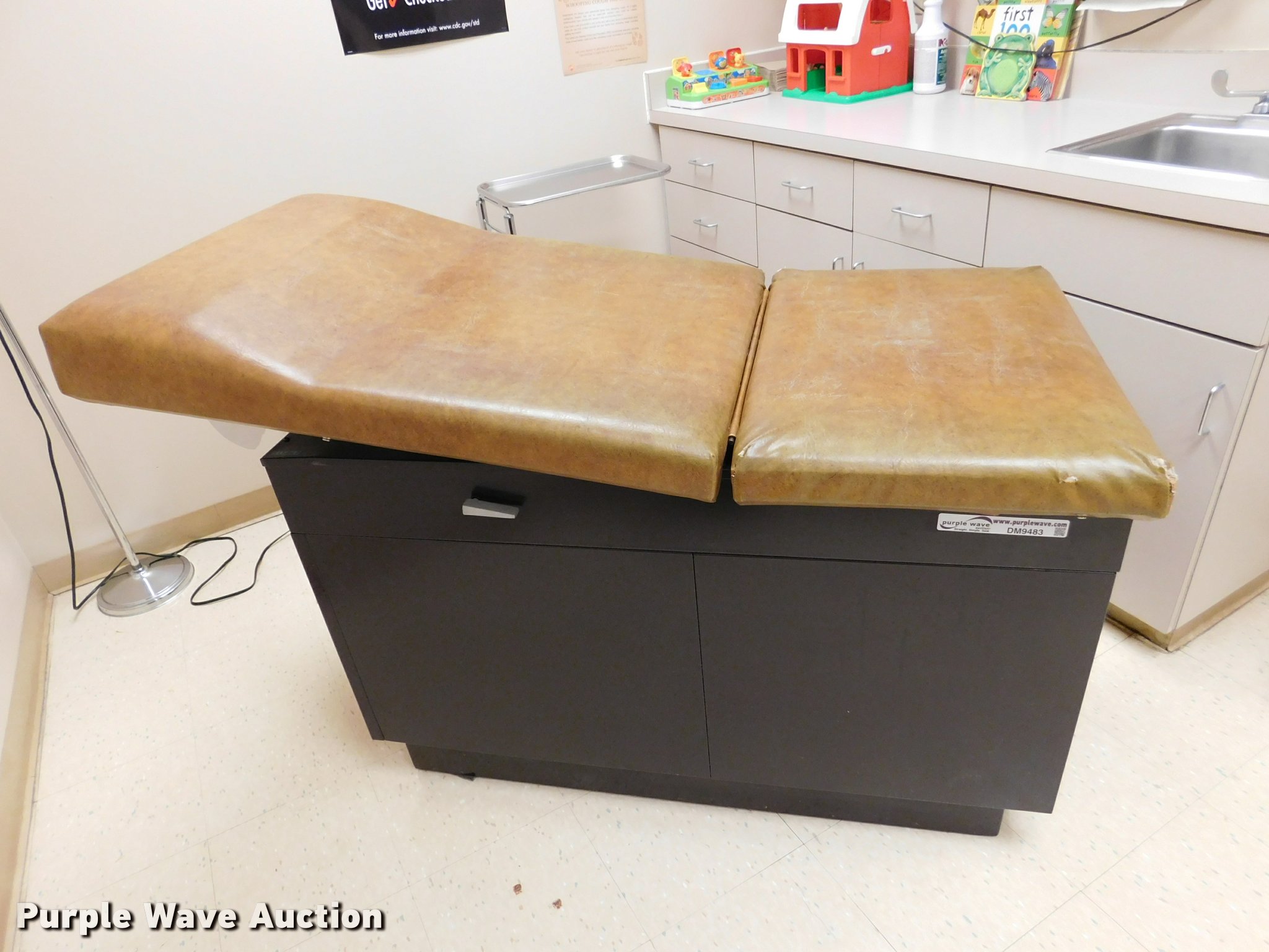 Purple Wave is selling a used Medical Equip. in Kansas. This item is a The IE Medical Group 104 vinyl exam table with the following: (2) front drawers, Foot rest, Leg extension, (3) side drawers, Adjustable head, Solid leg, (2) stirrups, Unknown operating condition