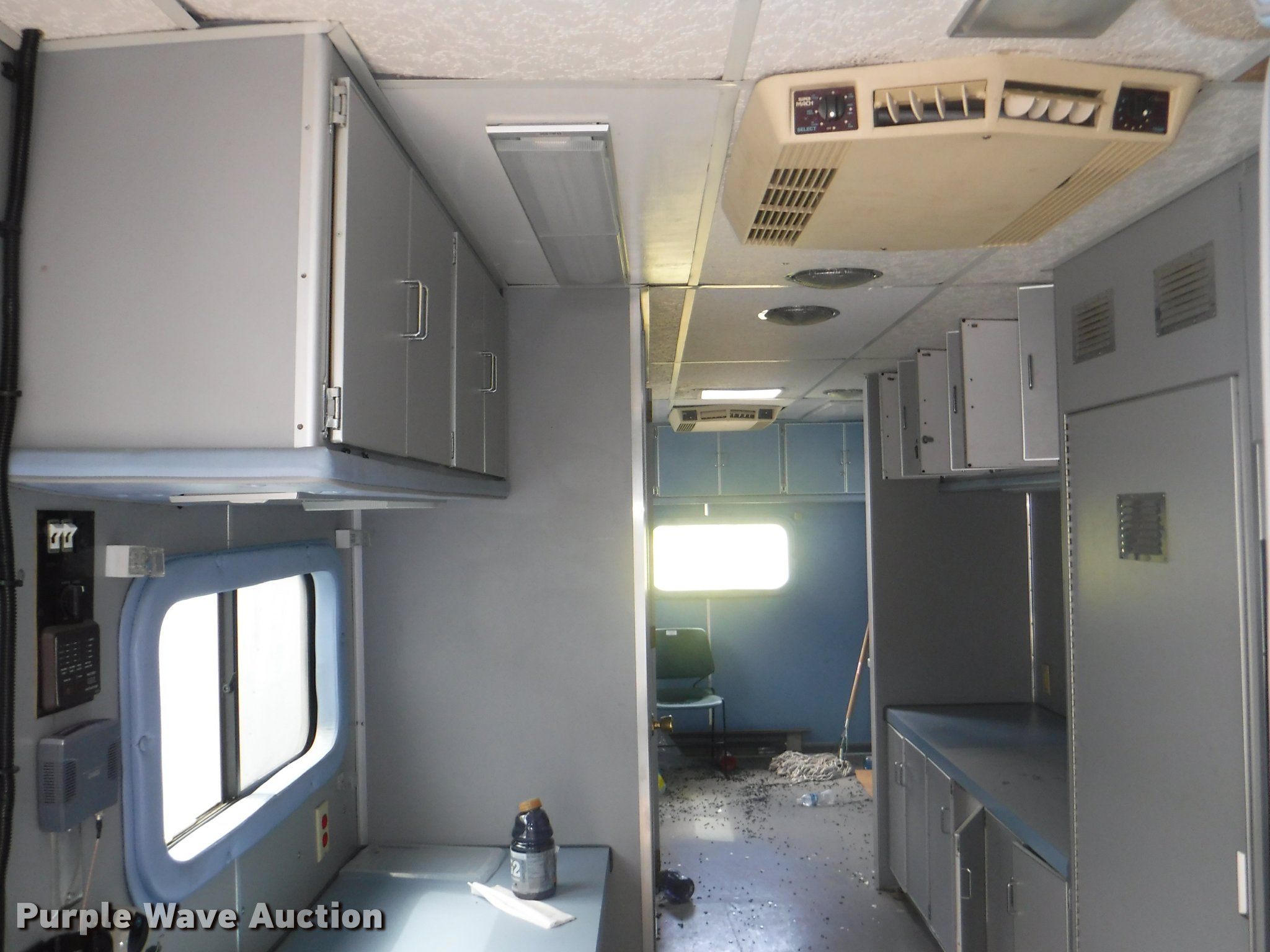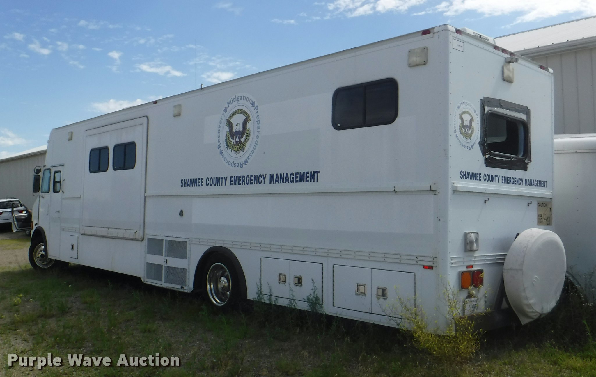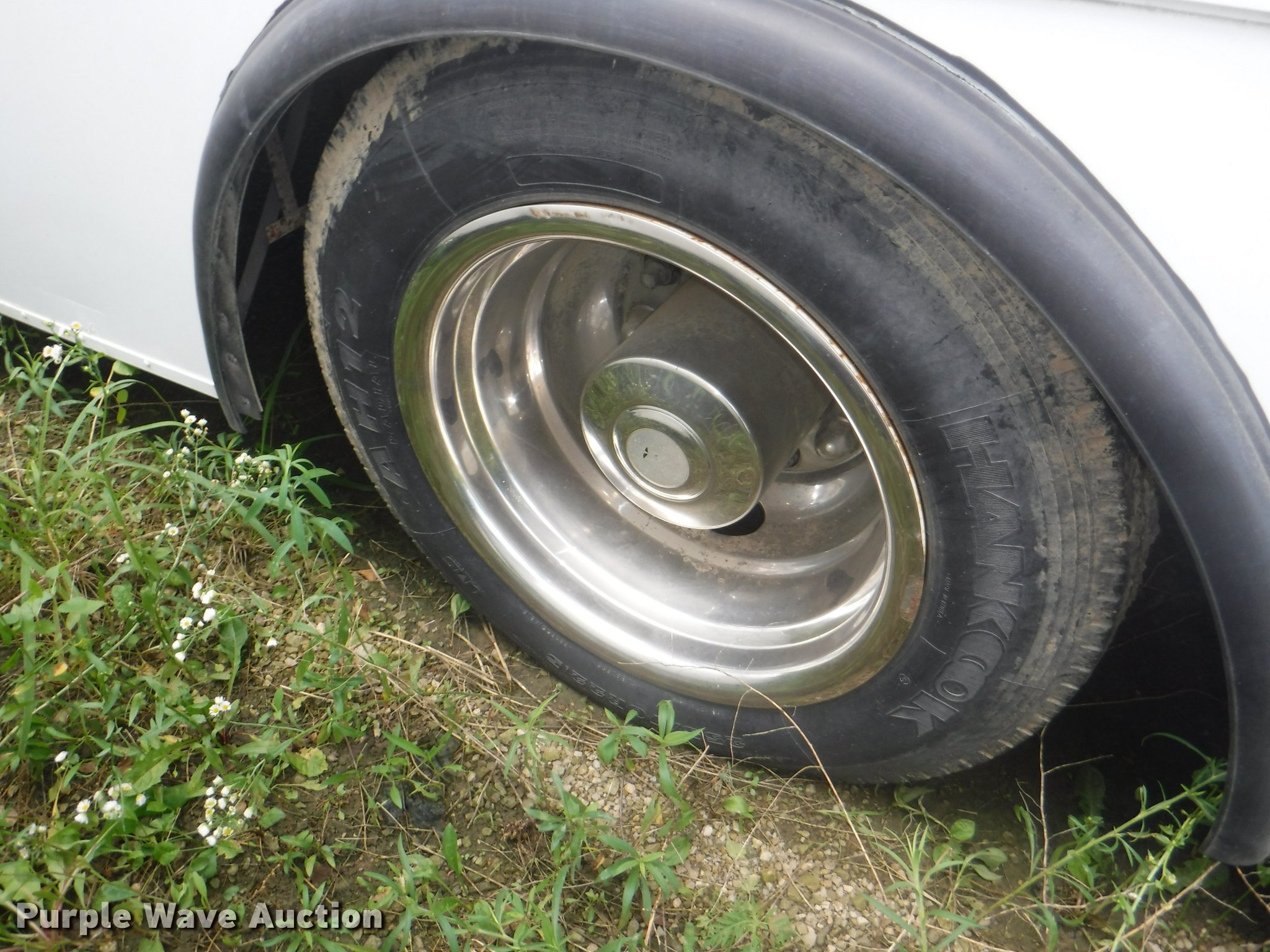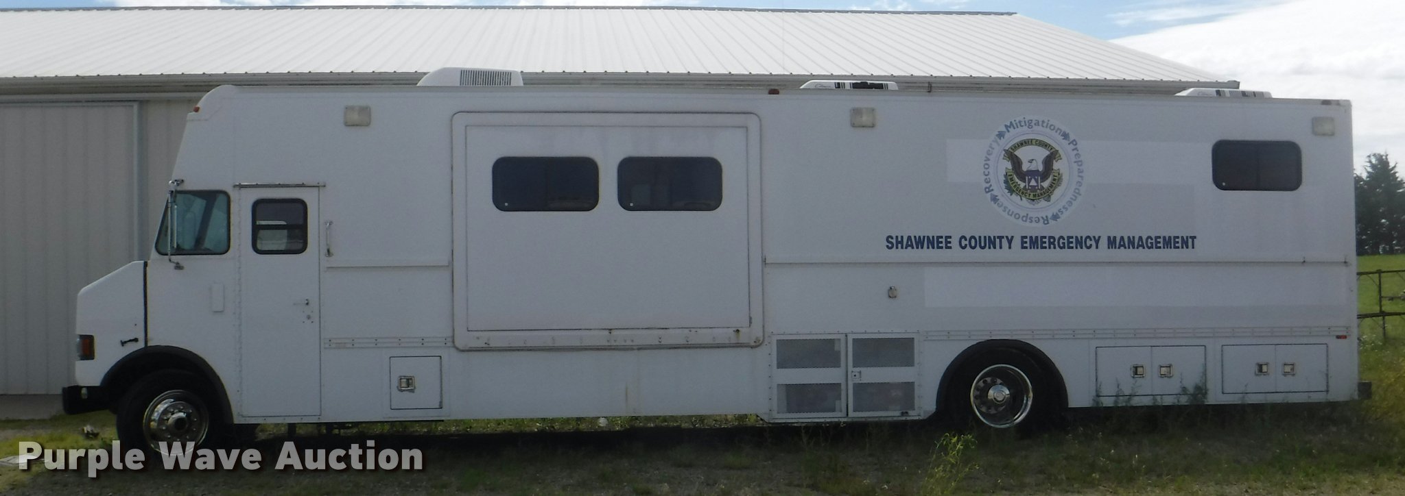 Purple Wave is selling a used RV in Kansas. This item is a 1992 International 1652-SC TERV RV with the following: 59,685 miles on odometer, International DTA360 5.9L L6 turbo diesel engine, Automatic transmission, AM/FM/cassette, Cloth interior, Slide-out, Awning, (2) AC units, Bathroom, No hot water, Refrigerator, Storage, Handicap lift, Non-operational, Flood lights, Master battery kill switch, Hawkpower generator, Lister Petter four cylinder engine, Single phase, 120/240V, HWH electronic leveling system, (4) stabilizers, Spring front suspension, Air rear suspension, Air brakes, 255/70R22.5 tires, Dead battery, Hood shocks inoperable, Hail damage, Rear window broken out, Cracked windshield, Decals will be removed prior to auction, Interior roof water damage