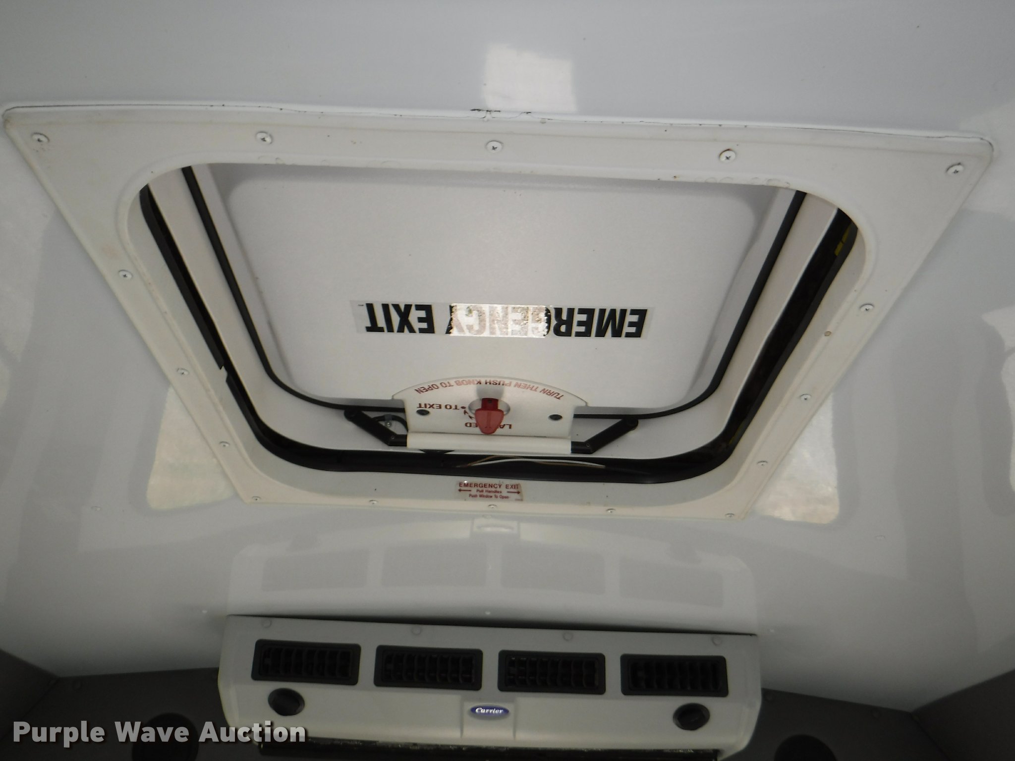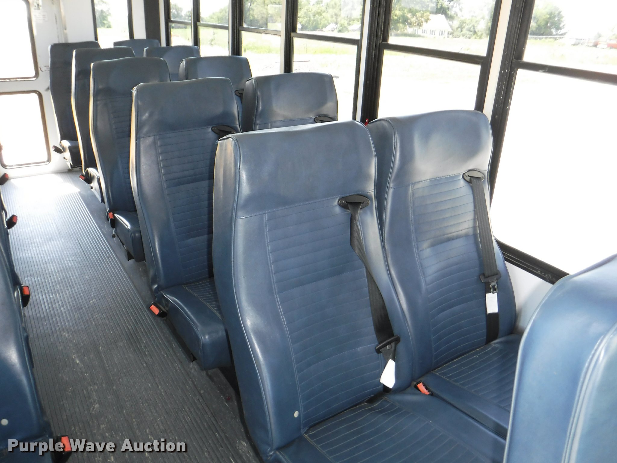 Purple Wave is selling a used Bus in Kansas. This item is a 2009 Ford E450 Super Duty shuttle bus with the following: 41,634 miles on odometer, 5.4L V8 SOHC 16V gas engine, Automatic transmission, Single axle, AC and heat, Tilt, Cruise, AM/FM/CD, Heated mirrors, Cloth drivers interior, Vinyl passenger interior, 20 passenger capacity, Seat belts, Jensen 23" television, Ceiling, rear, and side emergency exits, Carrier AC roof units, Spring suspension, Hydraulic brakes, 160" wheelbase, 225/75R16 tires, Decals will be removed prior to auction