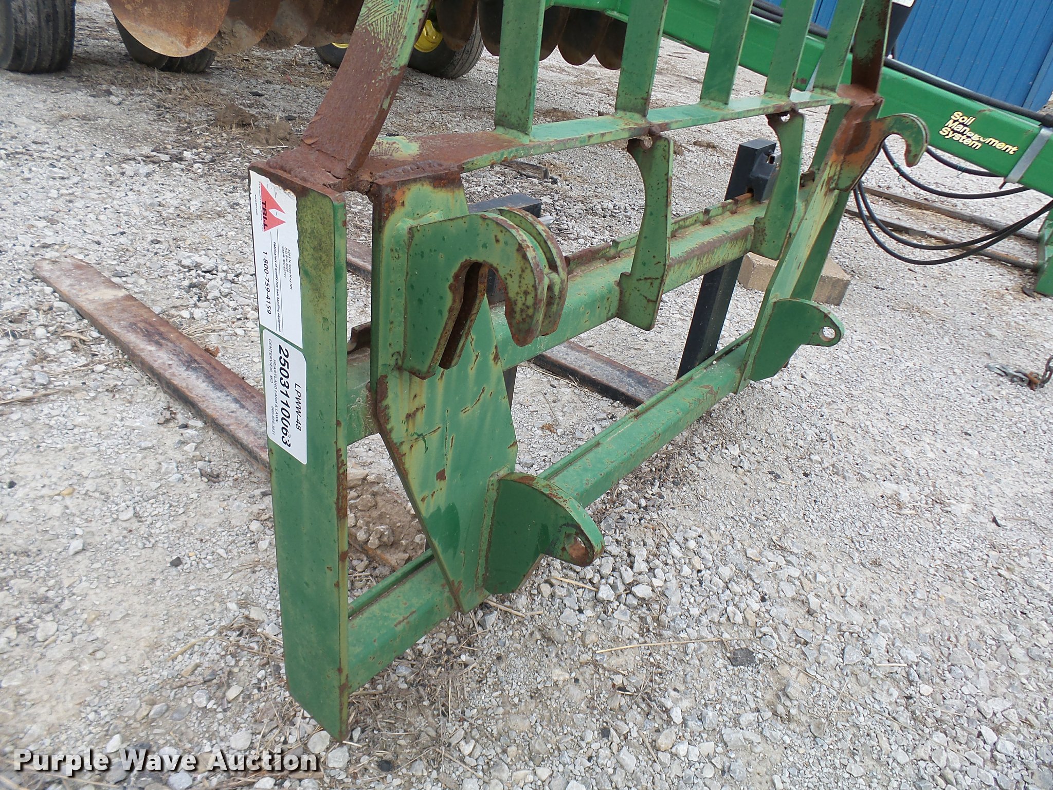 Purple Wave is selling a used Ag Equip. Other in Missouri. This item is a John Deere pallet forks with the following: Model LPWW48, 48"L forks, Adjustable width, Quick attach, Serial 2503110063