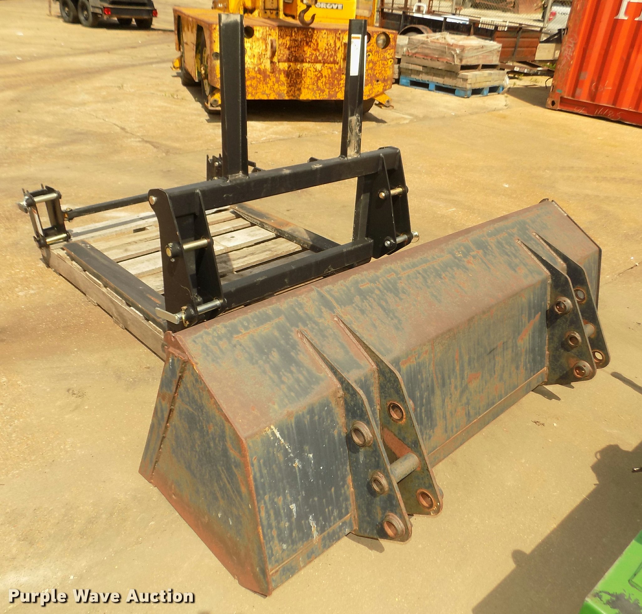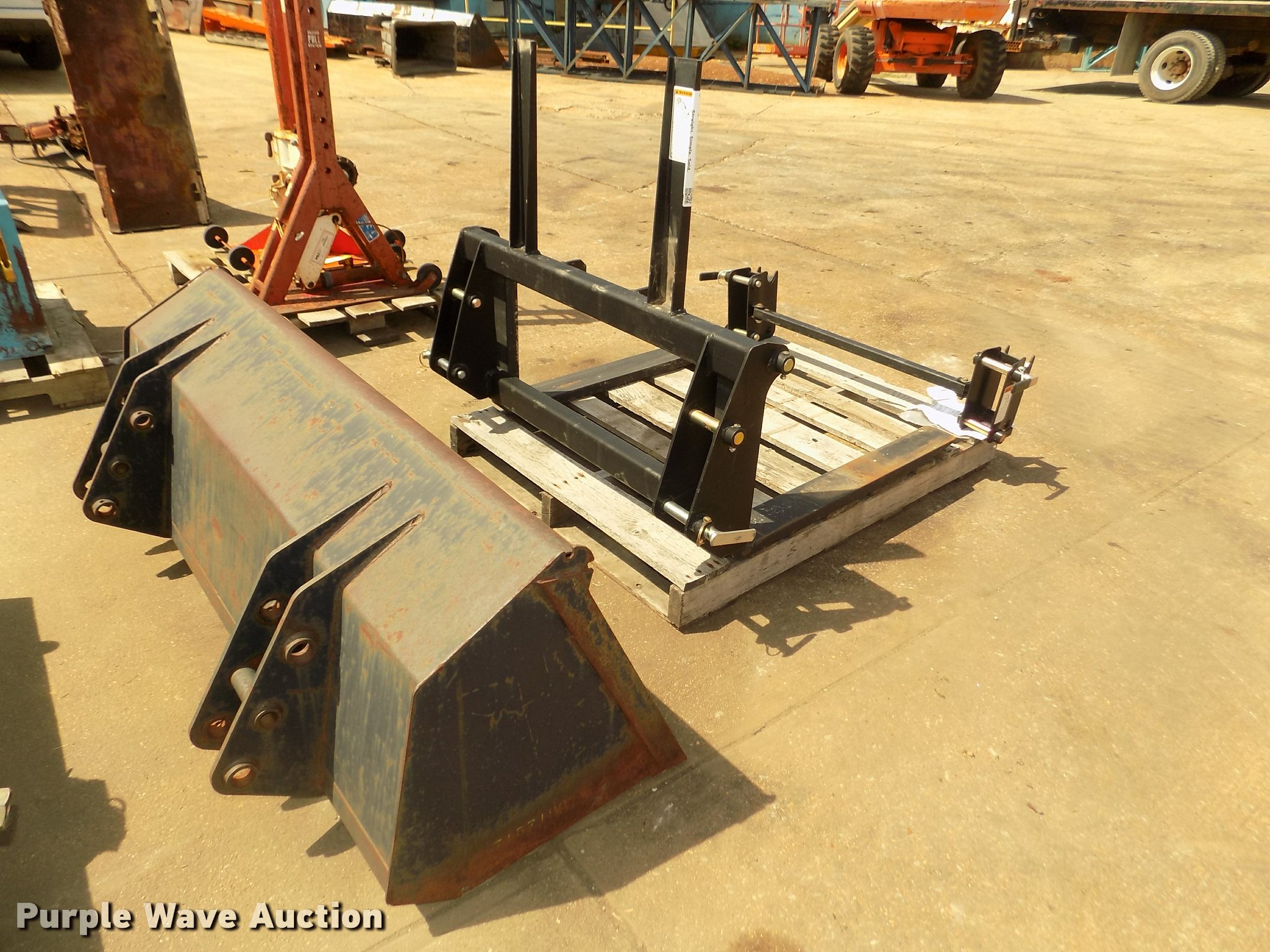 Purple Wave is selling a used Ag Tractor Loader or Attach. in Nebraska. This item is a Massey-Ferguson tractor attachments with the following: 61"W bucket, Weld-on cutting edge, Bolt-on capability,, 2014 forklift attachment, 34"L x 4"W forks, 36"H backrest, 1,800 lbs capacity, 40"W x 1" diameter carriage bar, Unused, Massey-Ferguson quick connect adapter, 33 3/4"W I.D. hookup, Unused