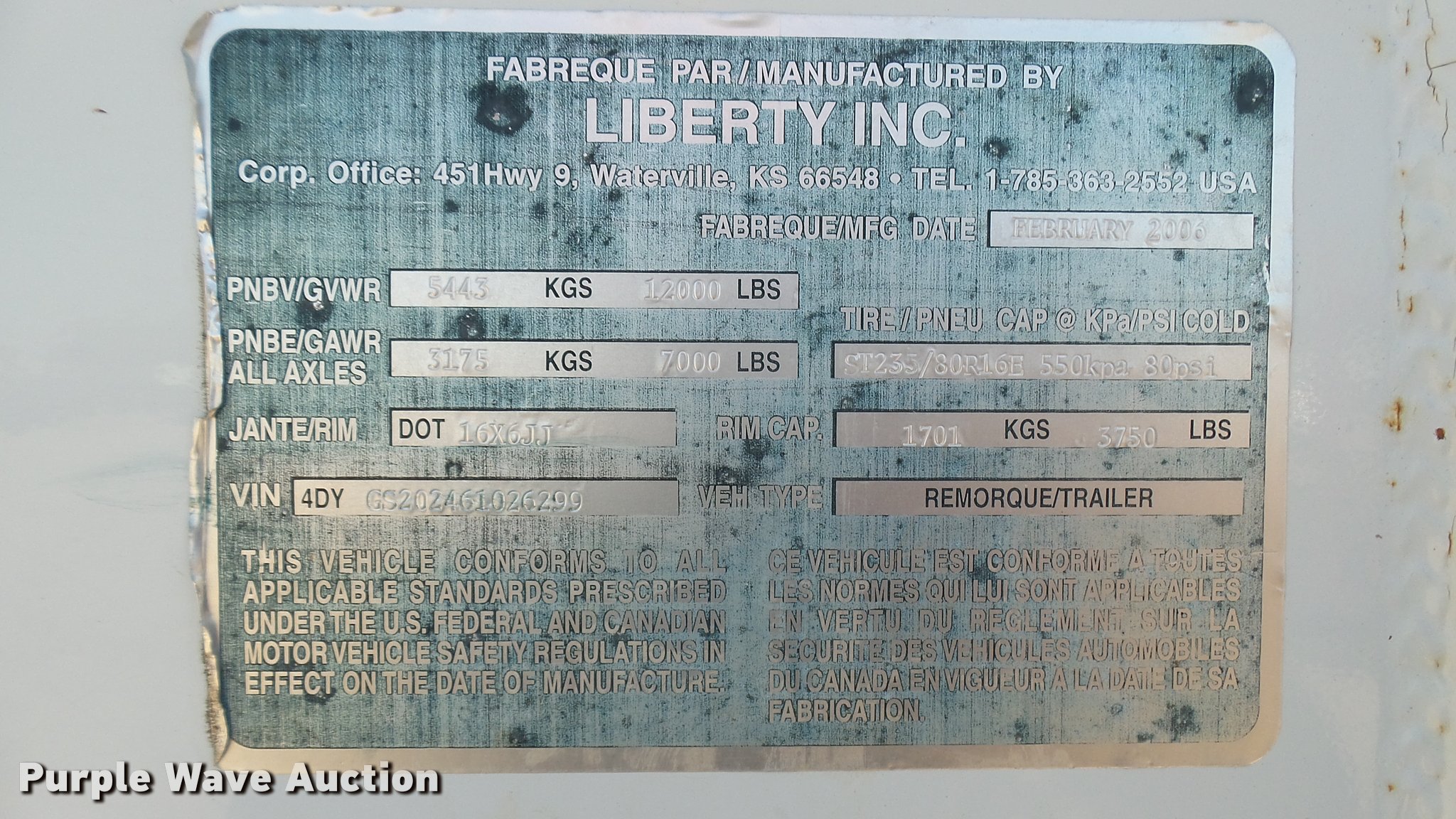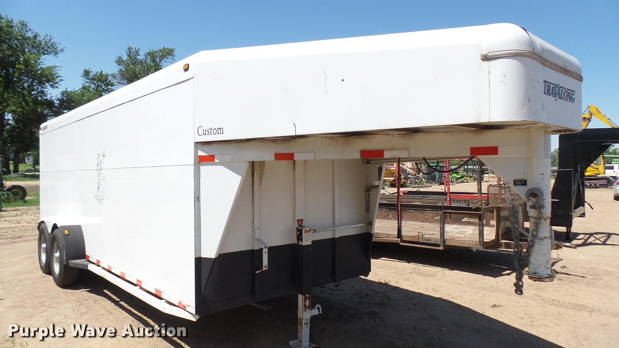Purple Wave is selling a used Equip. Trailer in Kansas. This item is a 2006 Travalong enclosed equipment trailer with the following: 27'L, 20'L deck, 7'L tongue, Wood deck, Storage over tongue, Rear swing door, Full fenders, Lights, Gooseneck hitch, Tandem axle, 235/80R16 tires, GVWR 12,000 lbs