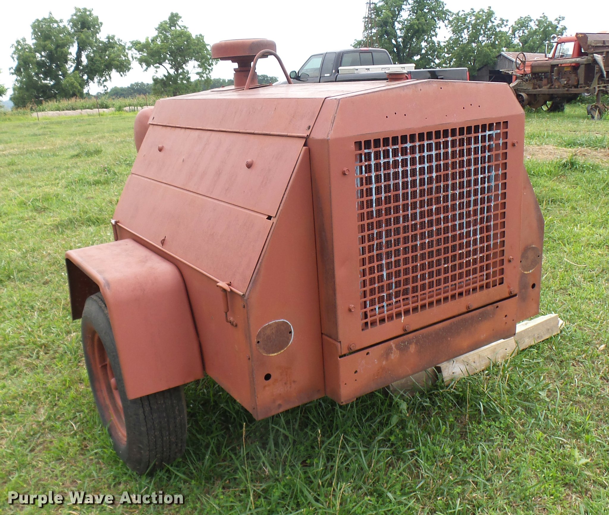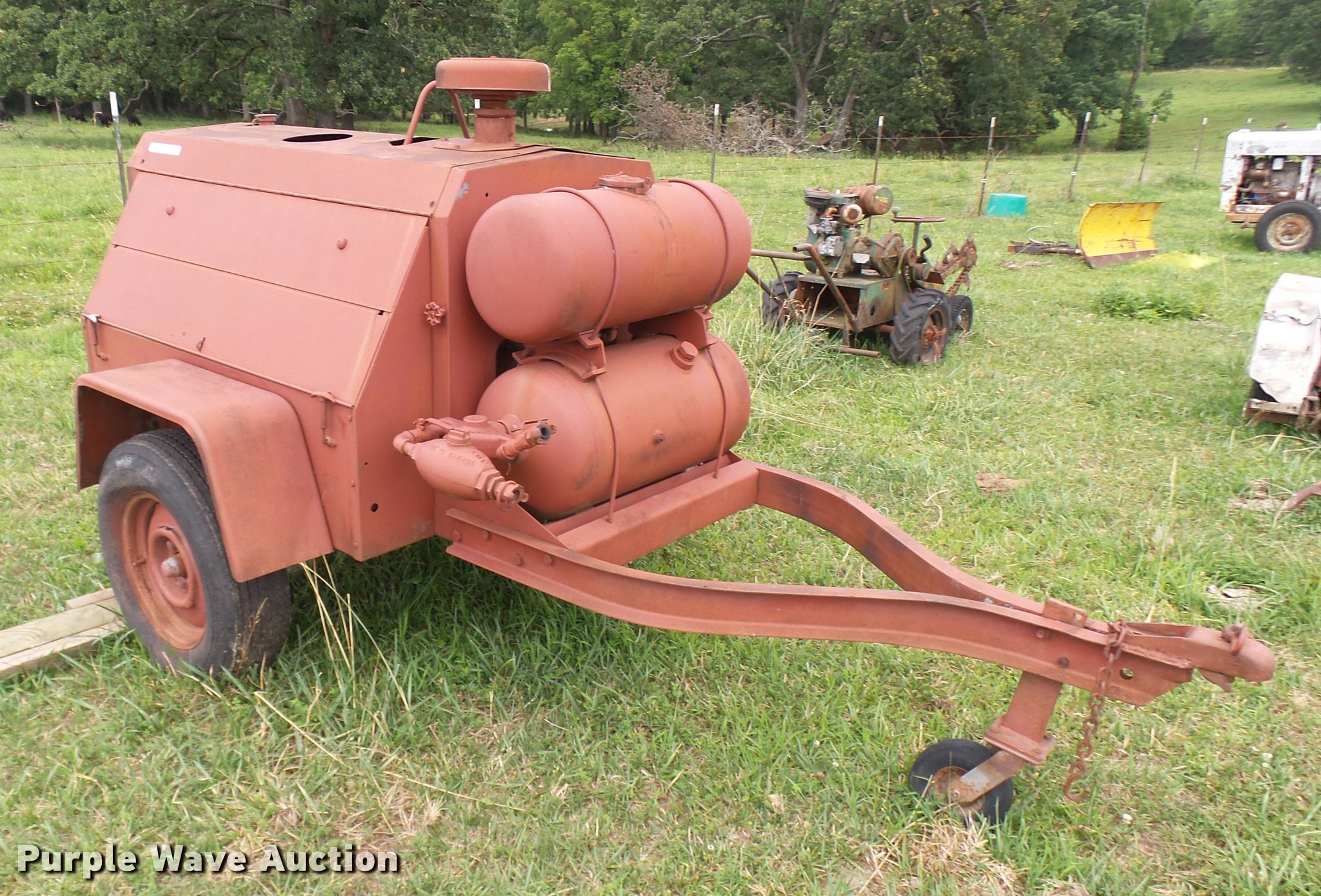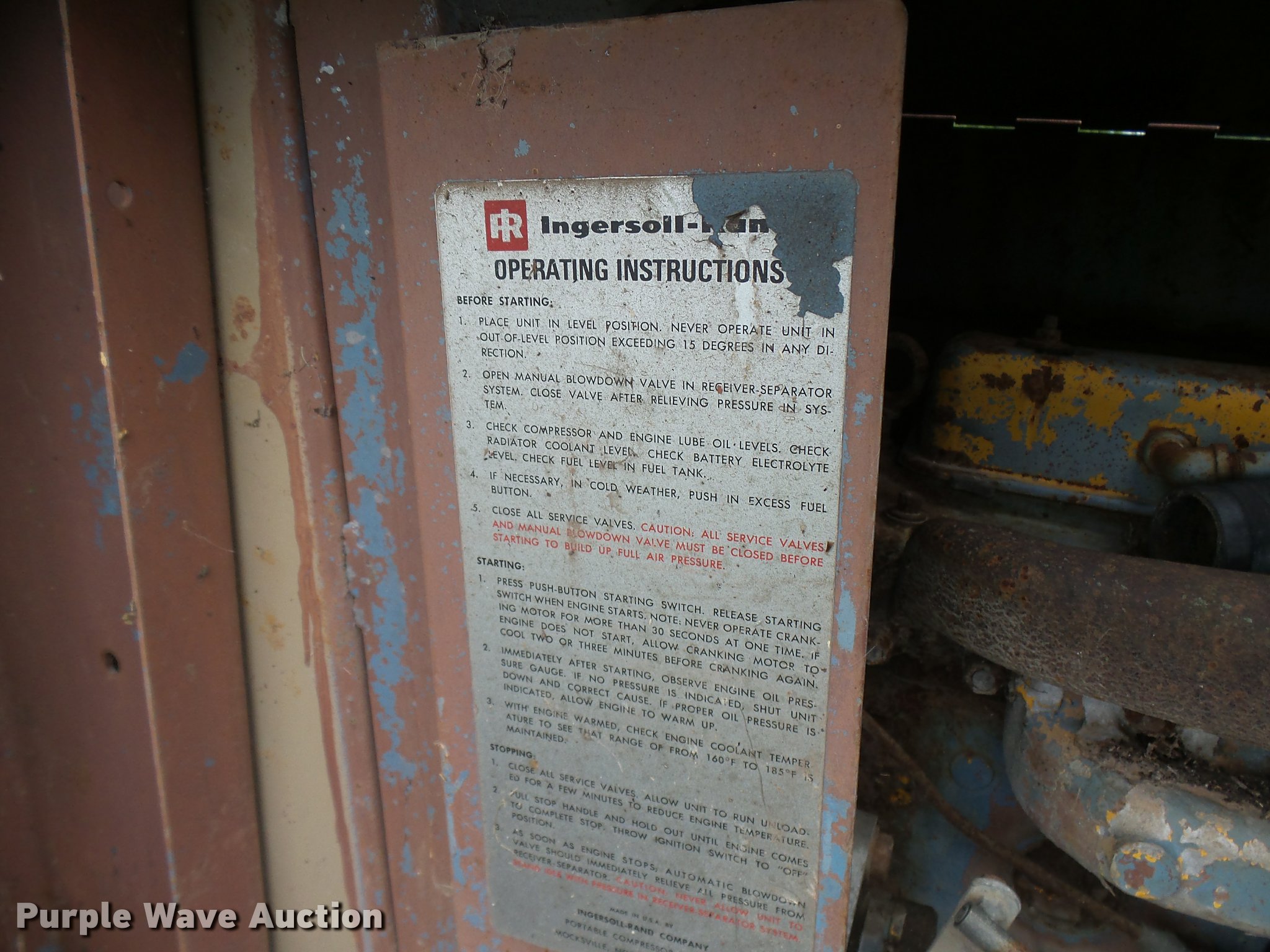 Purple Wave is selling a used Air Compressor in Missouri. This item is a Ingersoll Rand compressor with the following: 1,002 hours on meter, Four cylinder gas engine, 2" ball hitch, Spring suspension, Single axle, F78-15 tires, Unknown operating condition