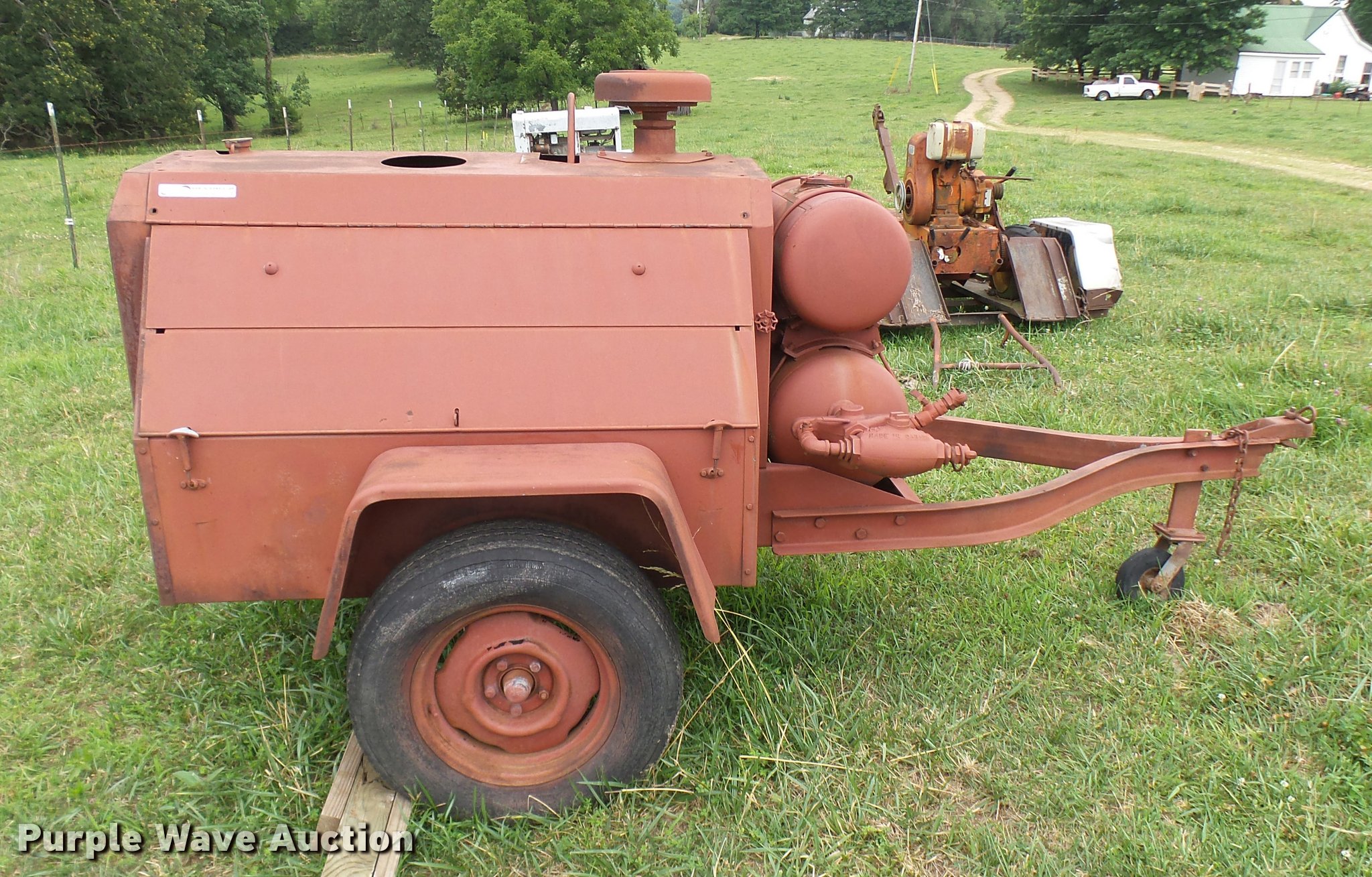 Ingersoll Rand compressor. 1,002 hours on meter, Four cylinder gas engine, 2" ball hitch, Spring suspension, Single axle, F78-15 tires, Unknown operating condition. Transfer of ownership documentation will be a bill of sale. 3588 Black Jack Rd. Florence, MO 63363
