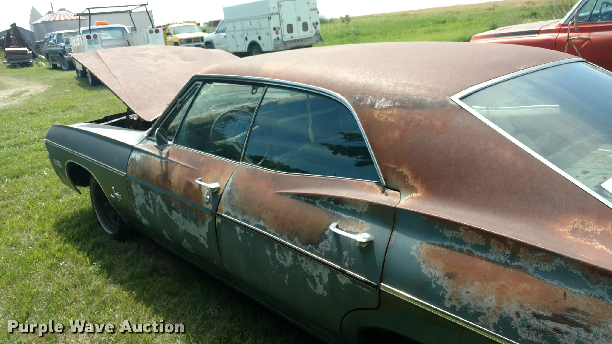 Purple Wave is selling a used Passenger Vehicle in Kansas. This item is a 1968 Chevrolet Impala with the following: V8 gas engine, Automatic transmission, AC and heat, Manual windows and locks, 185/75R14 tires, Unknown running condition, Unit has sat for several years
