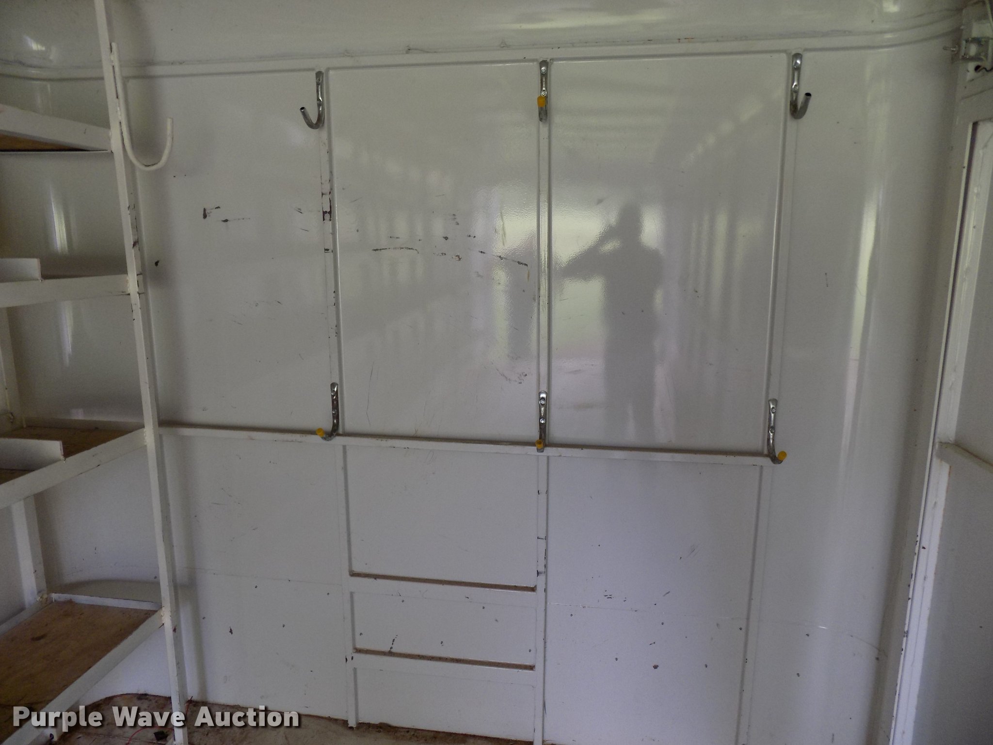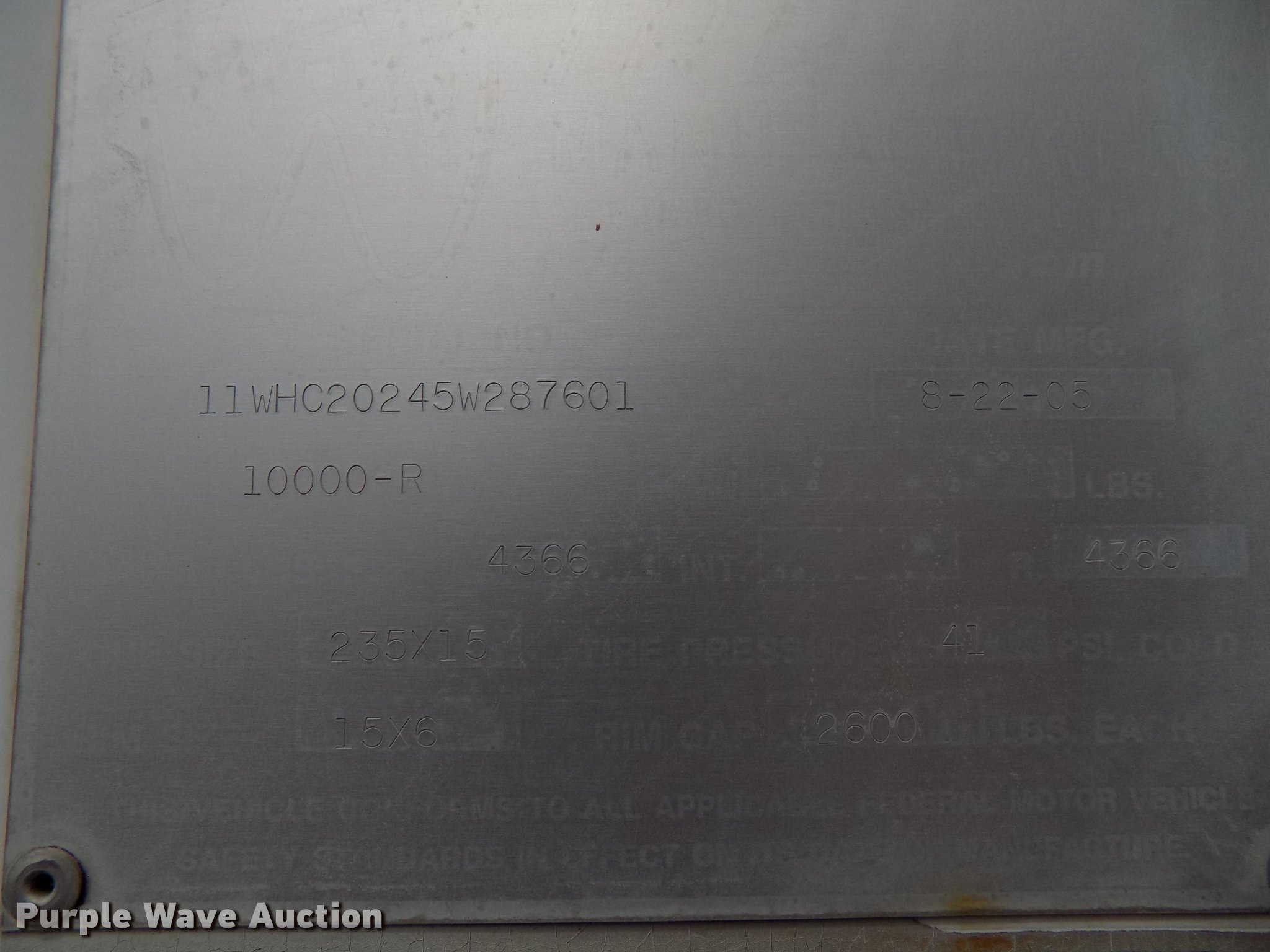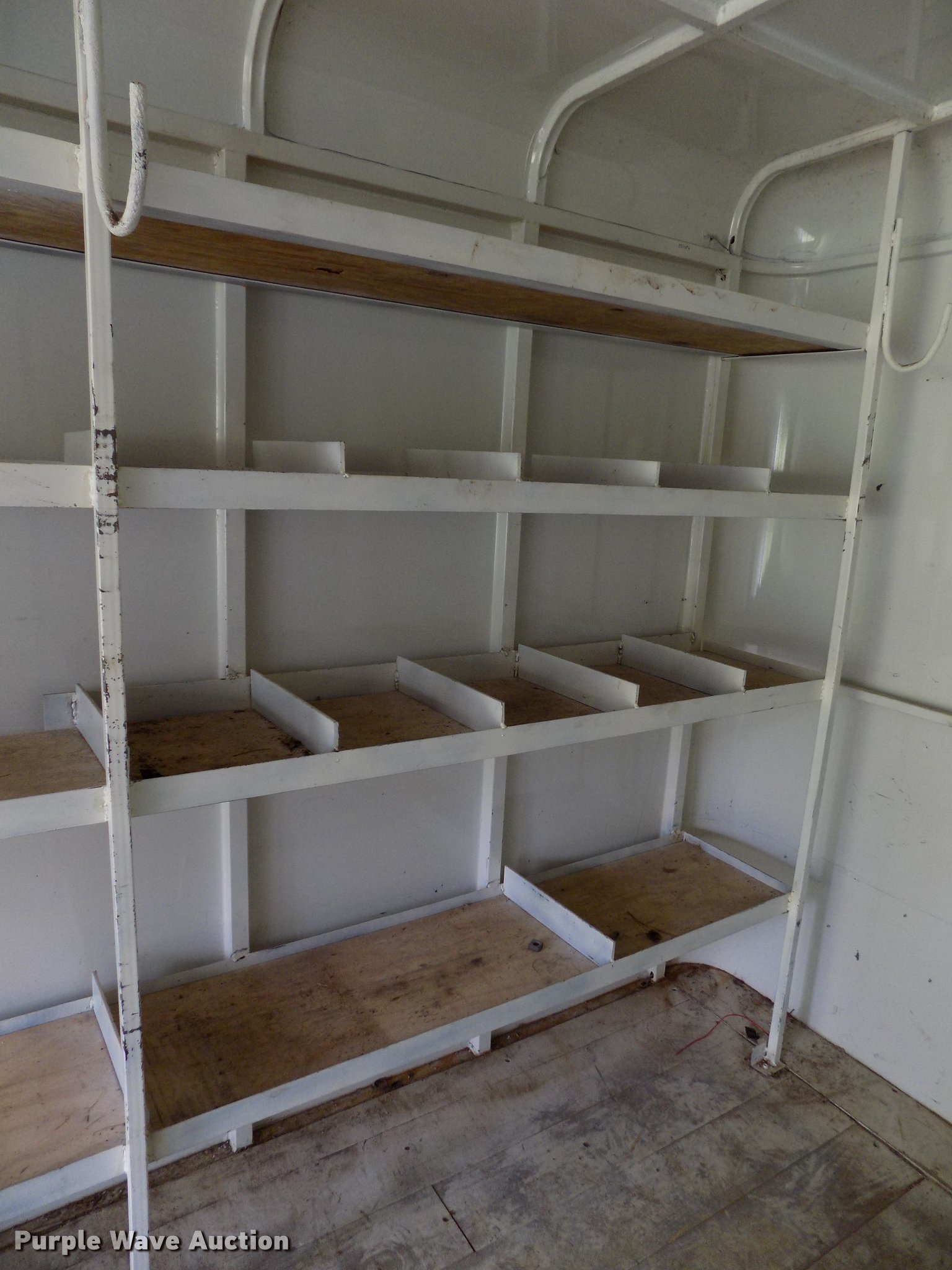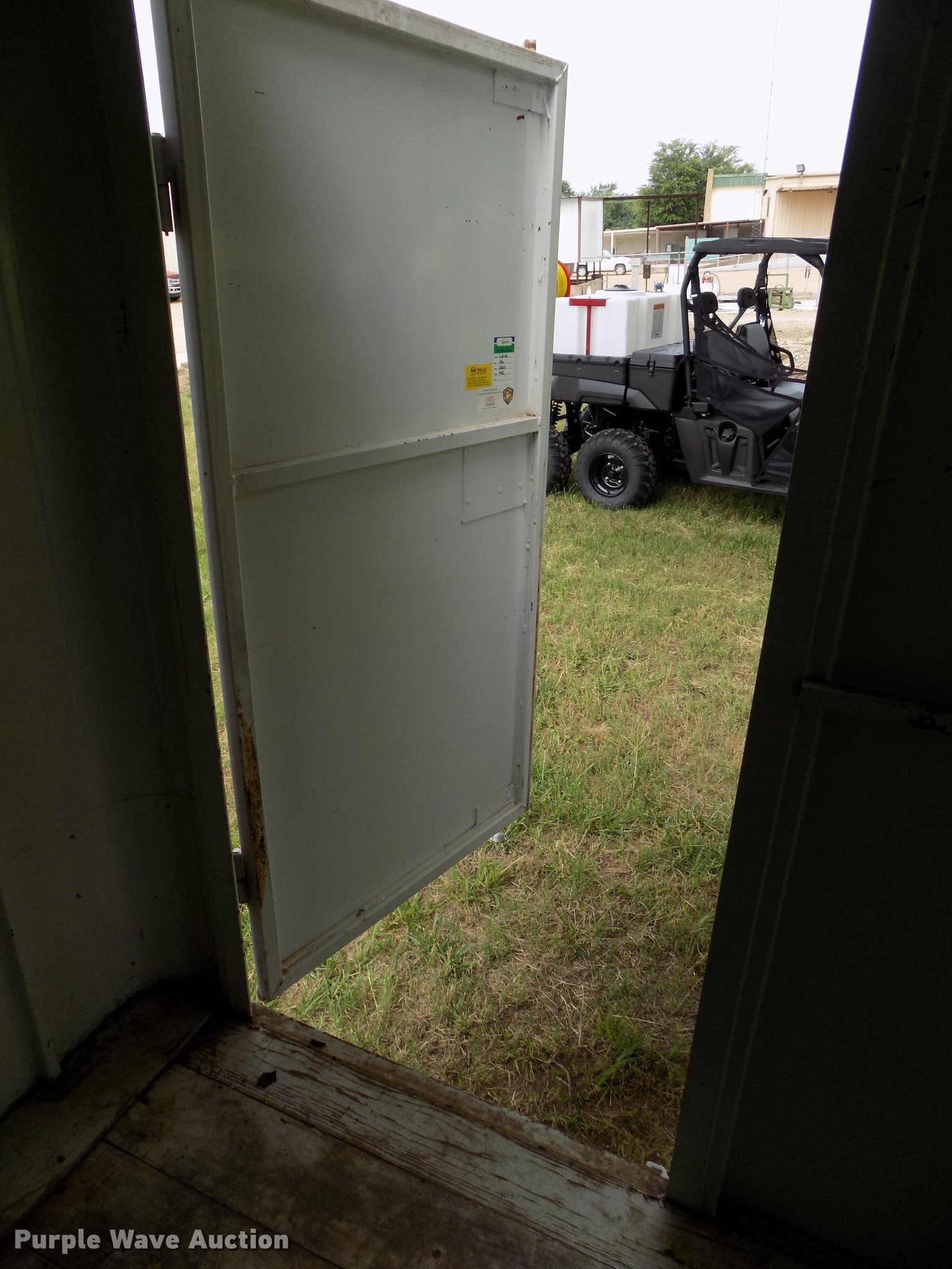 Purple Wave is selling a used Enclosed Cargo Trailer in Oklahoma. This item is a 2005 W-W enclosed cargo trailer with the following: 20'L, Wood deck, Right side door, Swinging rear doors, Shelving and hanging racks, 12V lighting, Battery on tongue, 2 5/16" ball hitch, Single leg landing gear, Spring suspension, Electric brakes, Tandem axle, Steel wheels, 7.00-15 tires, GVWR 5,200 lbs, GAWR 2,600 lbs