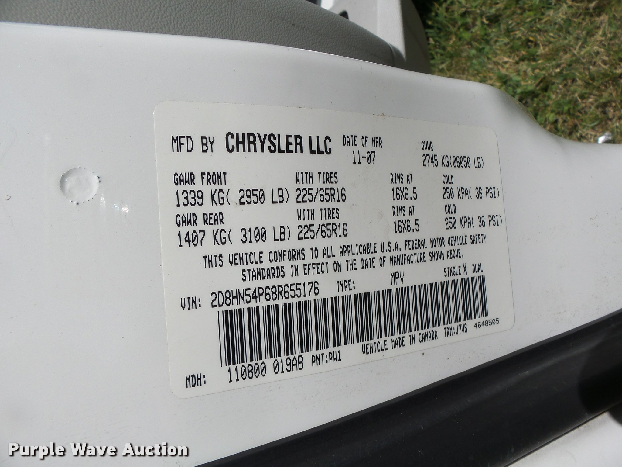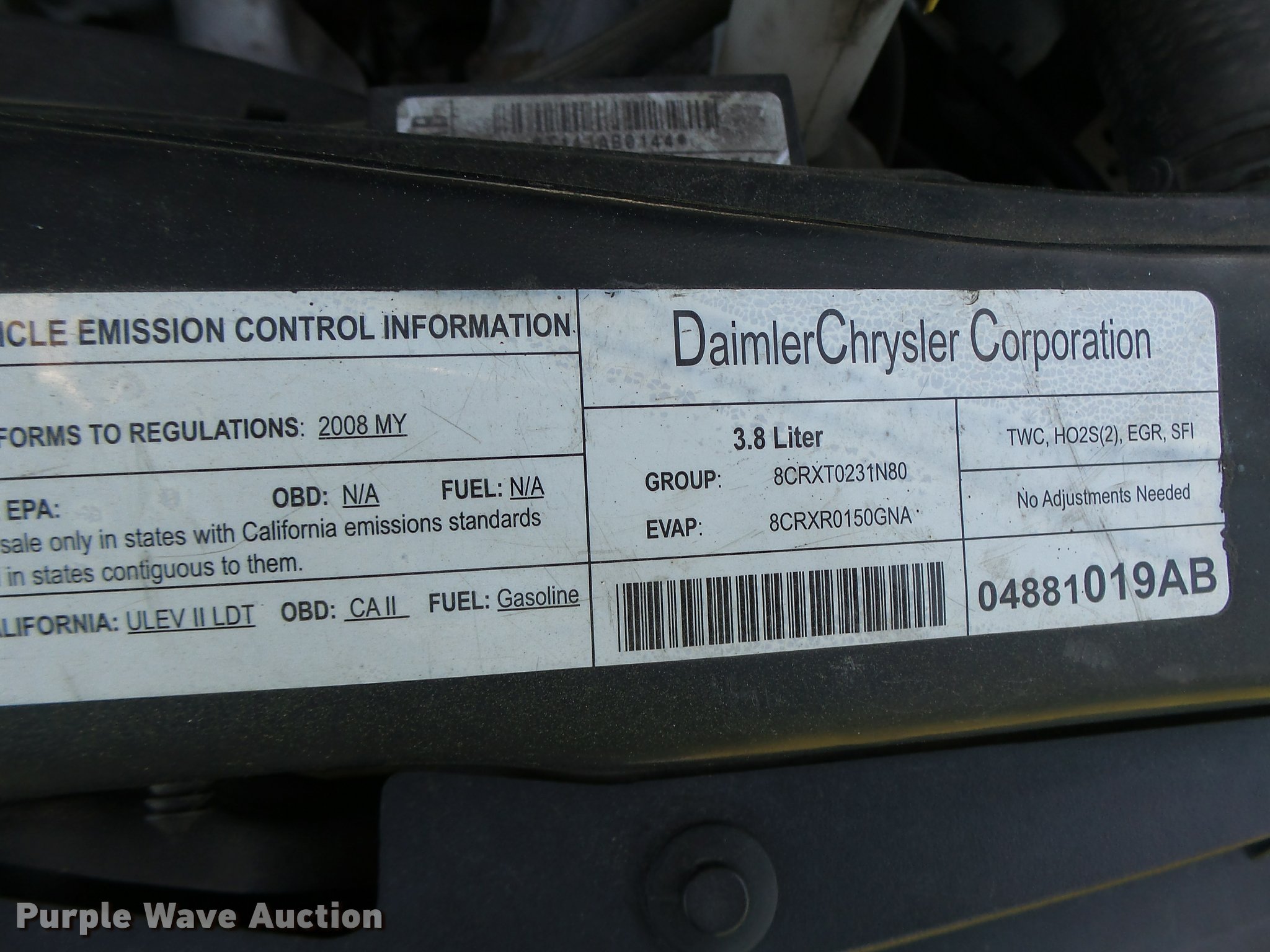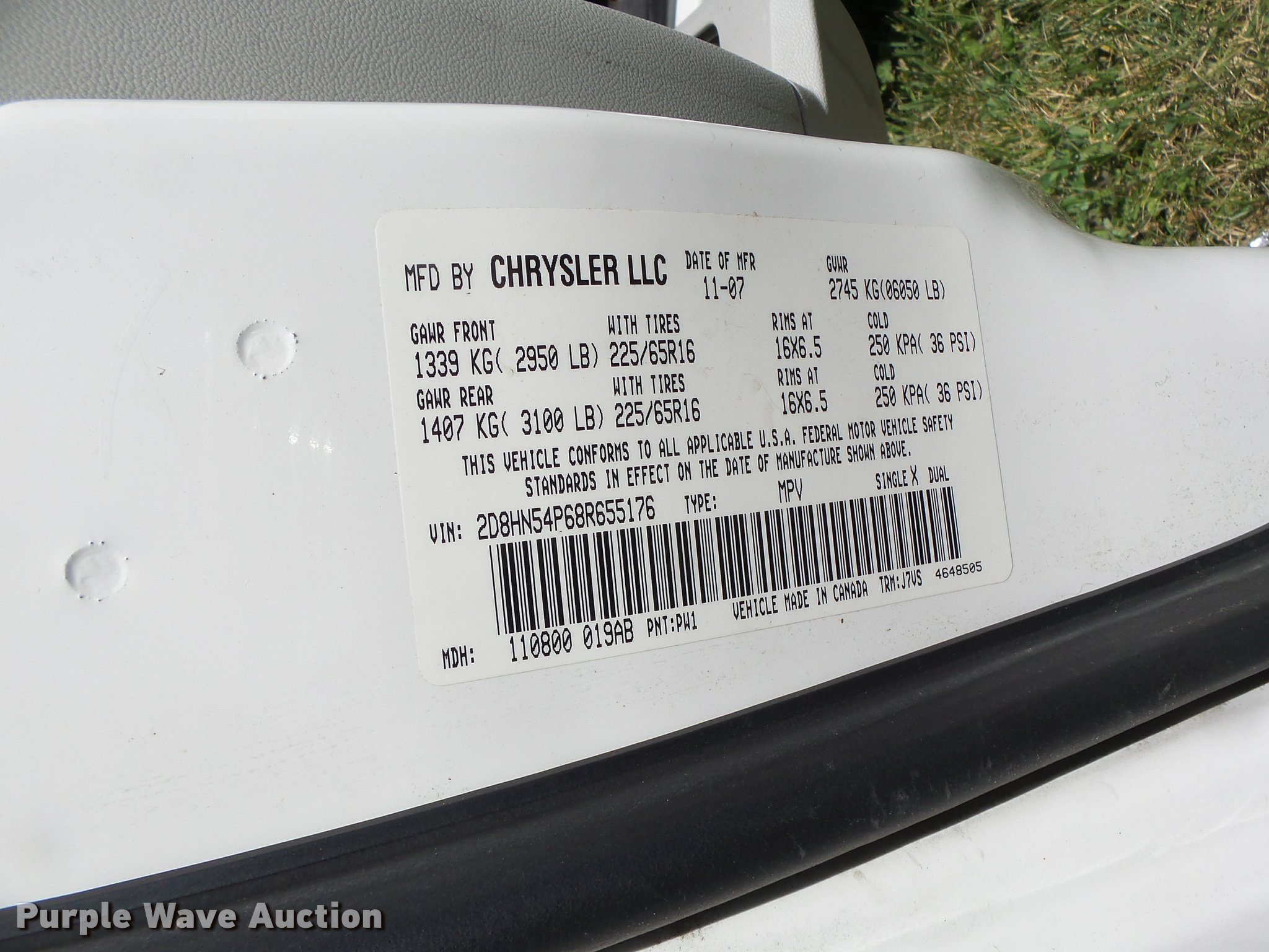 Purple Wave is selling a used Passenger Vehicle in Missouri. This item is a 2008 Dodge Caravan van with the following: 133,053 miles on odometer, 3.8L V6 OHV 12V gas engine, Automatic transmission, AC and heat, Tilt, Cruise, AM/FM/CD, Power windows, locks, mirrors, and seat, Cloth interior, 225/65R16 tires