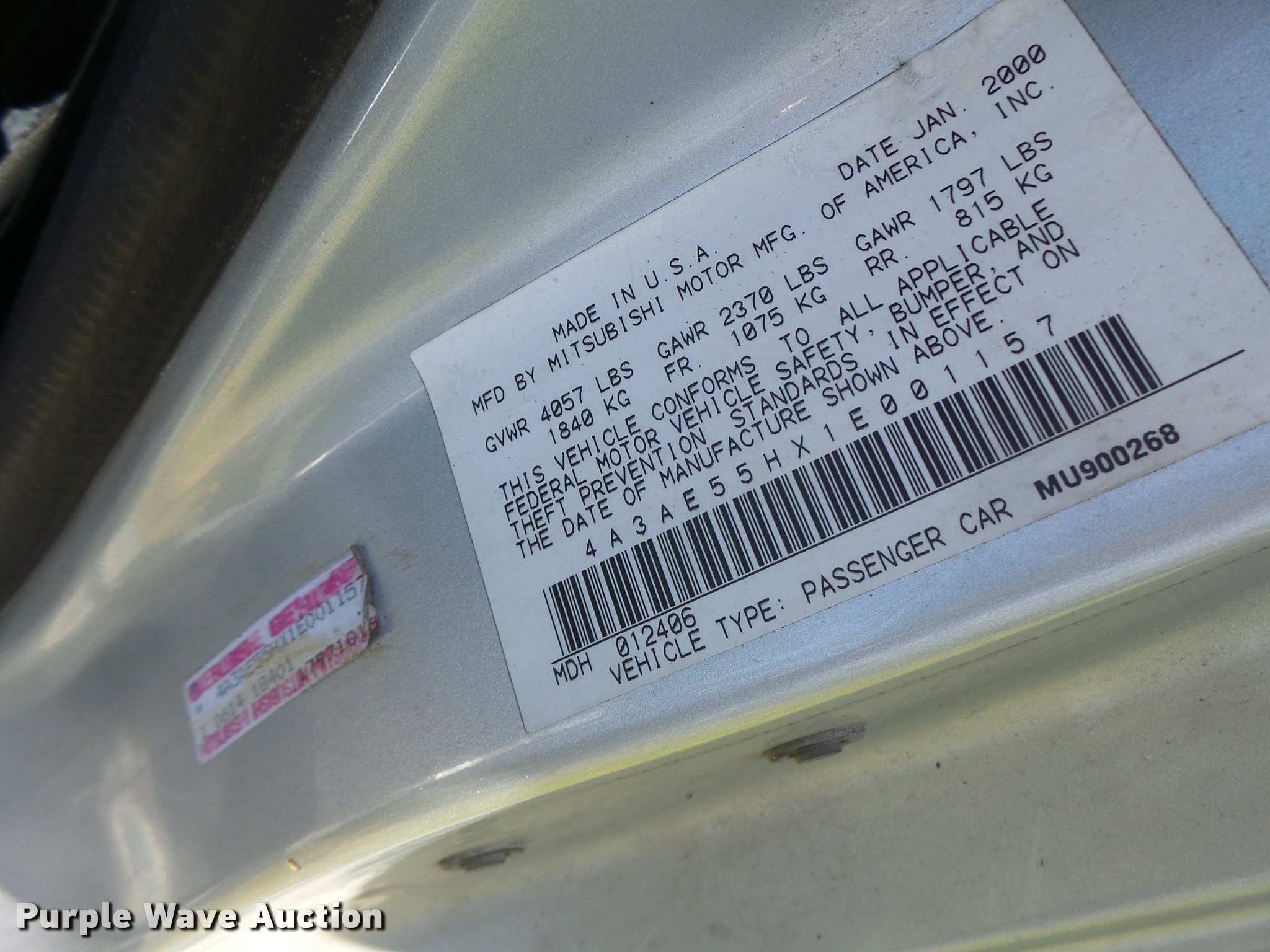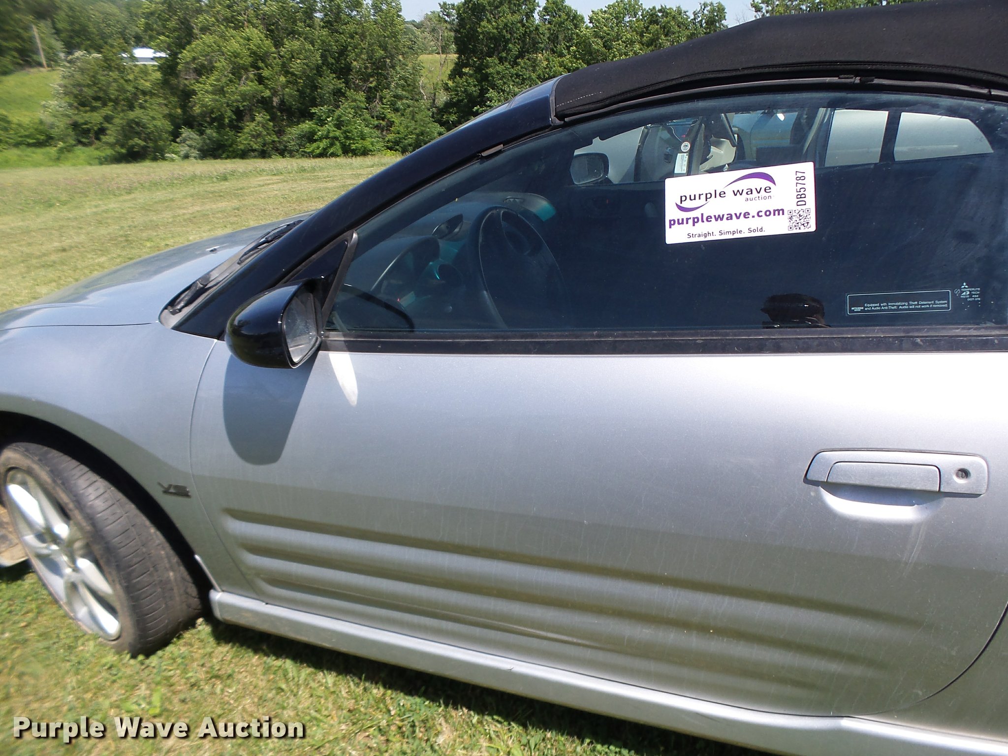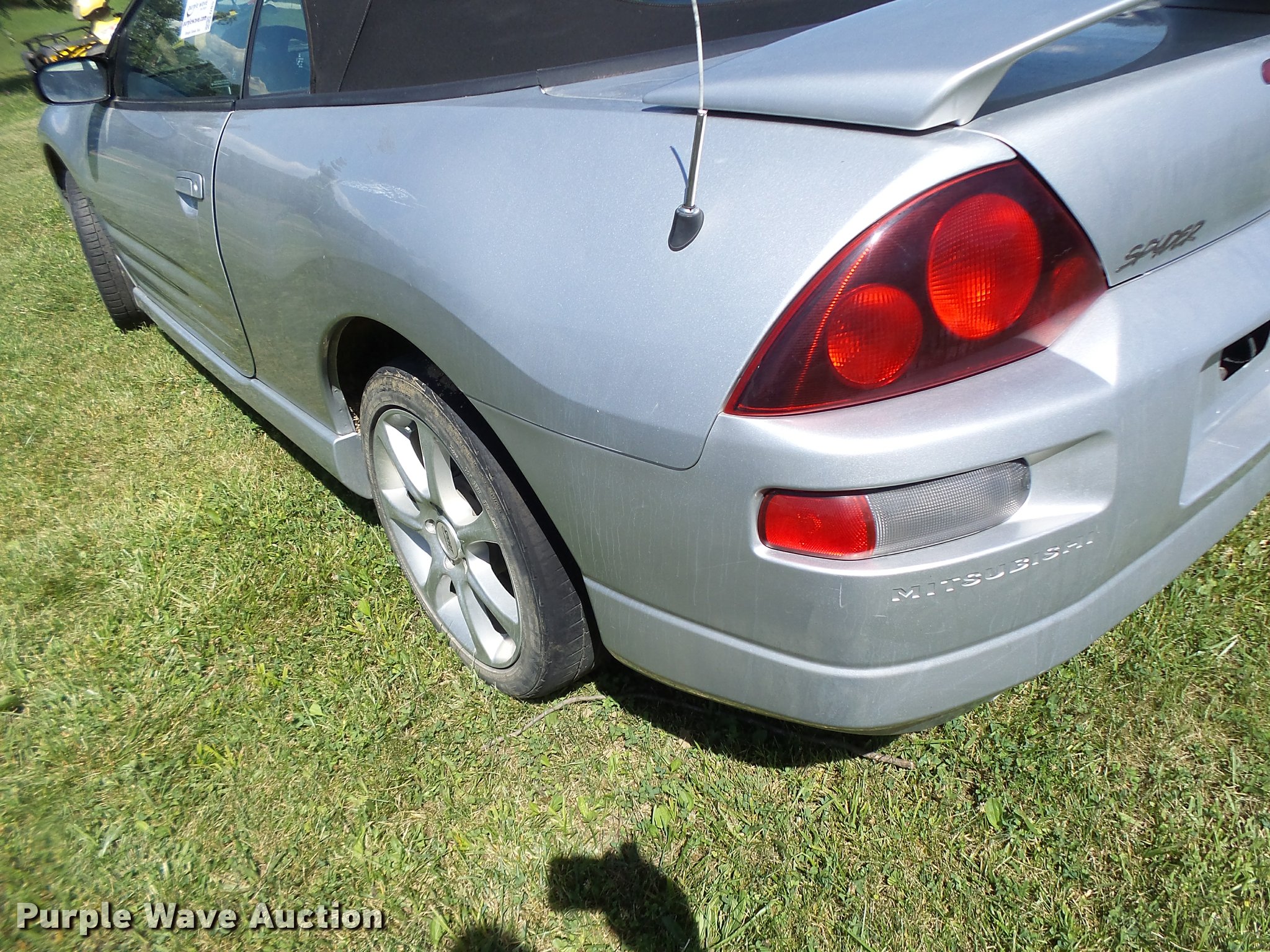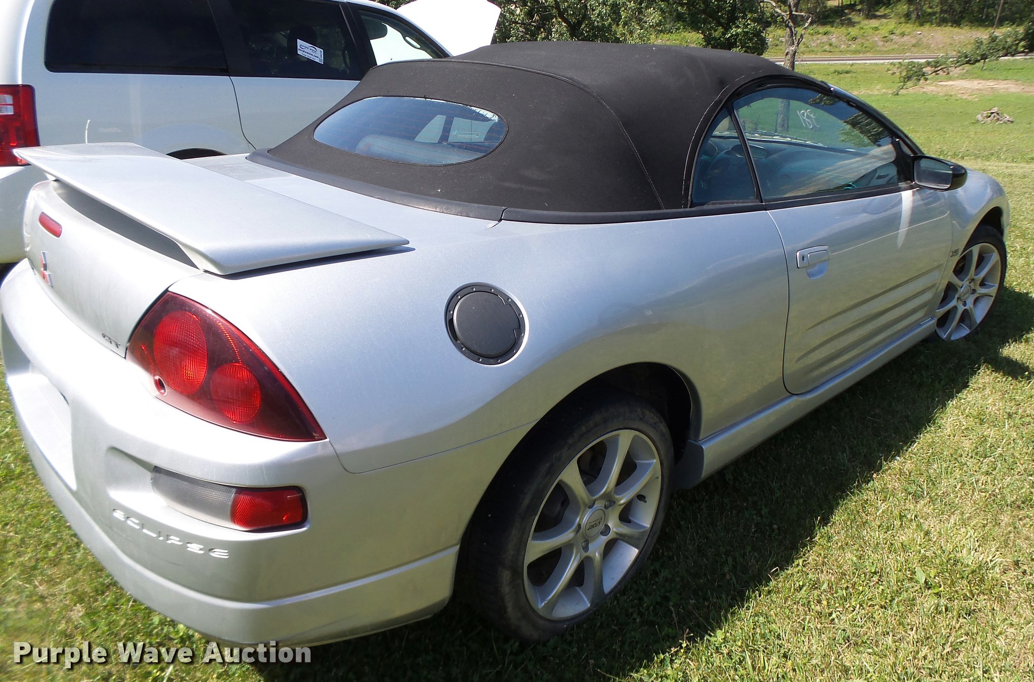Purple Wave is selling a used Passenger Vehicle in Missouri. This item is a 2001 Mitsubishi Eclipse with the following: 148,365 miles on odometer, 3.0L V6 DOHC 24V gas engine, Automatic transmission, Heat, AM/FM/CD/cassette, Power windows, locks, mirrors, and seats, Vinyl interior, Convertible top, 225/45ZR17