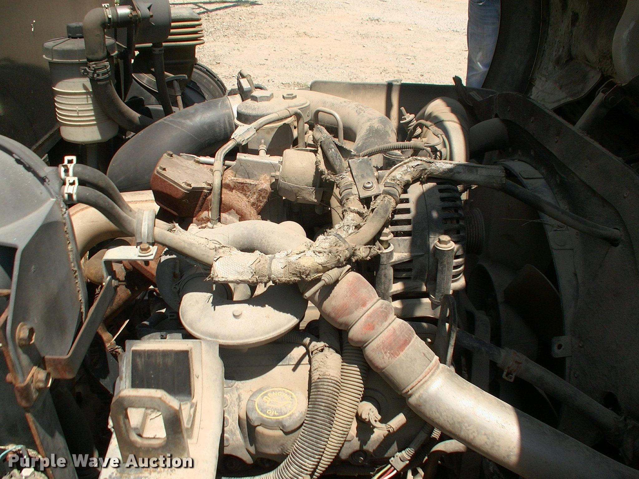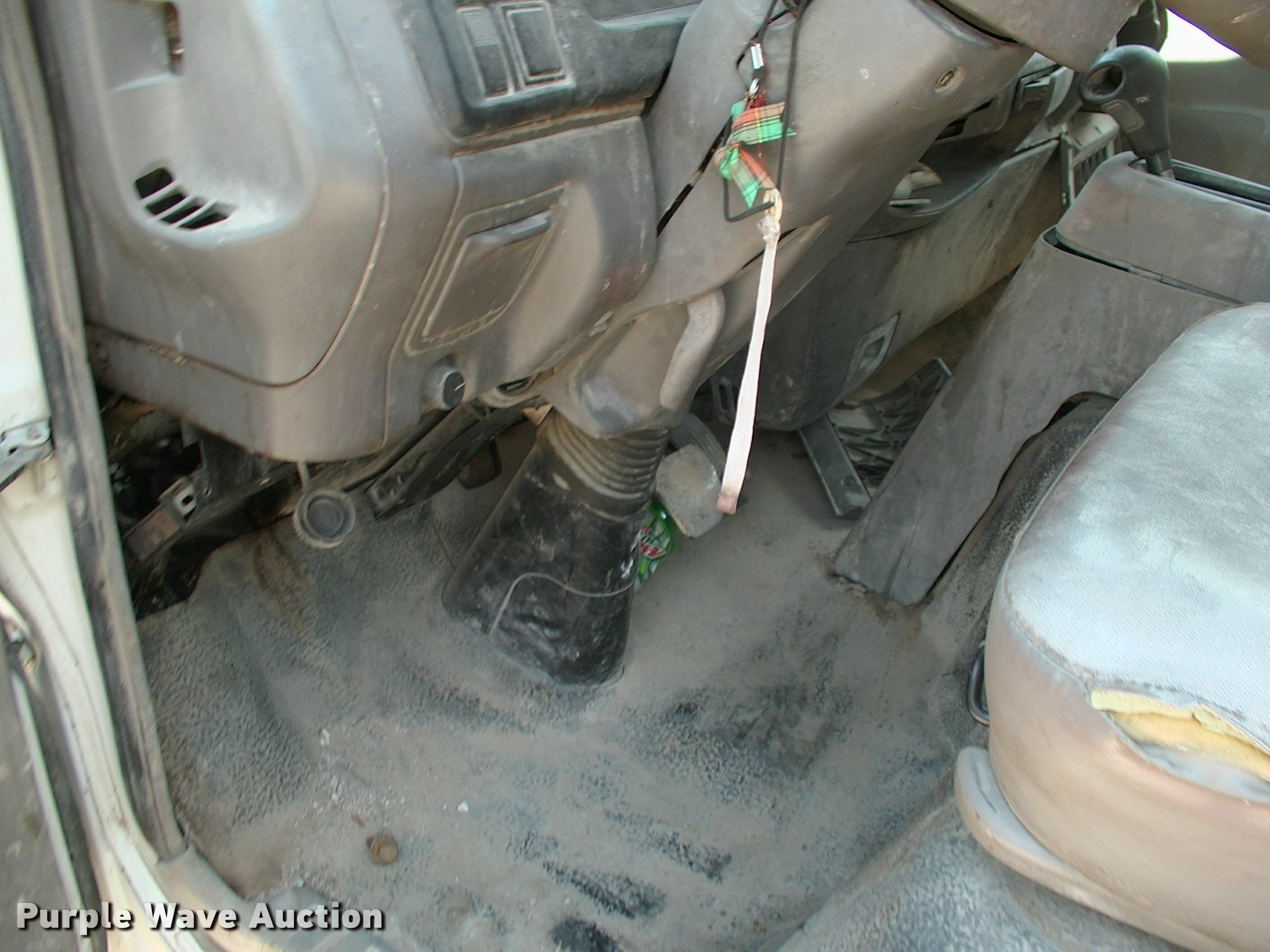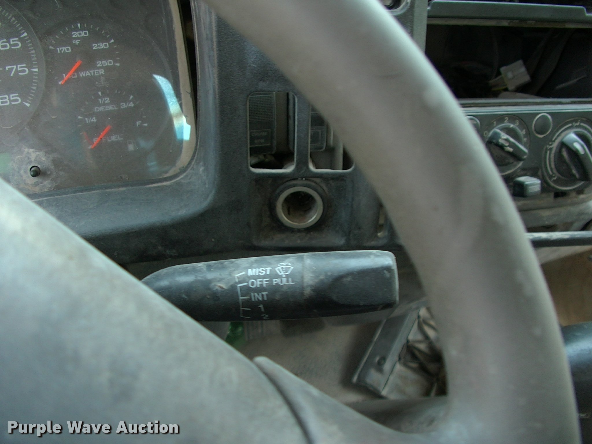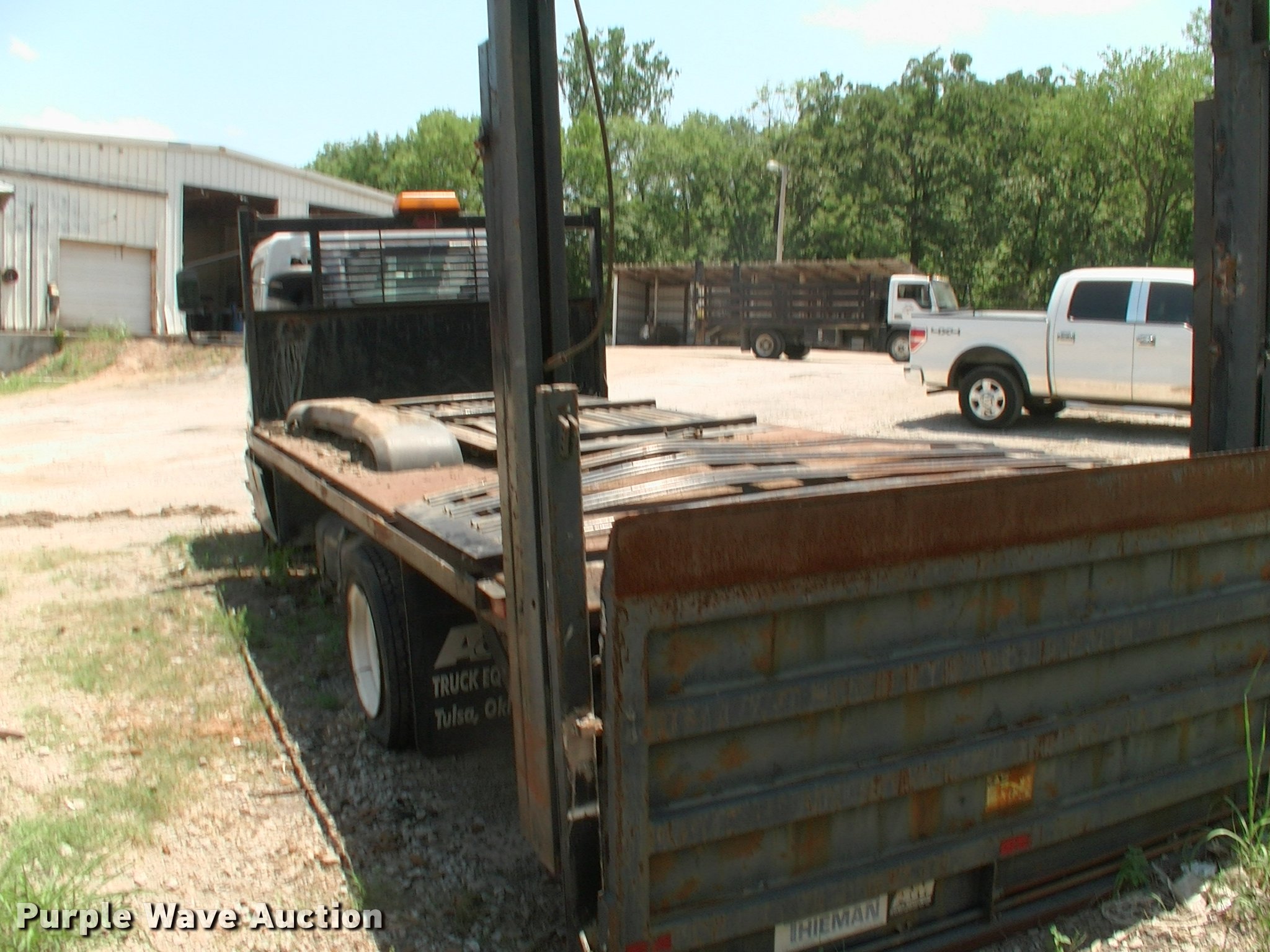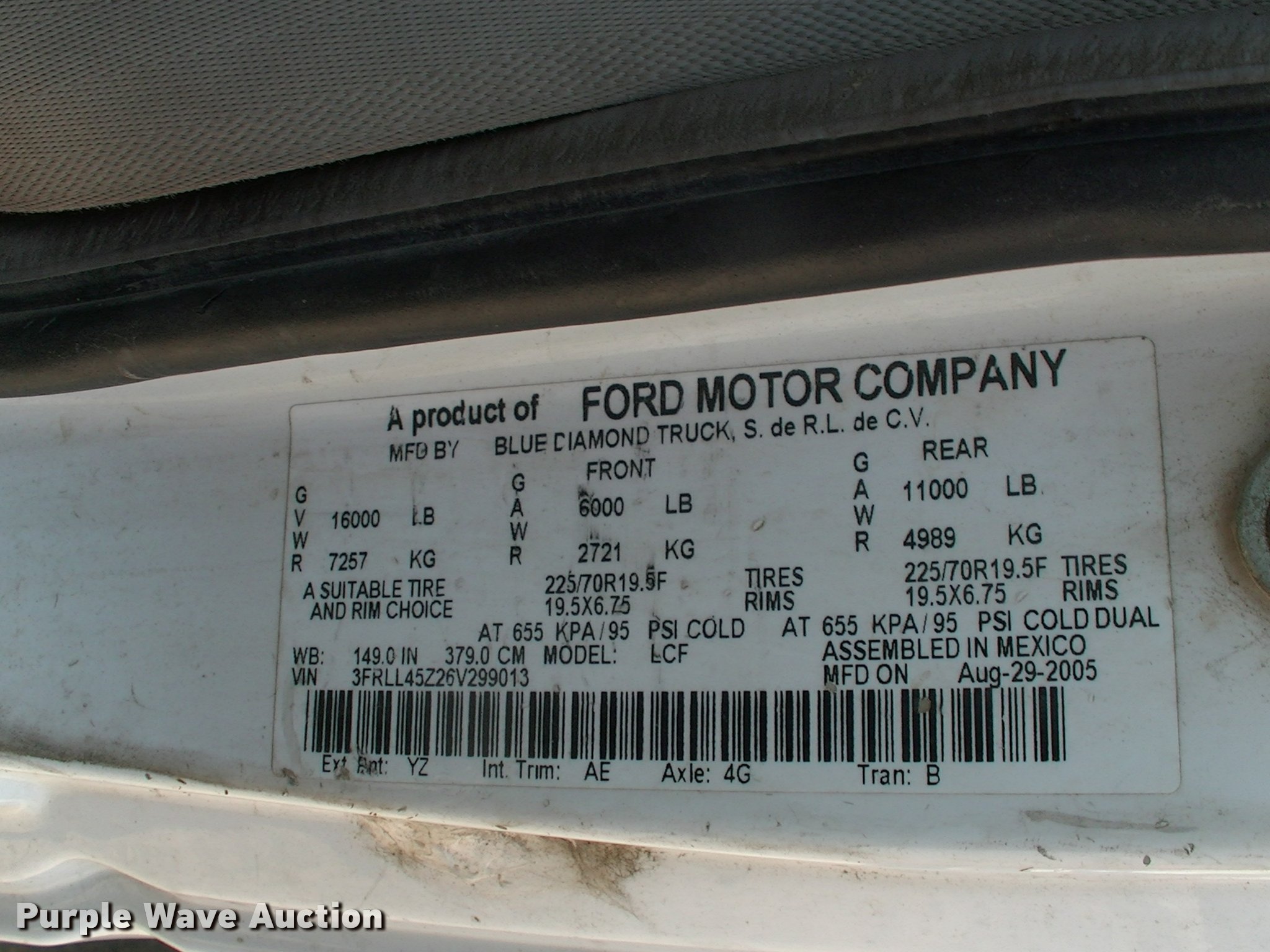 Purple Wave is selling a used Flat Bed Truck in Oklahoma. This item is a 2006 Ford LCF flatbed truck with the following: Unknown miles on odometer, International MaxxForce 4.5L six cylinder turbo diesel engine, Automatic transmission, Single axle, AC and heat, Cruise, Suspension seat, Front tow hooks, 207"L x 95"W flatbed, (4) side boards, One bent, Thieman BL30 end gate lift, 3,000 lbs capacity, Serial 736L,, Single fuel tank, Spring suspension, Hydraulic brakes, 225/70R19.5 tires, Broken windshield, Non-operational unit