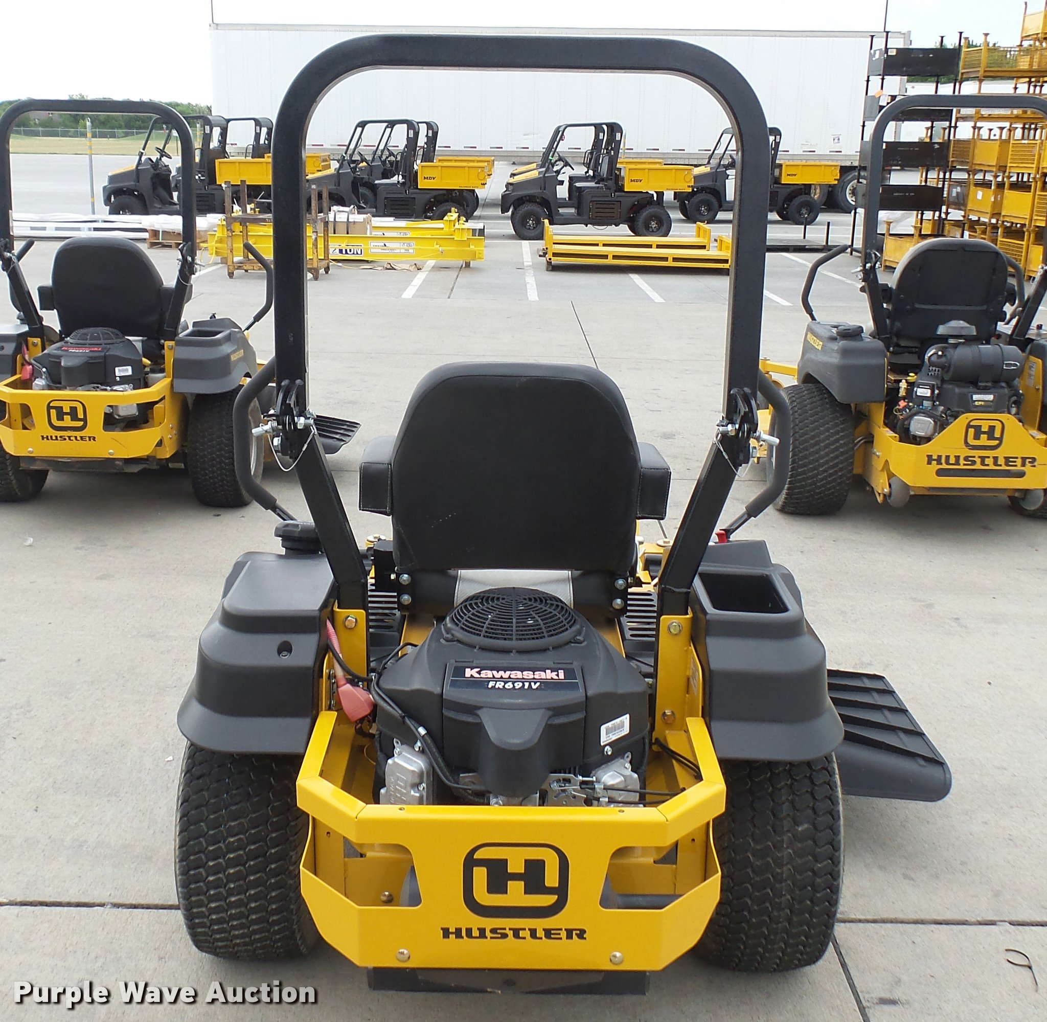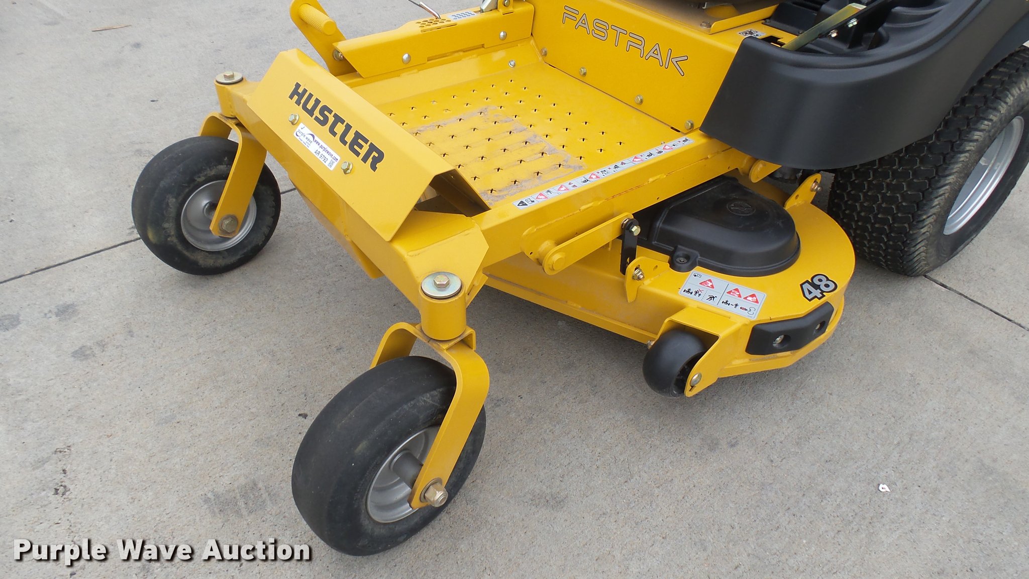 Purple Wave is selling a used Lawn Mower in Kansas. This item is a 2015 Hustler FasTrak 933424 ZTR lawn mower with the following: 52 hours on meter, 48" cut, Kawasaki 23 HP gas engine, Commercial Duty Hydro-Gear drive transmission, 13x5x6 front tires, 22x9.5x10 rear tires, Dealer/customer unit returned to manufacturer for vibration issue. Checked, no issue found., Serial 15064650